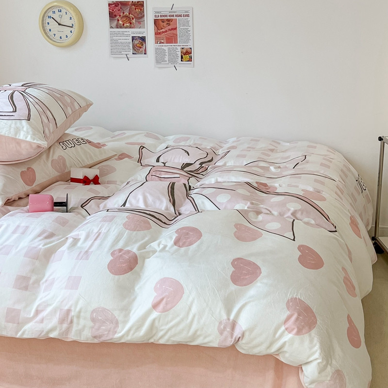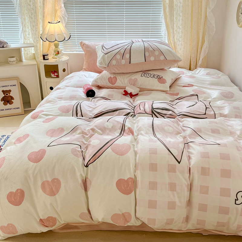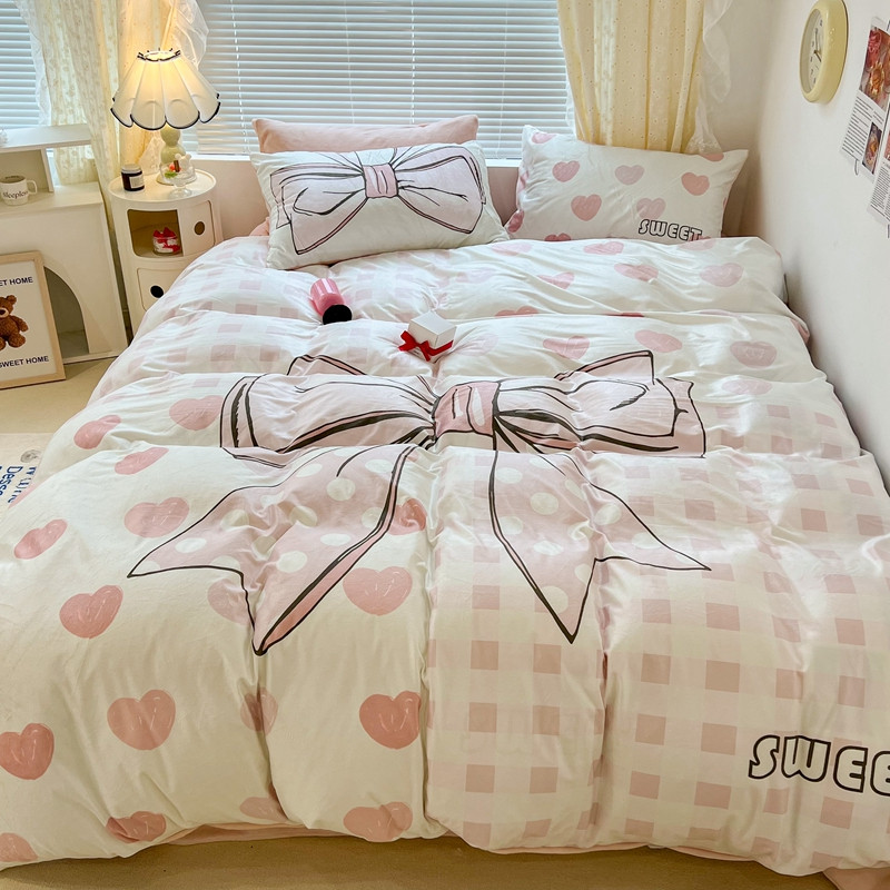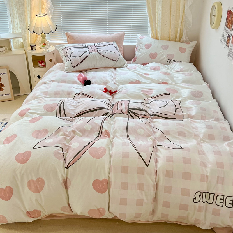 (总)昔可家纺 2024新款印花牛奶绒四件套系列-ins少女系列,芭蕾蛋糕,芭蕾美学,粉格蝴蝶结,黑粉芭蕾蝴蝶结,蓝格蝴蝶结,樱桃奶油蛋糕