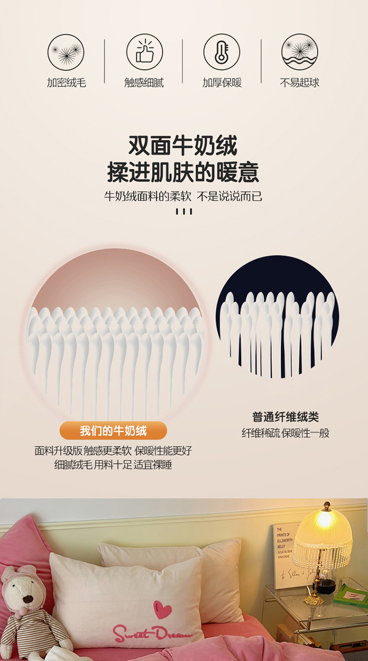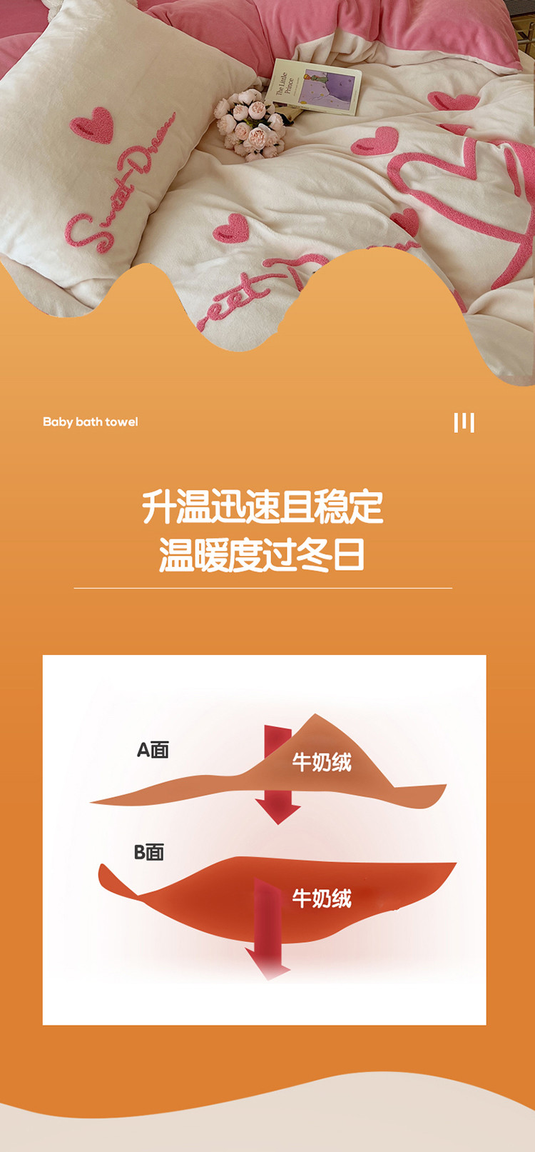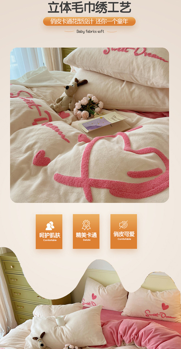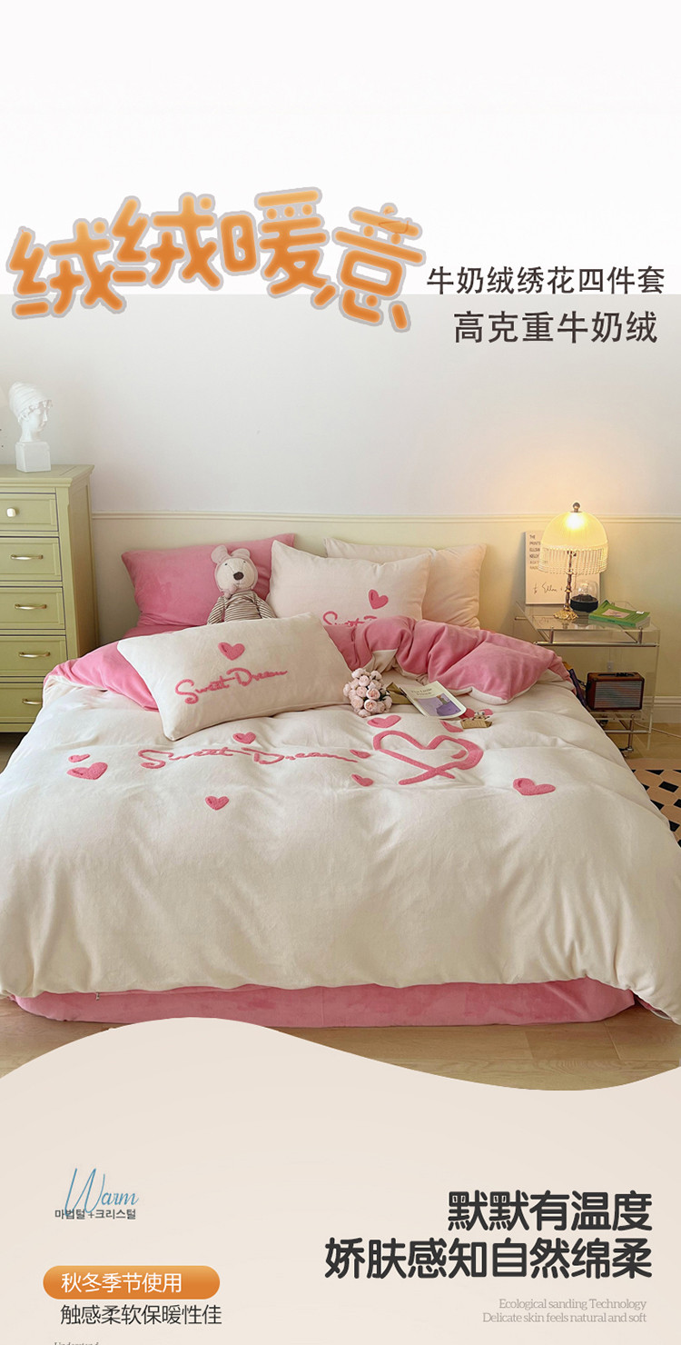 商品名称:三朵 2022新款牛奶绒绣花四件套-场景二 心情-粉