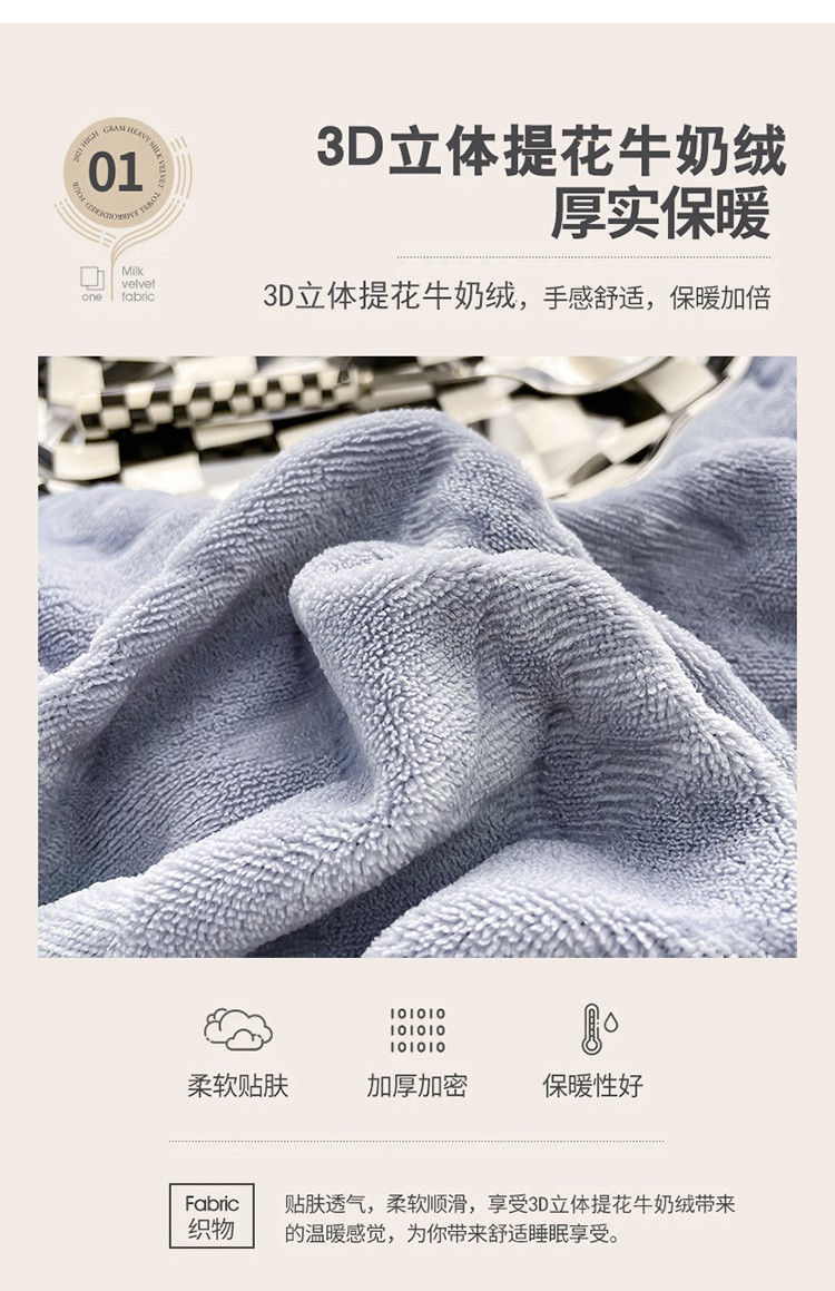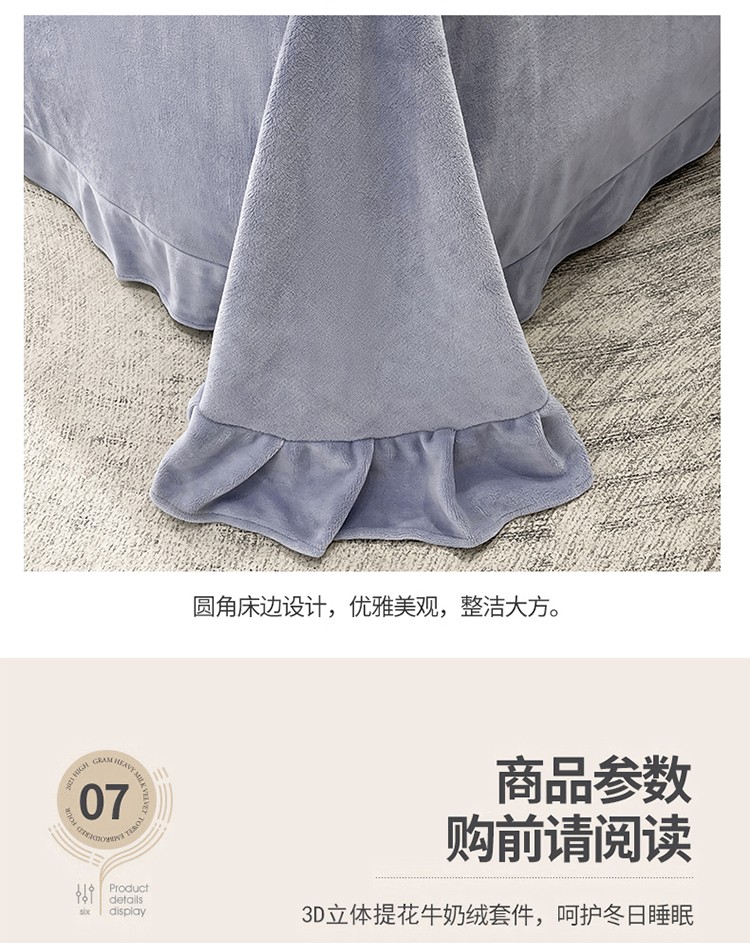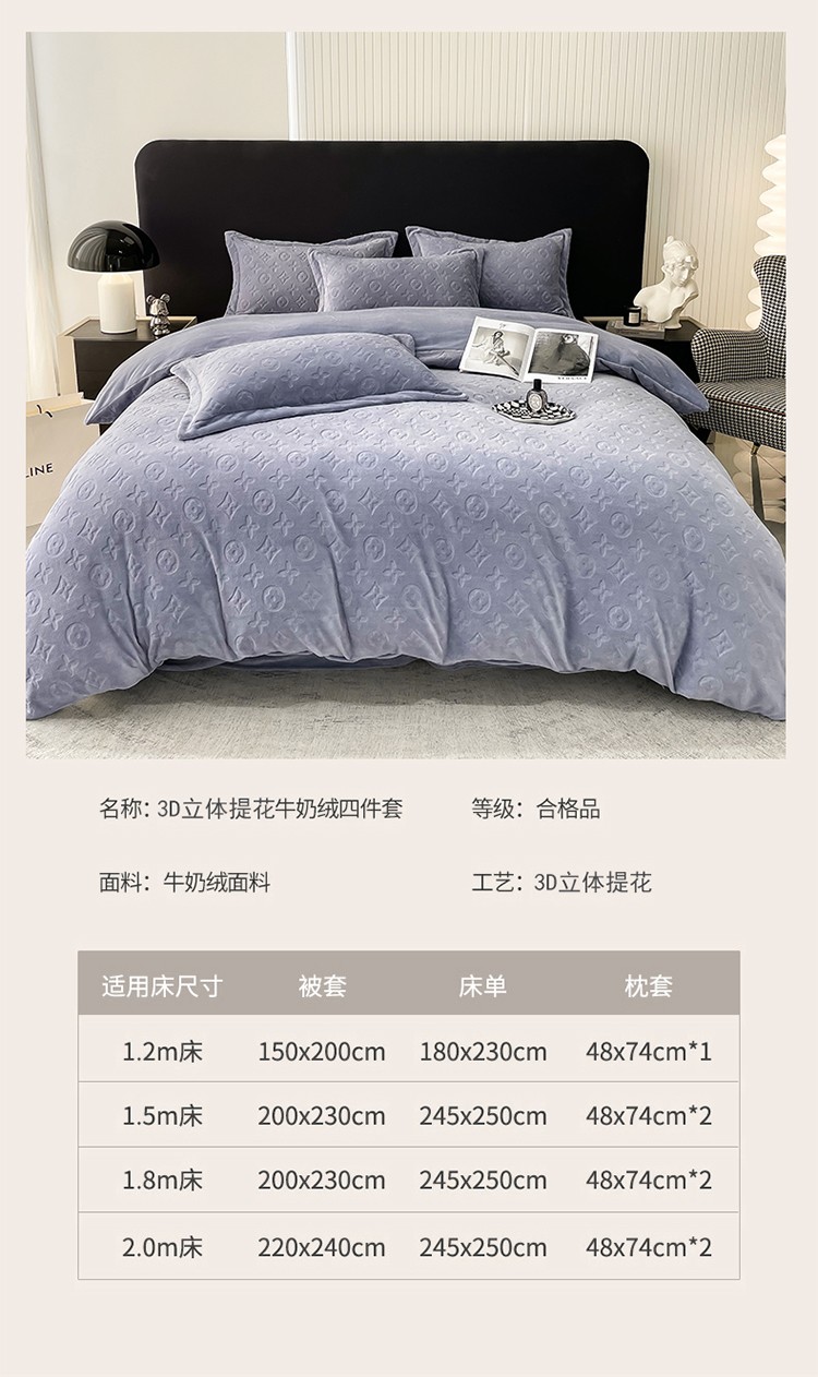商品名称:芯贝儿 2023新款小清新加厚牛奶绒雕花绒刺绣花四件套 金典--迷雾紫
