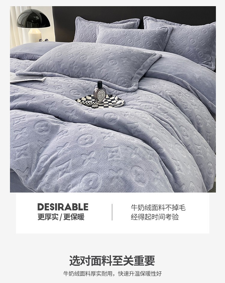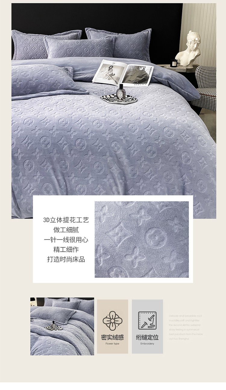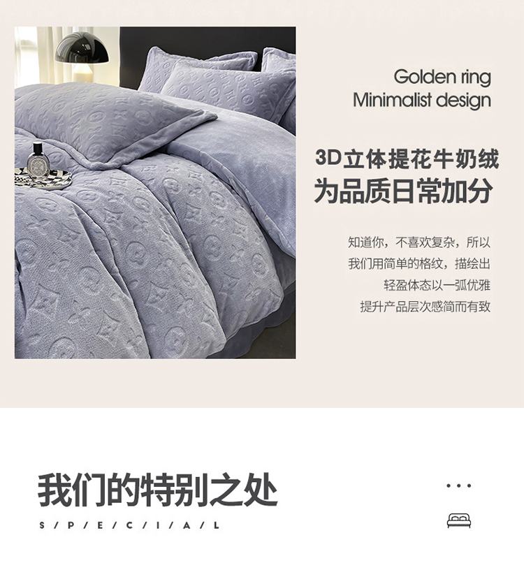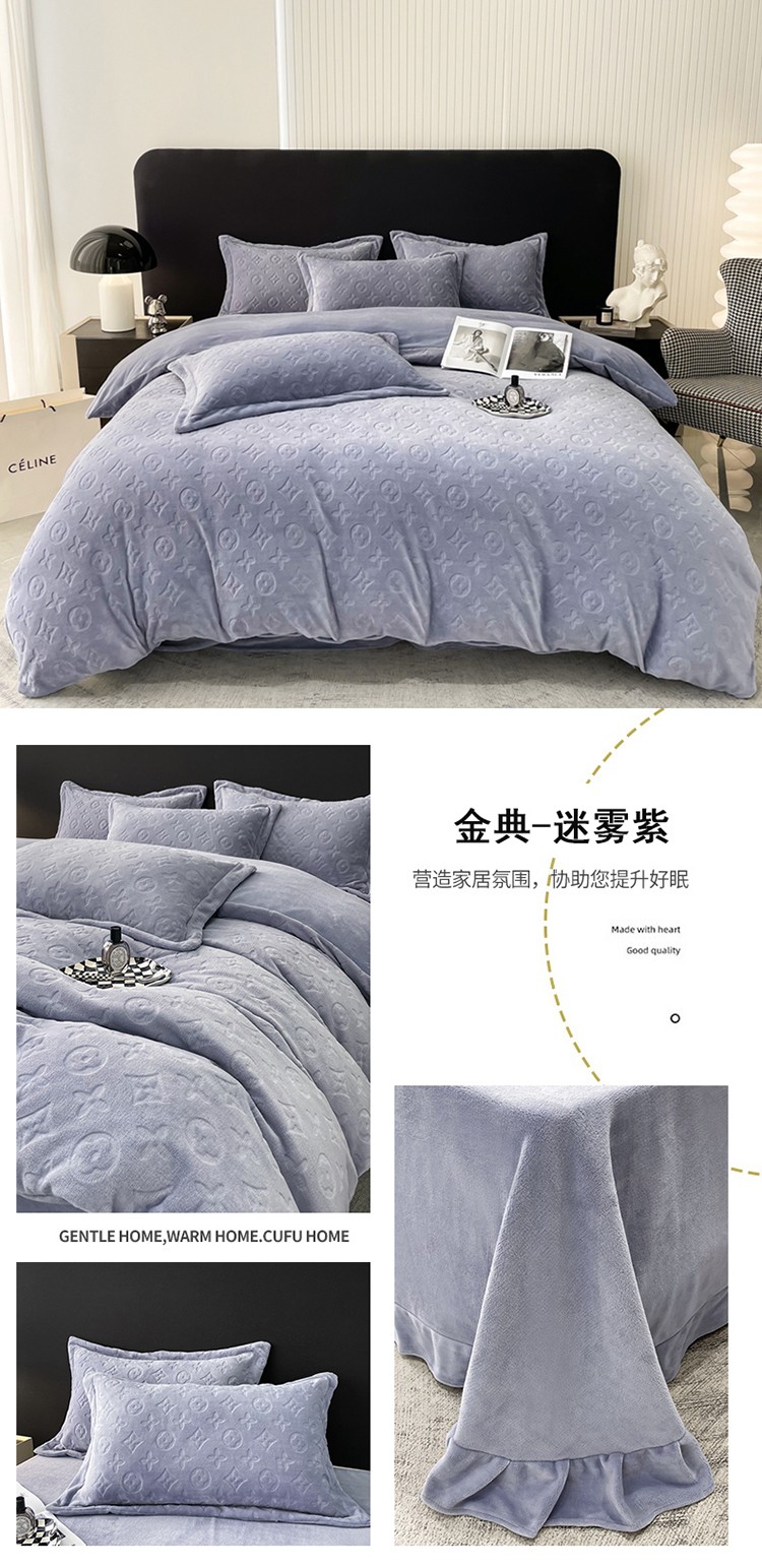 芯贝儿 2023新款小清新加厚牛奶绒雕花绒刺绣花四件套 金典--迷雾紫