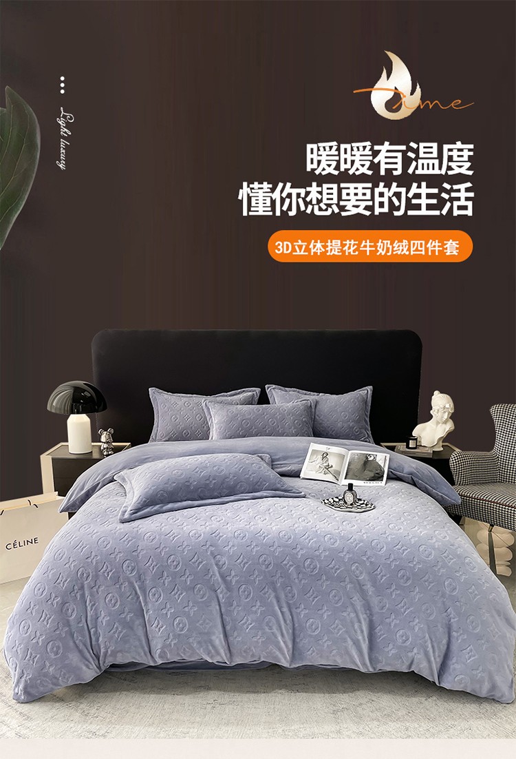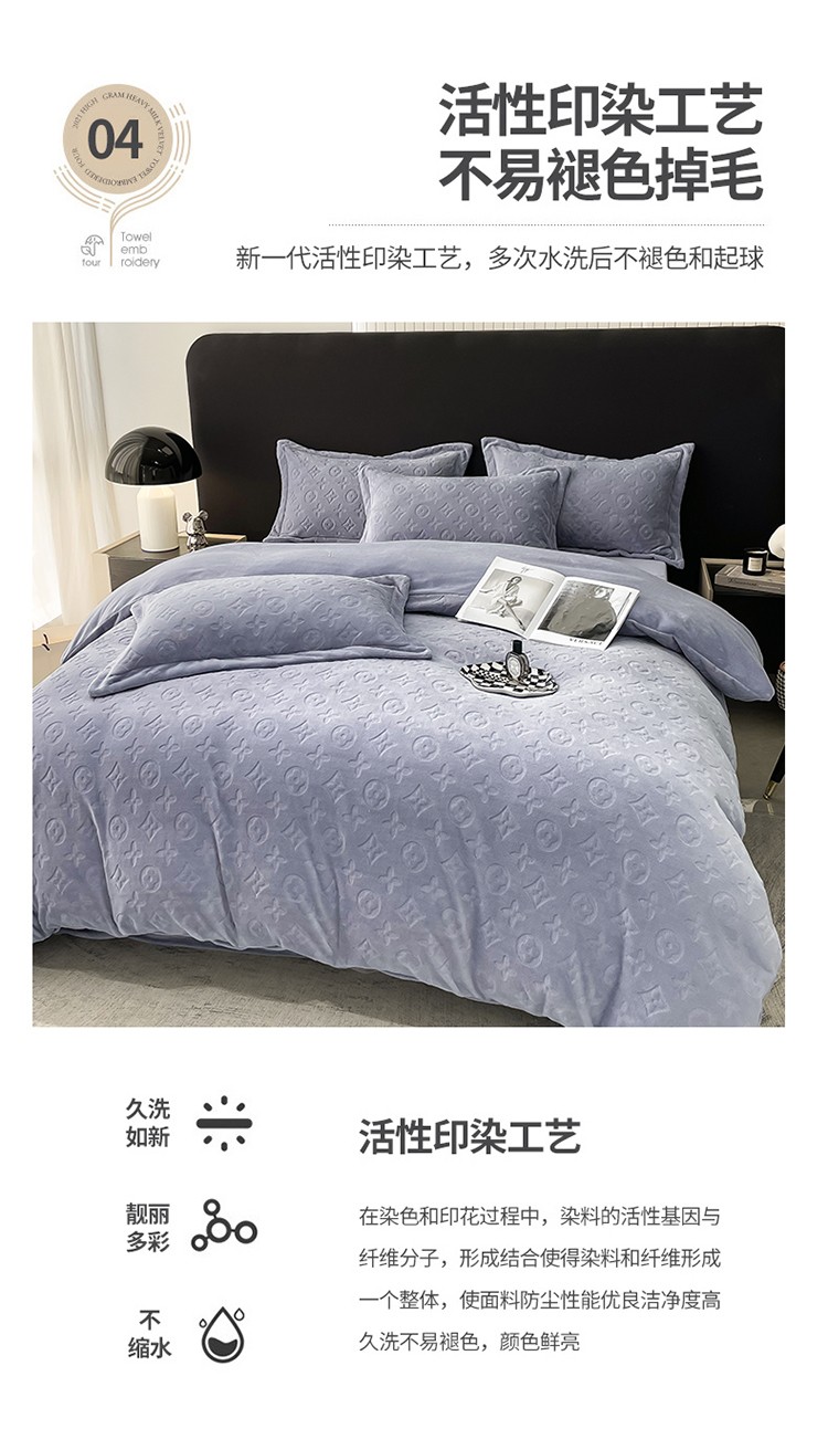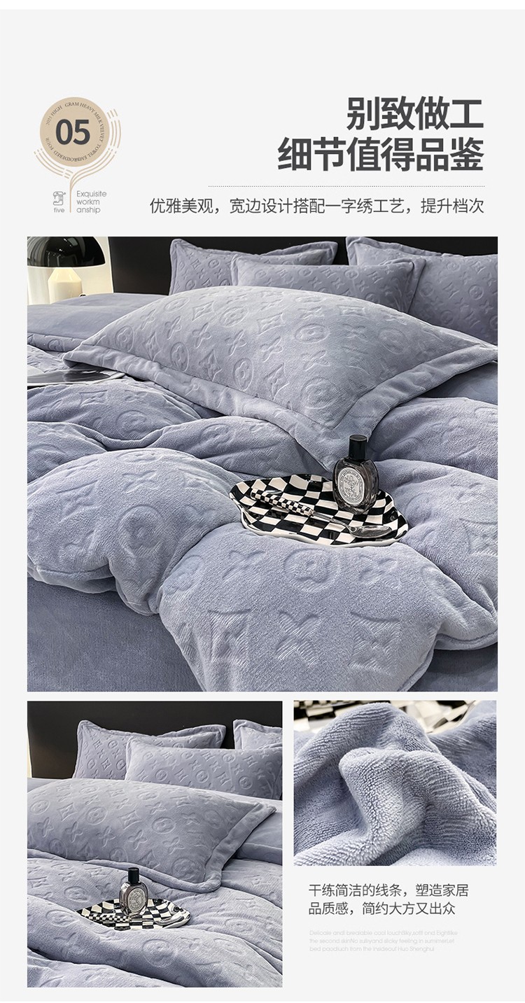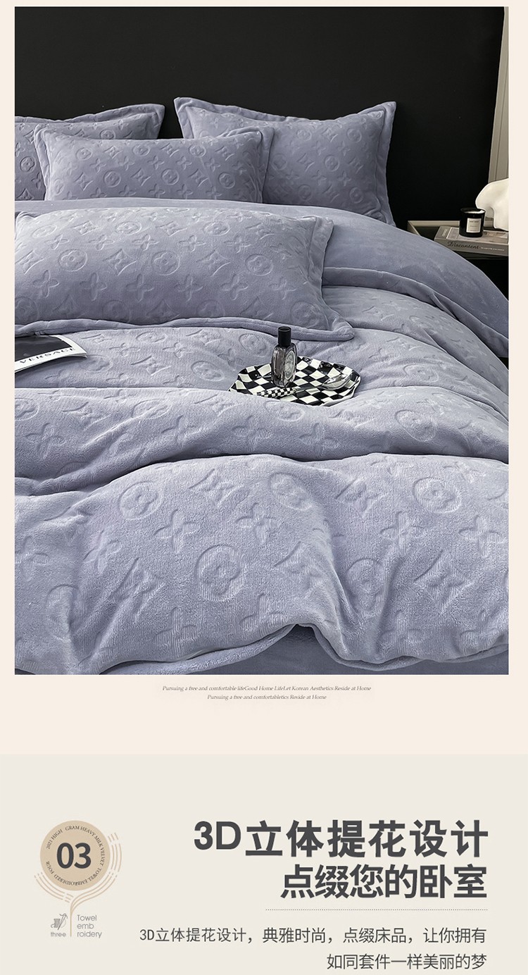 芯贝儿 2023新款小清新加厚牛奶绒雕花绒刺绣花四件套 金典--迷雾紫