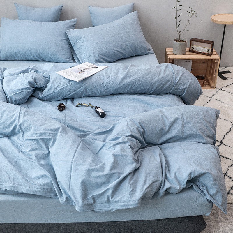当前位置: 91家纺网 > 商品网购 > 床品套件 > 四件套 > 水洗棉四件套 > 柠萌家居 2022新款全棉色织水洗棉无印风四件套 浅水蓝