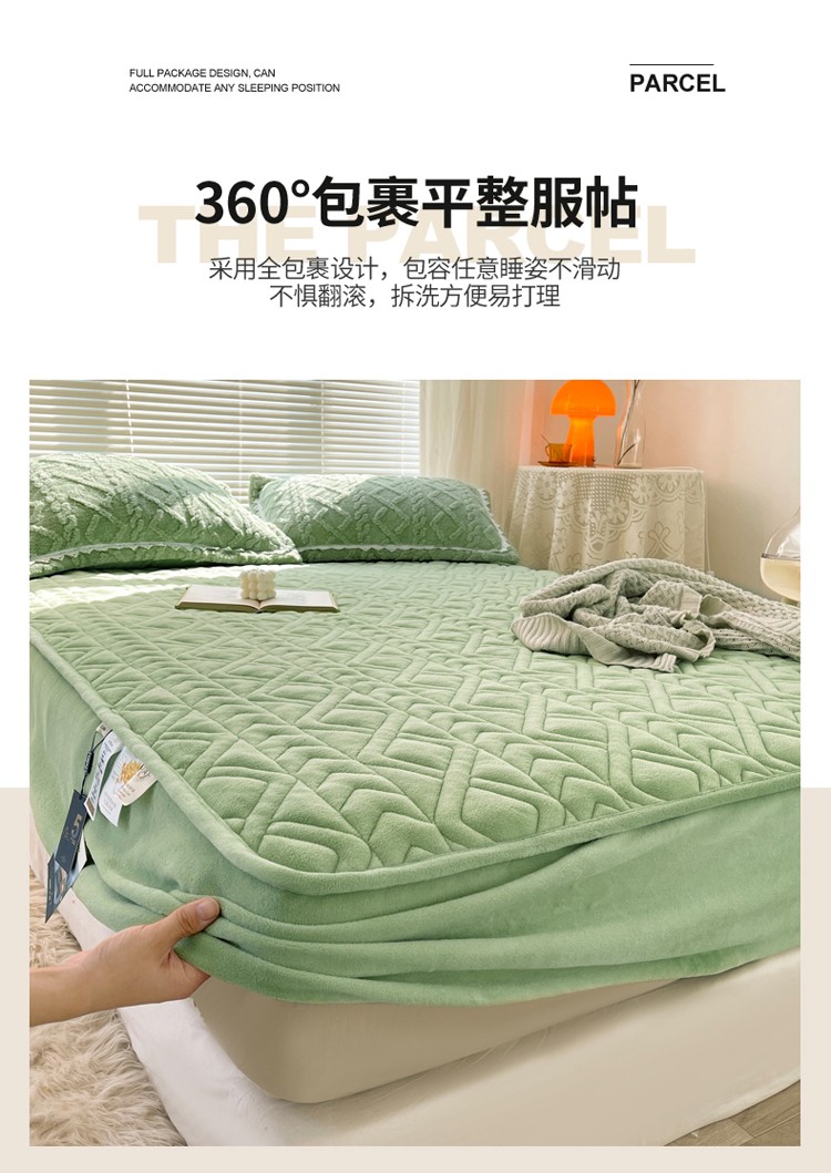 (总)菊上家纺 2025新款高克重5D雕花牛奶绒时尚仿皮草国潮风床盖四件套-羽妃系列,羽妃-米咖,羽妃-豆绿,羽妃-玫粉