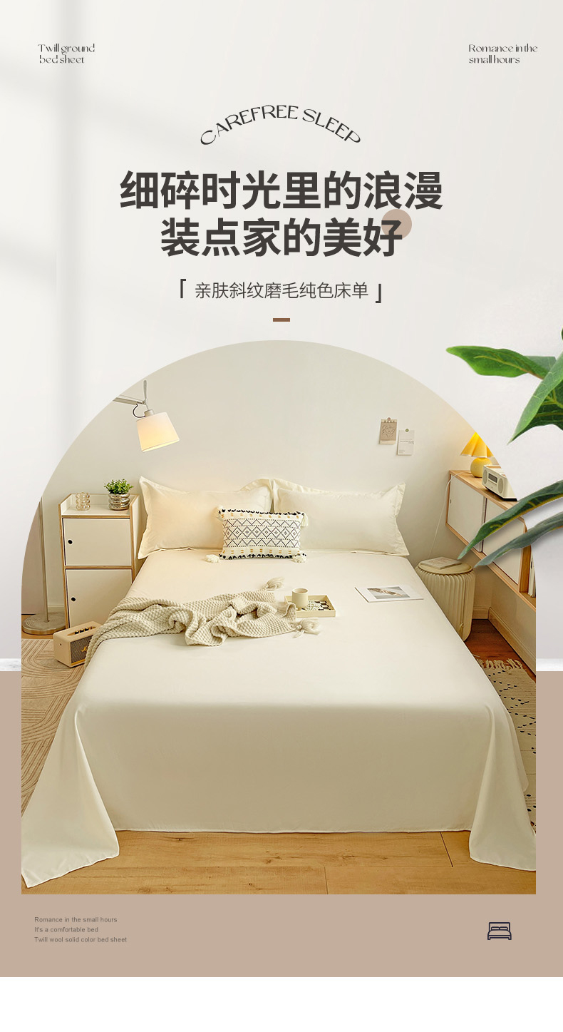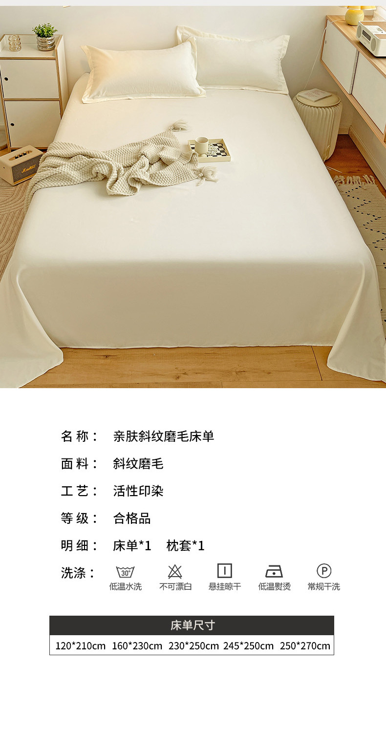• 91家纺网 家纺一手货源 找家纺 芷凡家纺 2022新款雅棉斜纹磨毛单床单 奶白