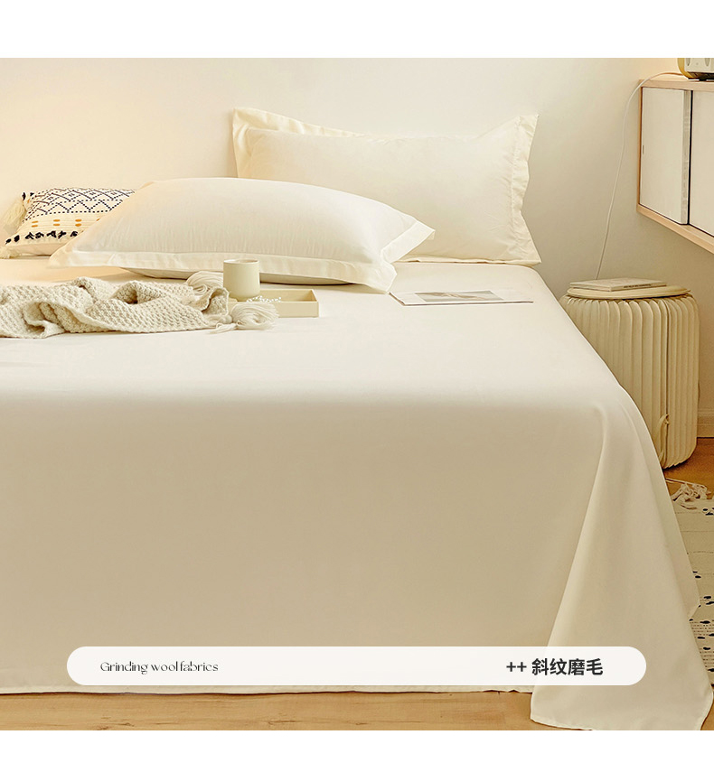 芷凡家纺 2022新款雅棉斜纹磨毛单床单 奶白