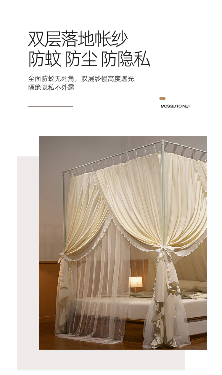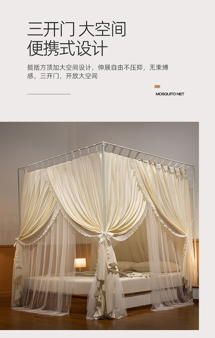 (总)飞轮海蚊帐 2023新款三开门落地遮光蚊帐-L-93,高级灰,芥末绿,奶油黄,香槟