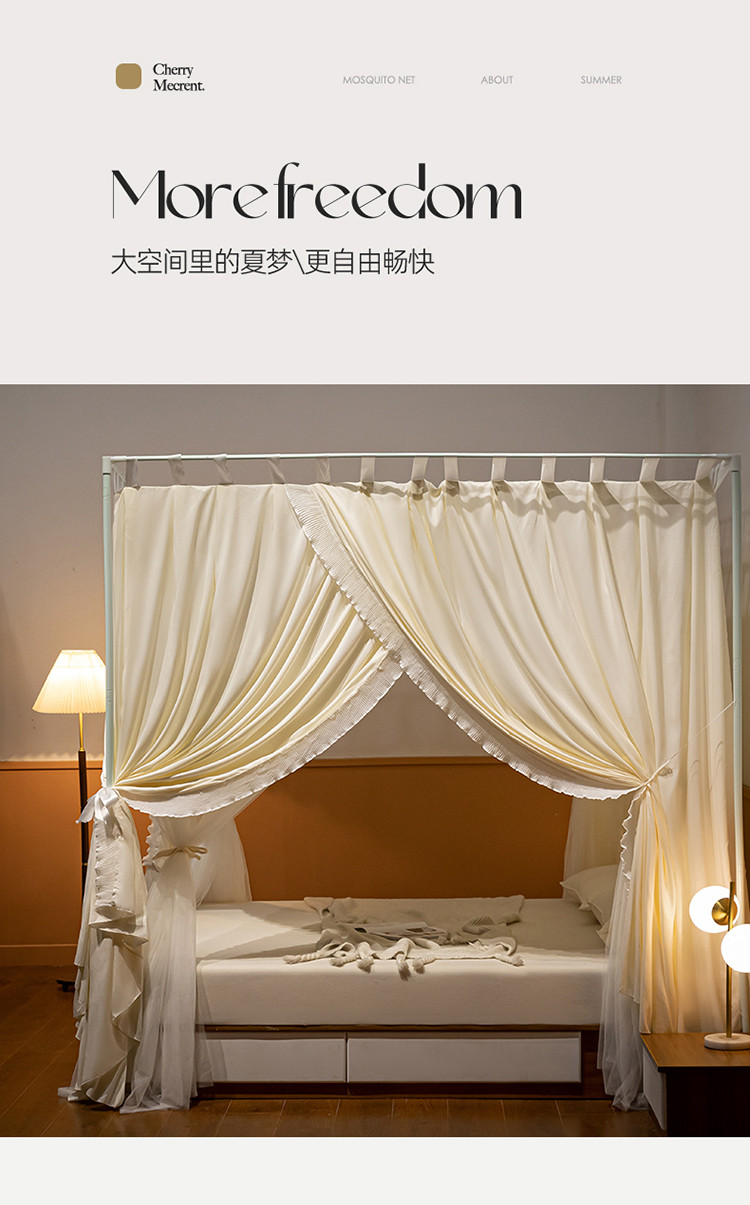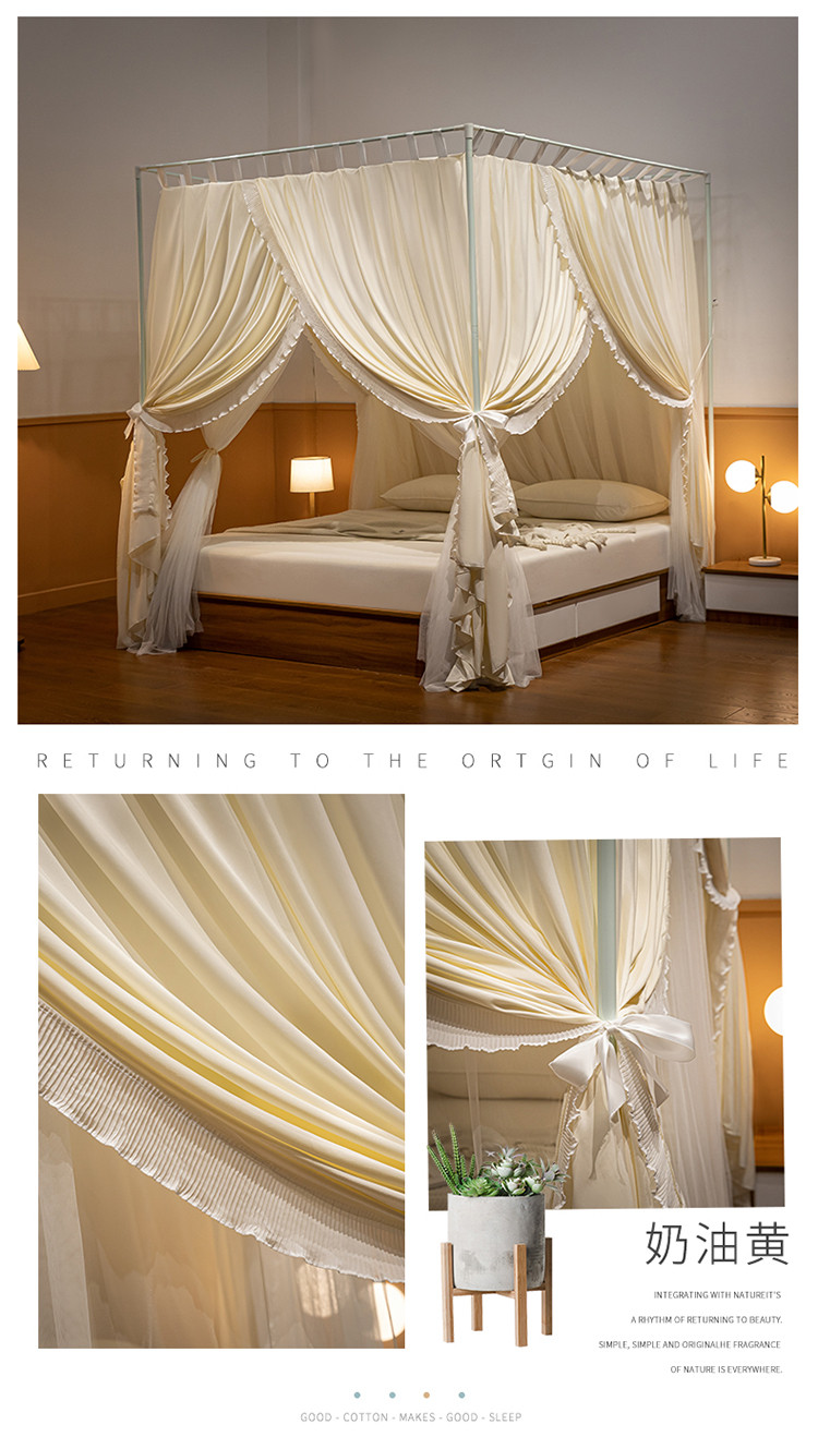 商品名称:飞轮海蚊帐 2023新款三开门落地遮光蚊帐-L-93 奶油黄