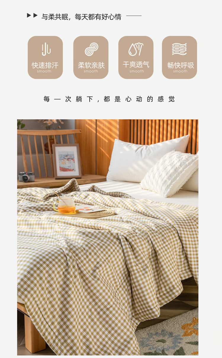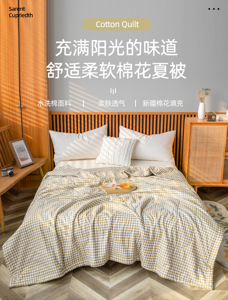 商品名称:久云居 2024新款水洗棉新疆棉花被格纹夏被 绿小格
