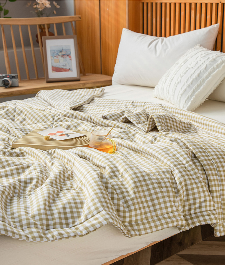 久云居 2024新款水洗棉新疆棉花被格纹夏被 绿小格