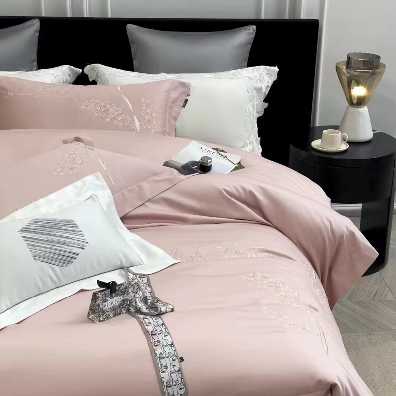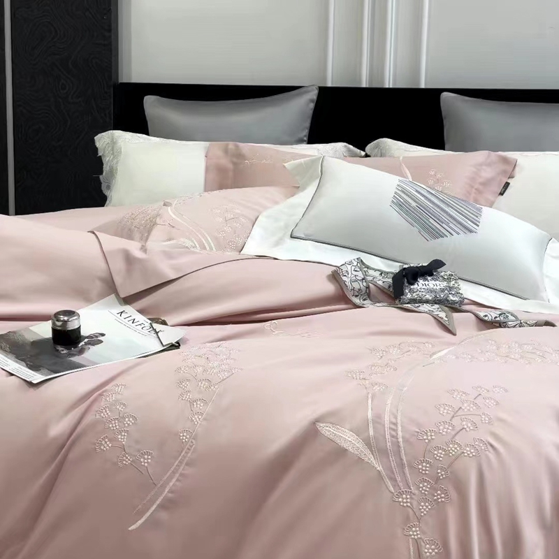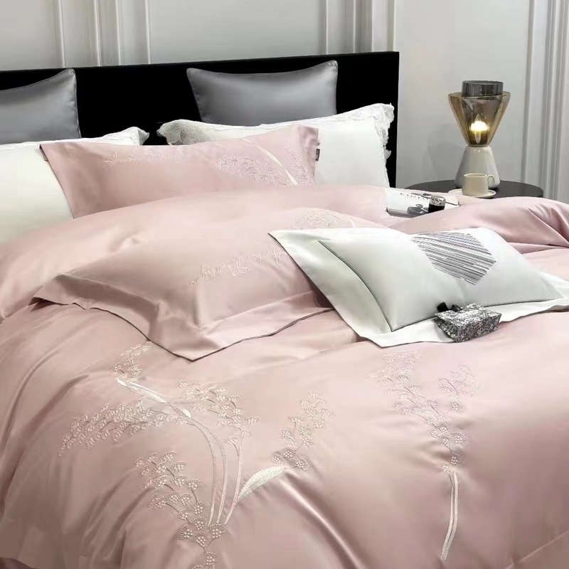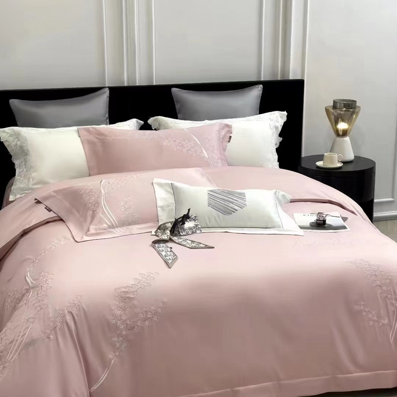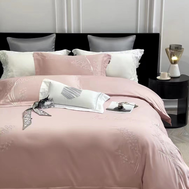 玖玖爱家纺 2023新款160支云柔黄金长绒棉雅韵风情系列四件套 玉粉