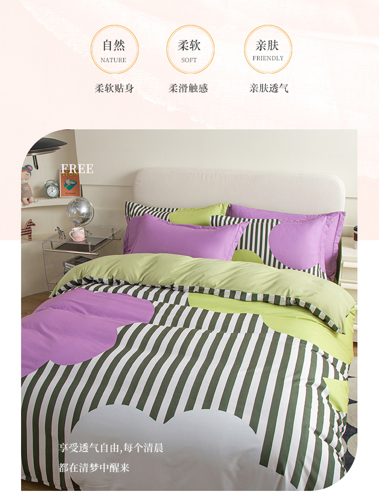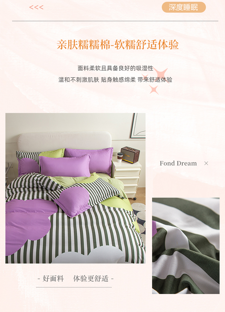 (总)宏源家纺 2023年4月新款芦荟棉亲肤印花四件套,宝藏,星黛兔,格韵,玫红黑条,粉心兔,绿黑条,花园兔