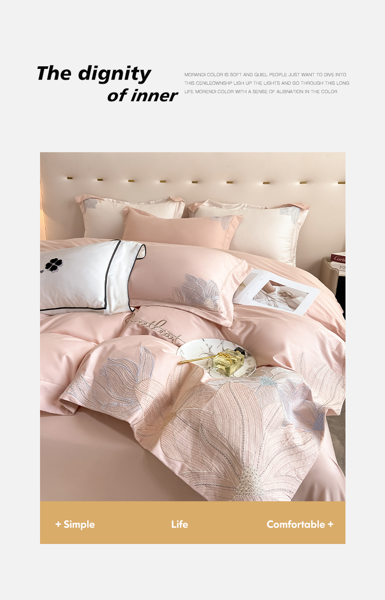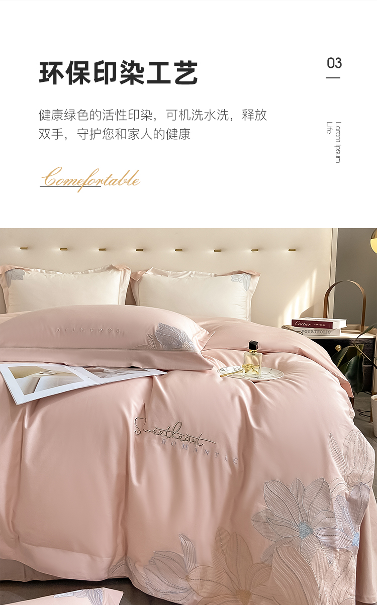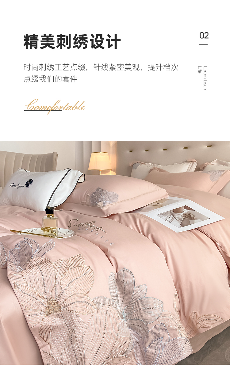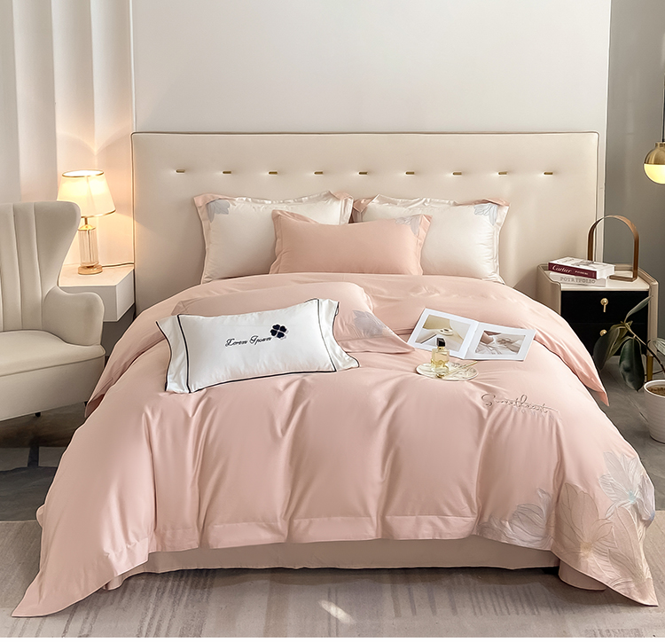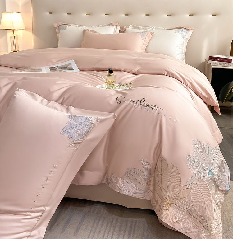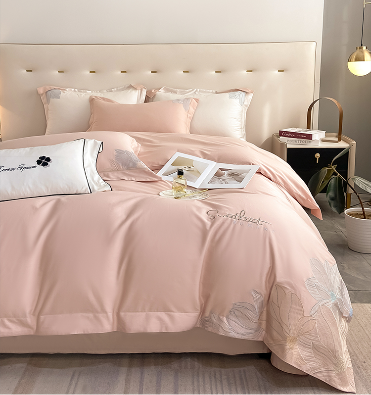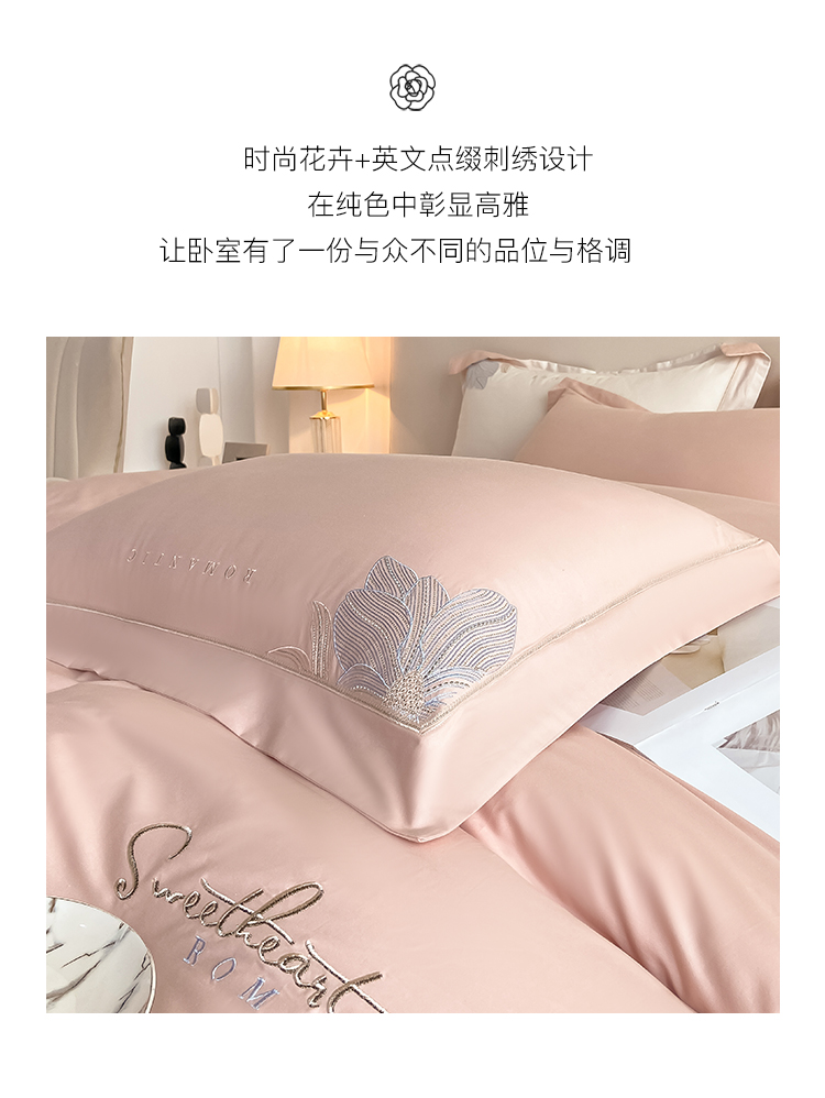 理想家 2023新款13372全棉刺绣四件套-陌上花开 粉
