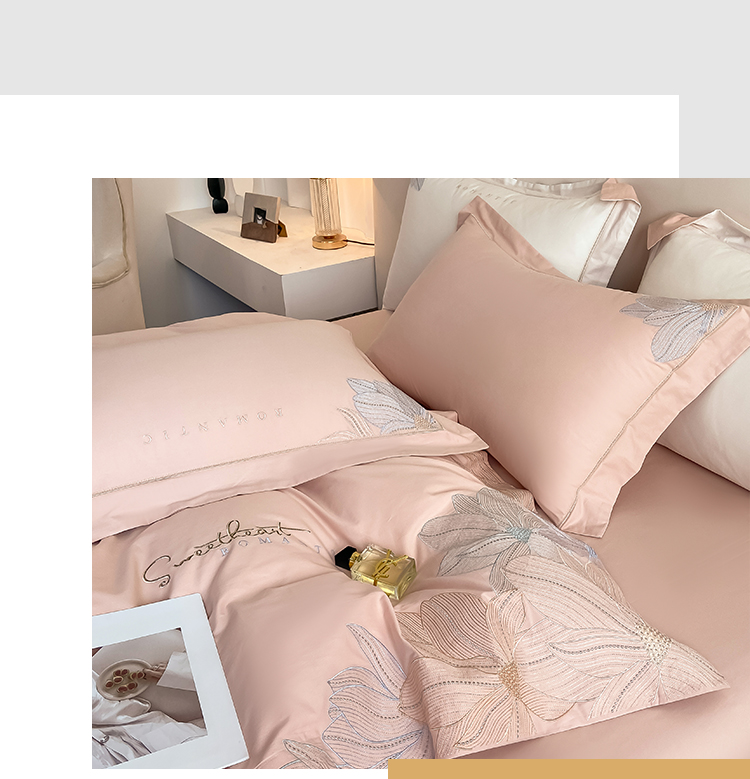 (总)理想家家纺 2025新款纯棉轻奢刺绣四件套-小秘密系列场景二,小秘密 粉,小秘密 黄,小秘密 蓝