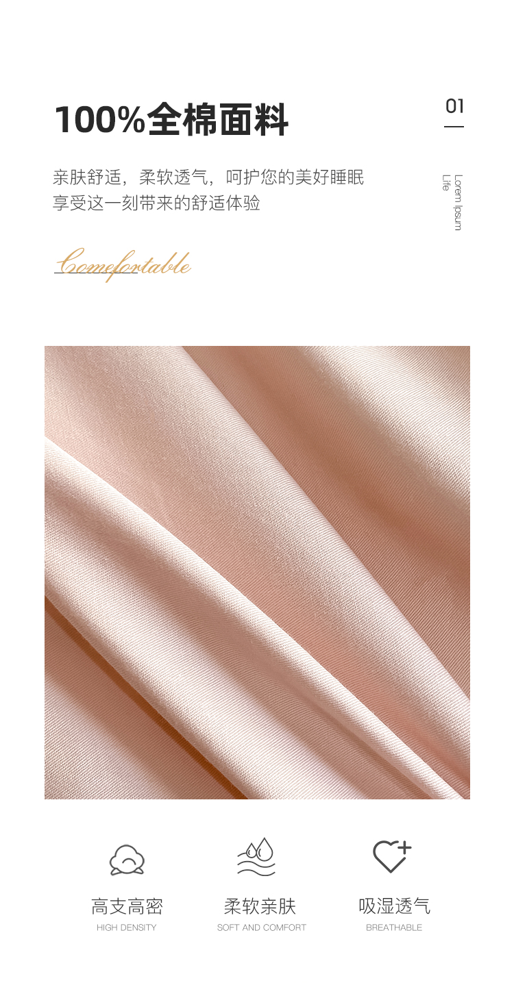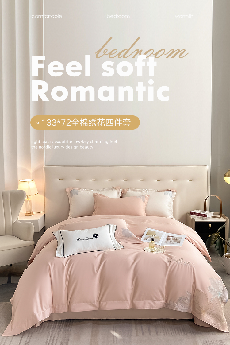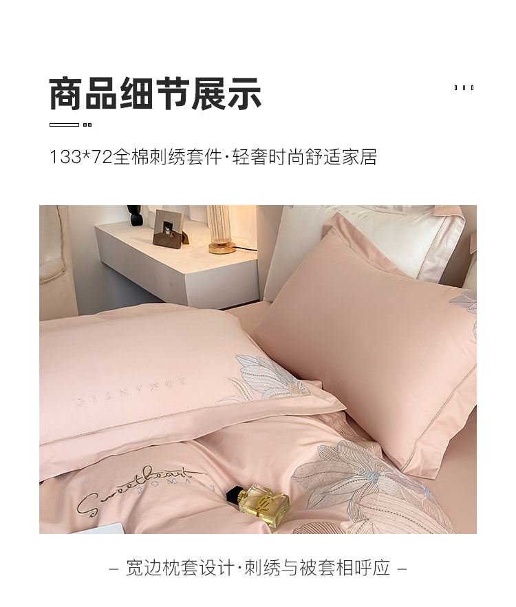 商品名称: 理想家 2023新款13372全棉刺绣四件套-陌上花开 粉