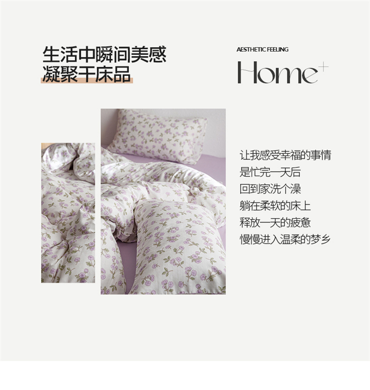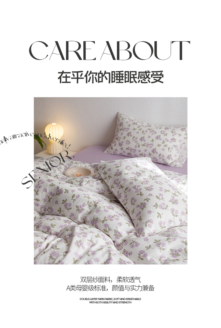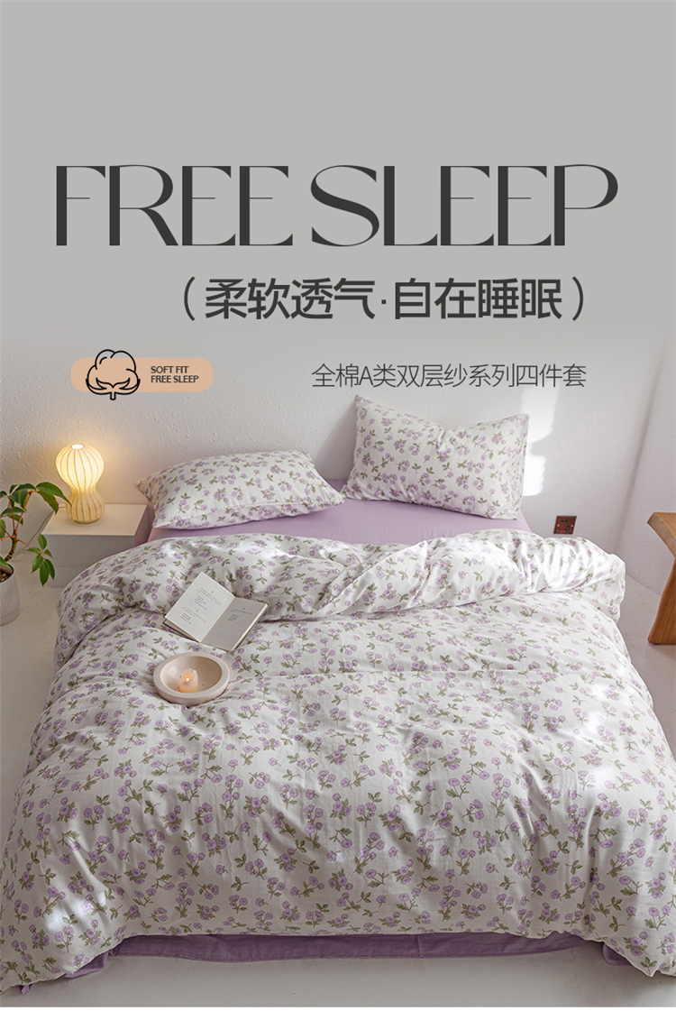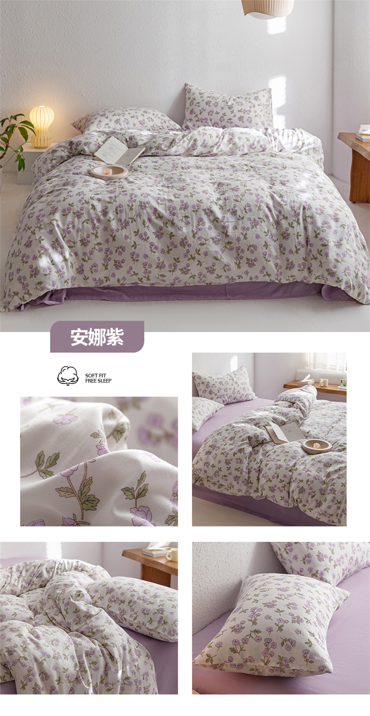 当前位置: 91家纺网 > 商品网购 > 床品套件 > 四件套 > 全棉普通四件套 > 窝米 2023新款全棉A类双层纱系列四件套 安娜紫