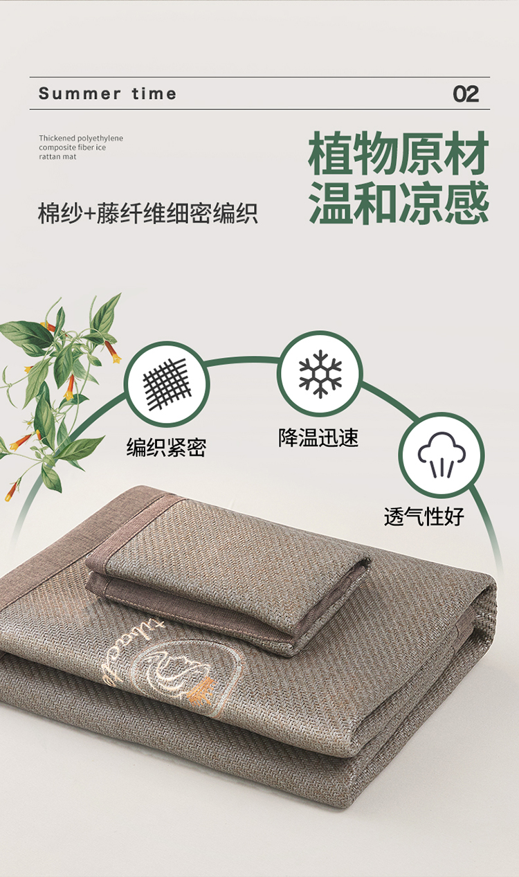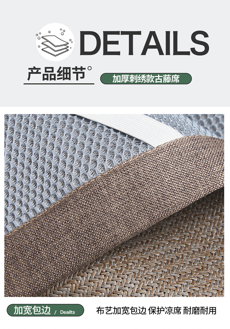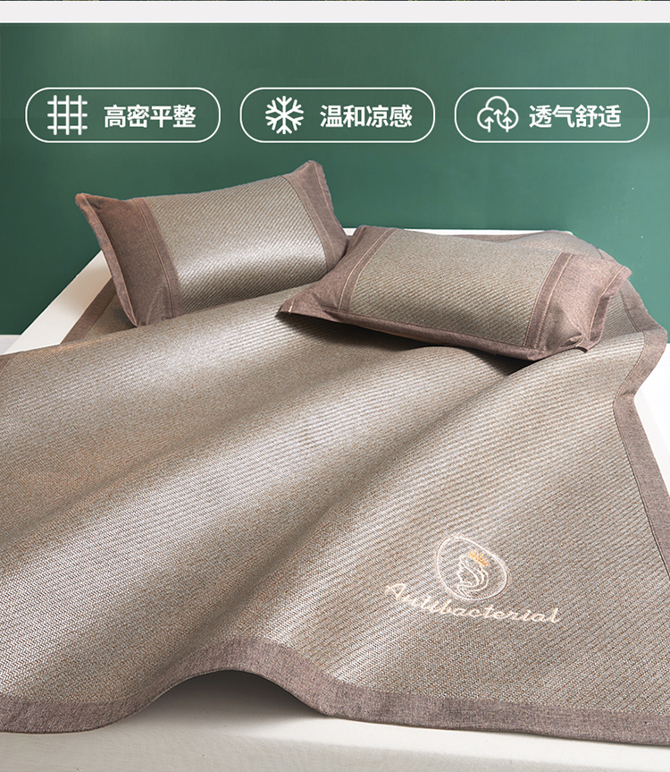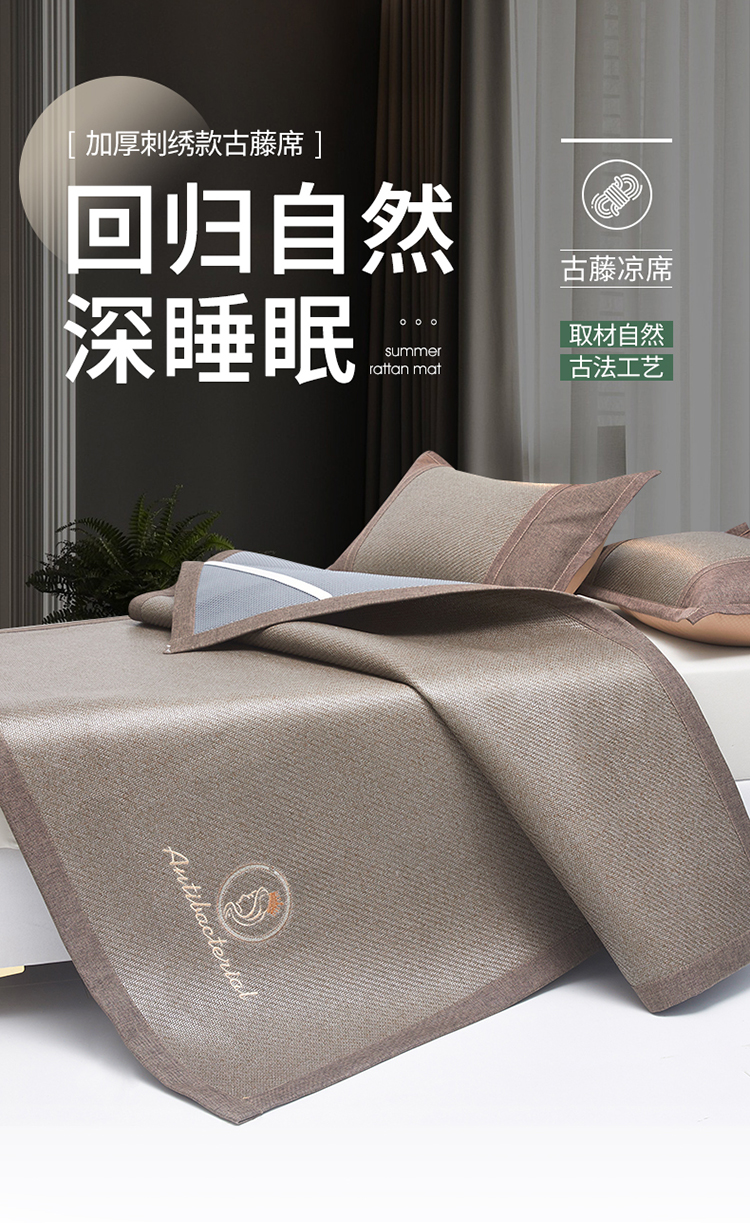 伊被源 2023新款加厚刺绣古藤席三件套-可可西里 可可西里-棕灰