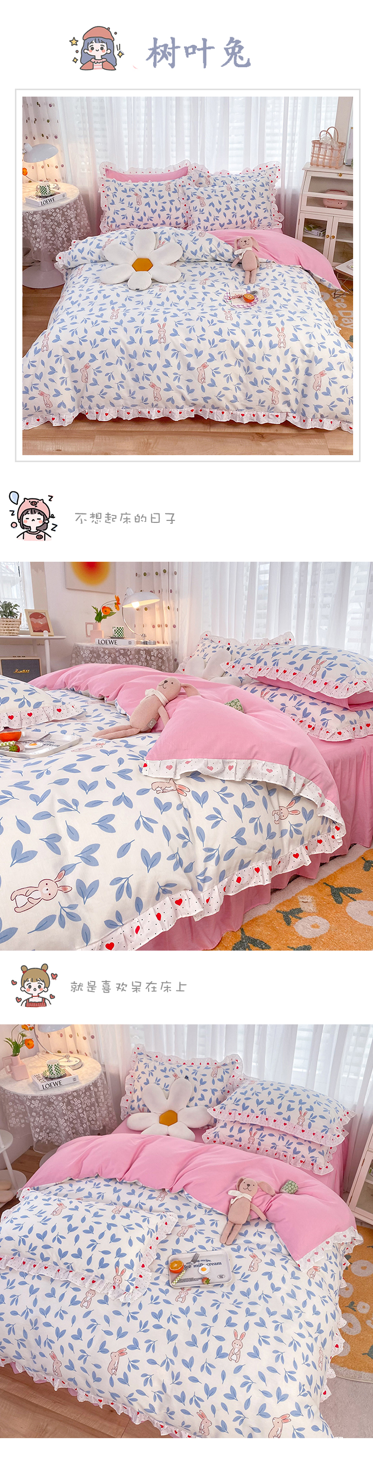 当前位置: 91家纺网 > 商品网购 > 床品套件 > 四件套 > 全棉普通四件套 > 玉元坊 少女心全棉公主风花边被套床单式床裙款四件套三件套 树叶兔