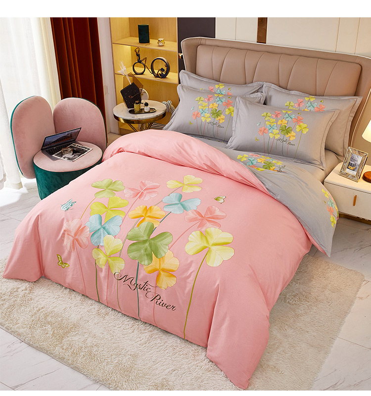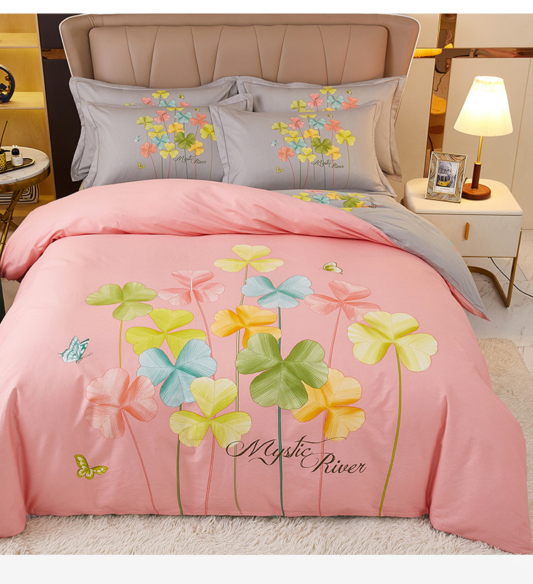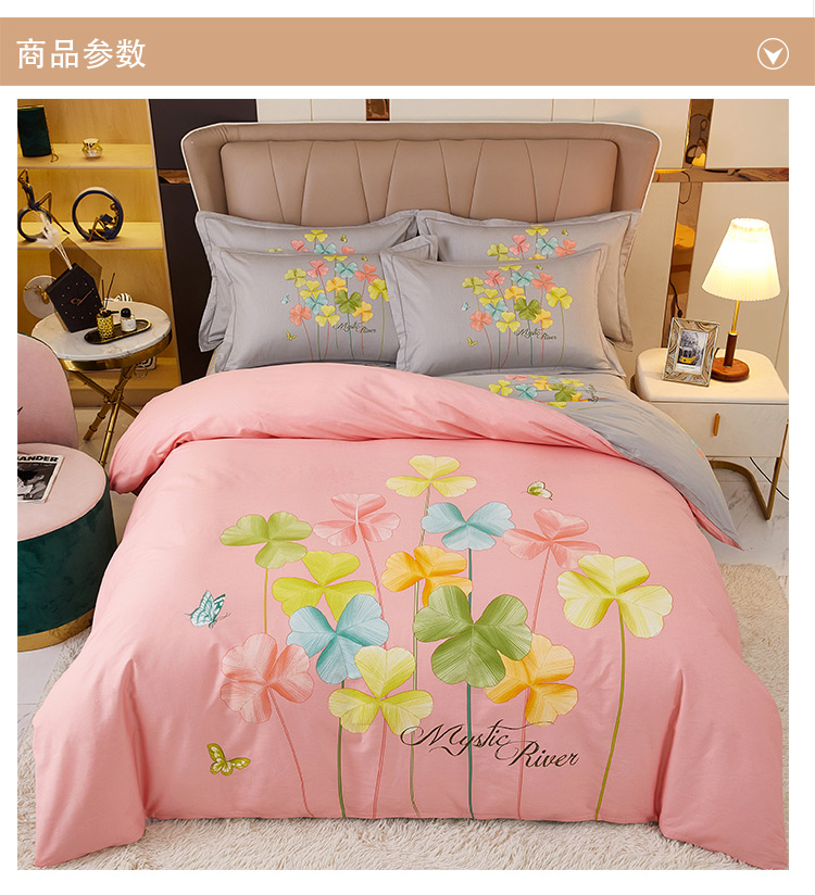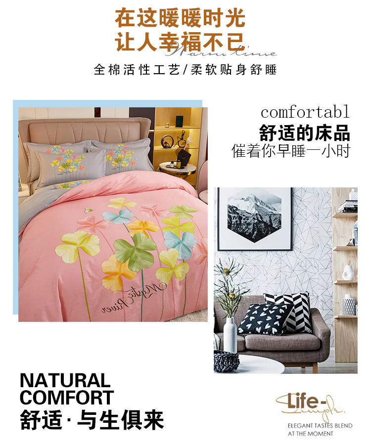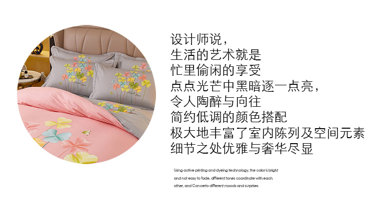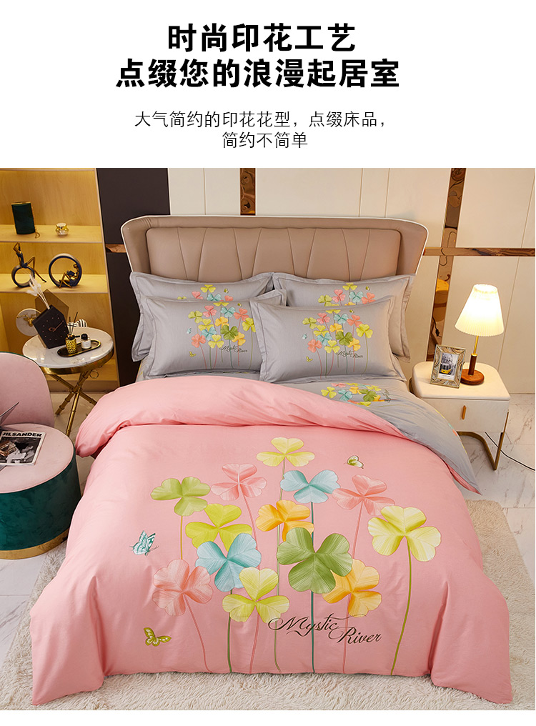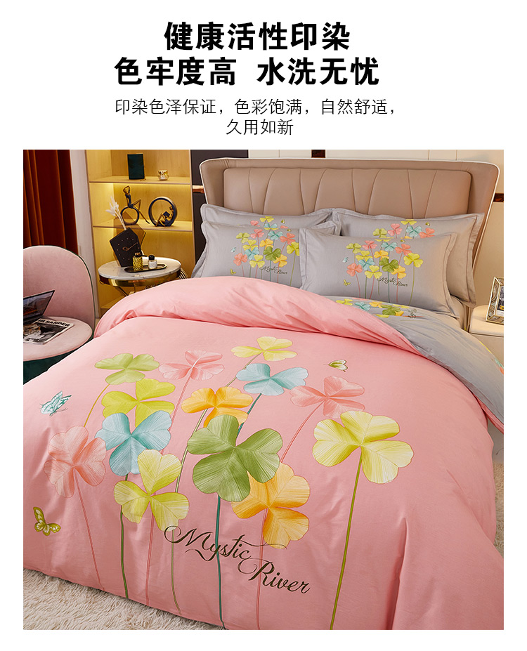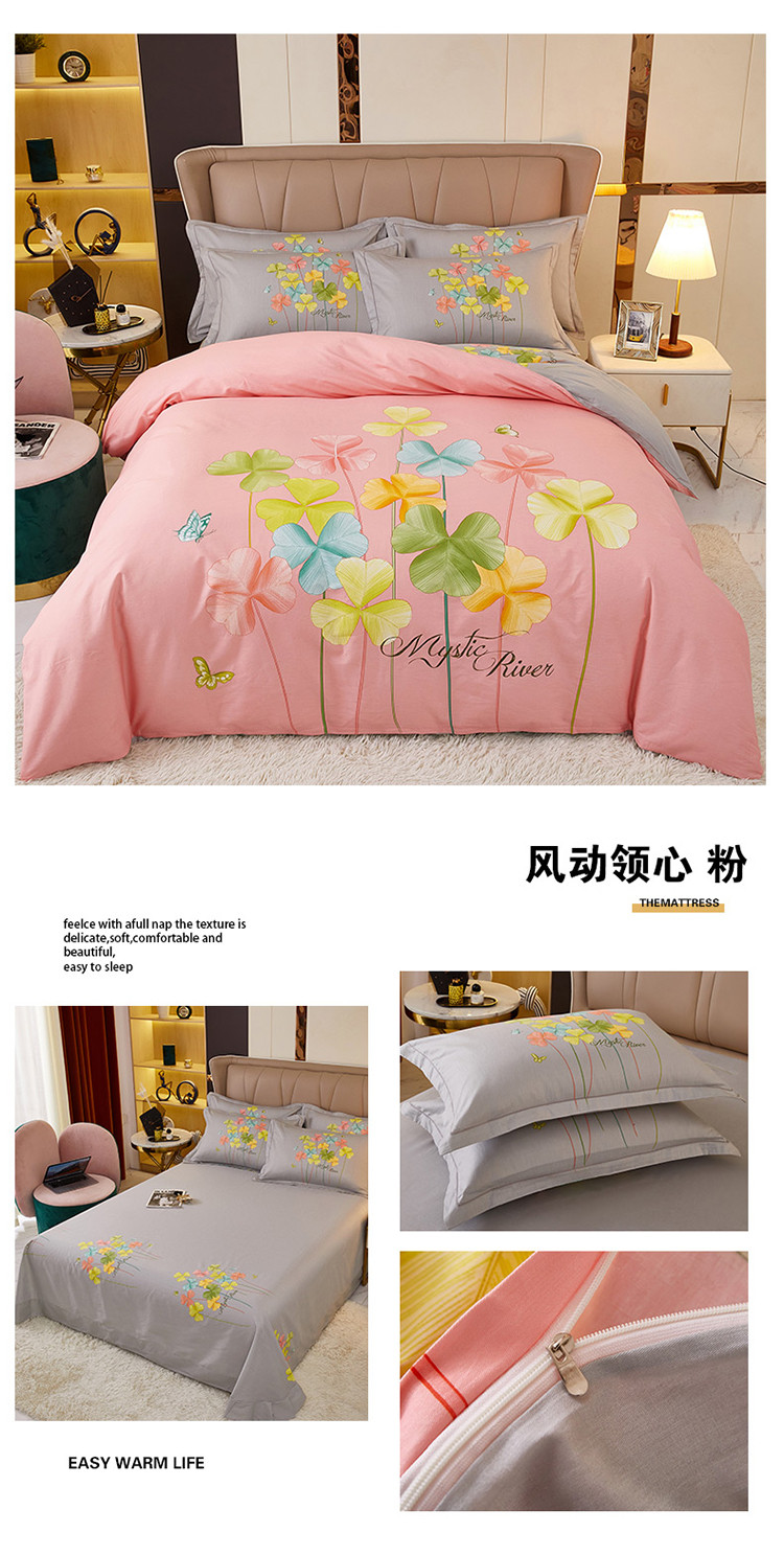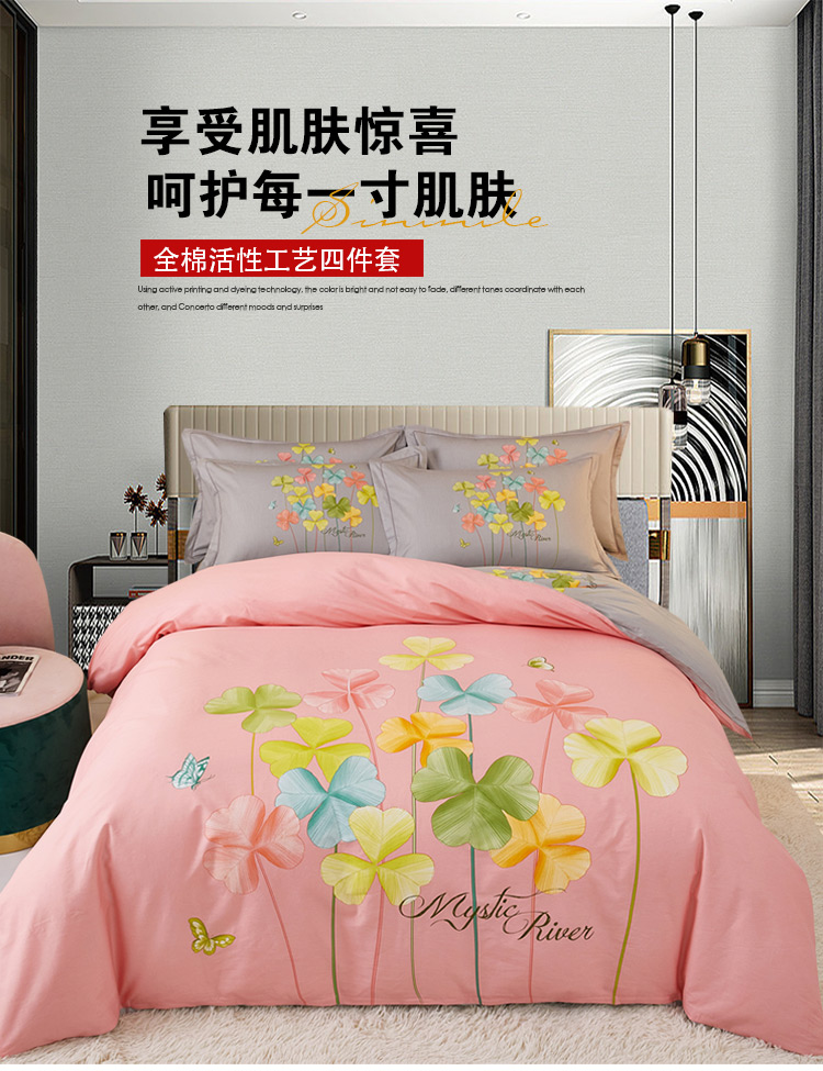 商品名称:雲归梦2023新款13372全棉活性大版印花简约居家四件套 风动玲心粉