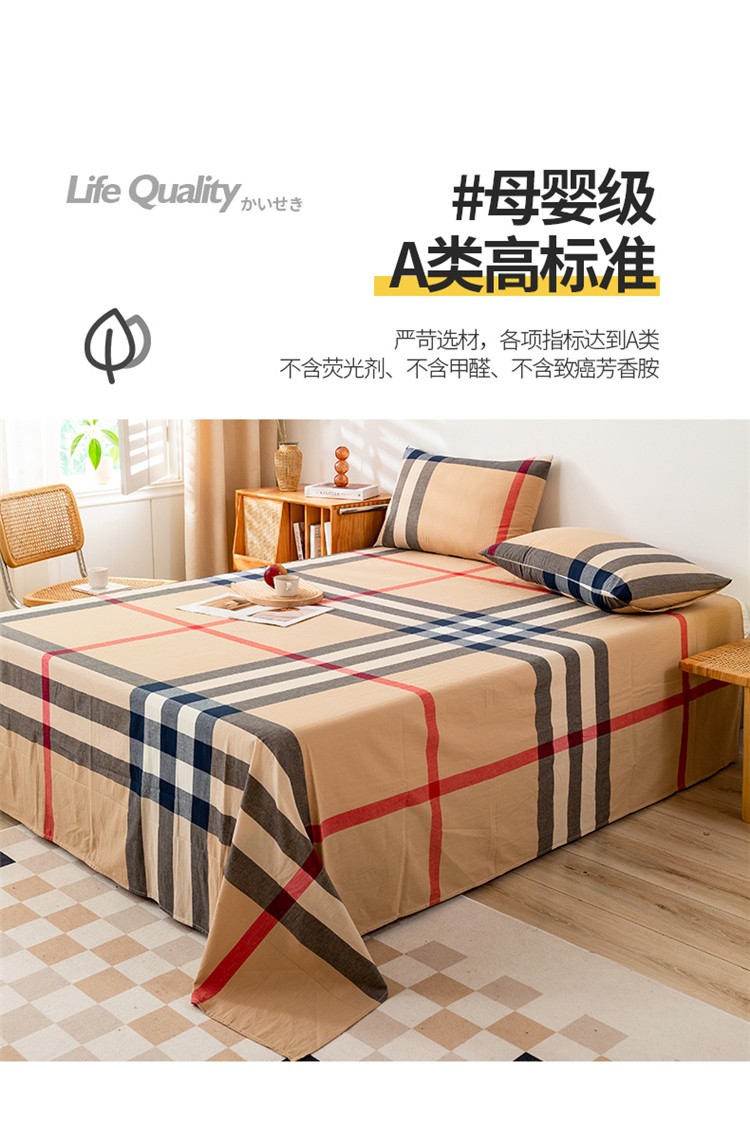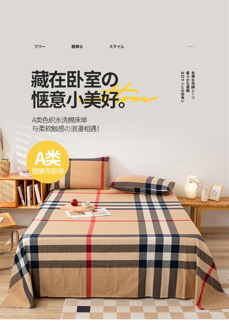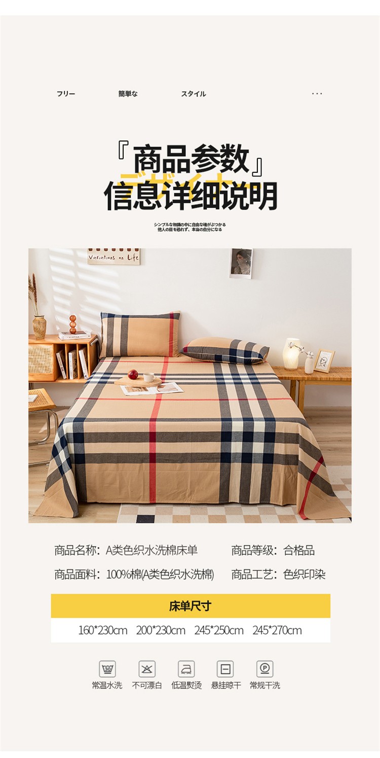 商品名称:九沐良品 新款A类色织水洗棉床单 丈青洋红大格