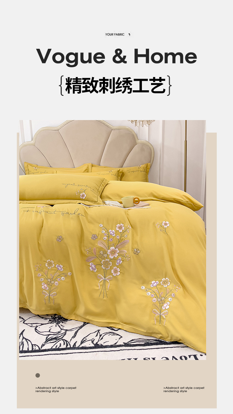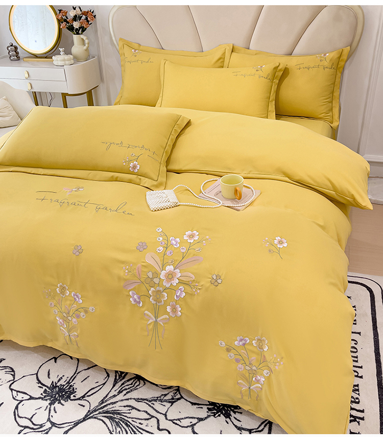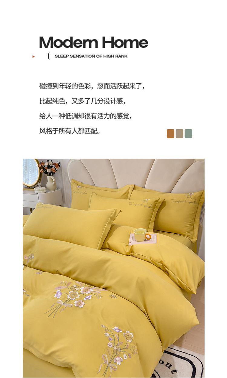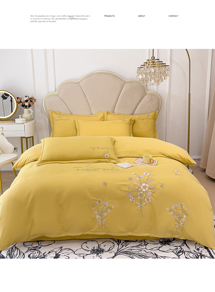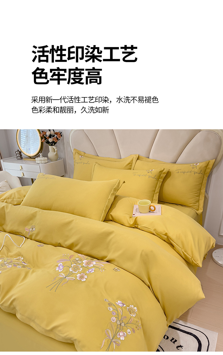 商品名称:金米诺 2024新款水洗磨毛刺绣四件套 幸运花-姜黄