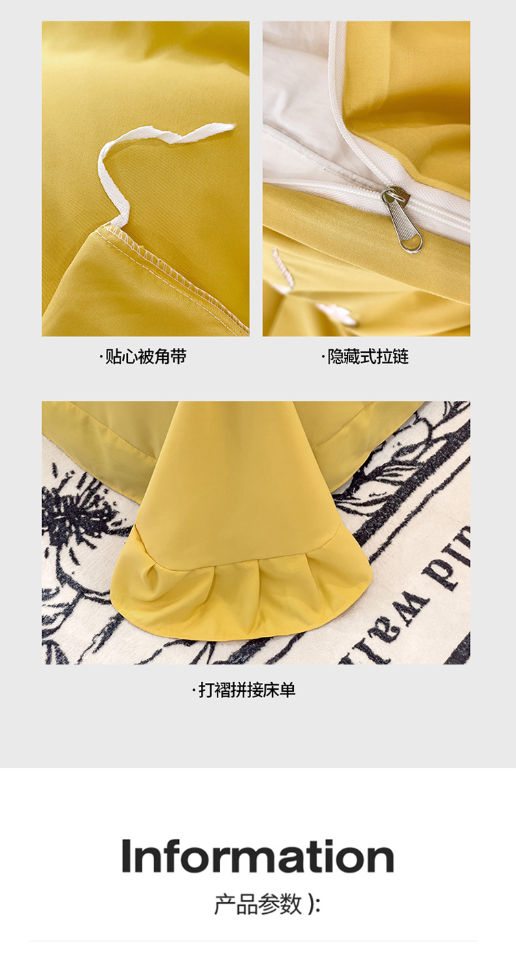 金米诺 新款韩版花边水洗棉泡泡纱四件套公主条四件套 褶皱-浅黄,褶皱-浅黄