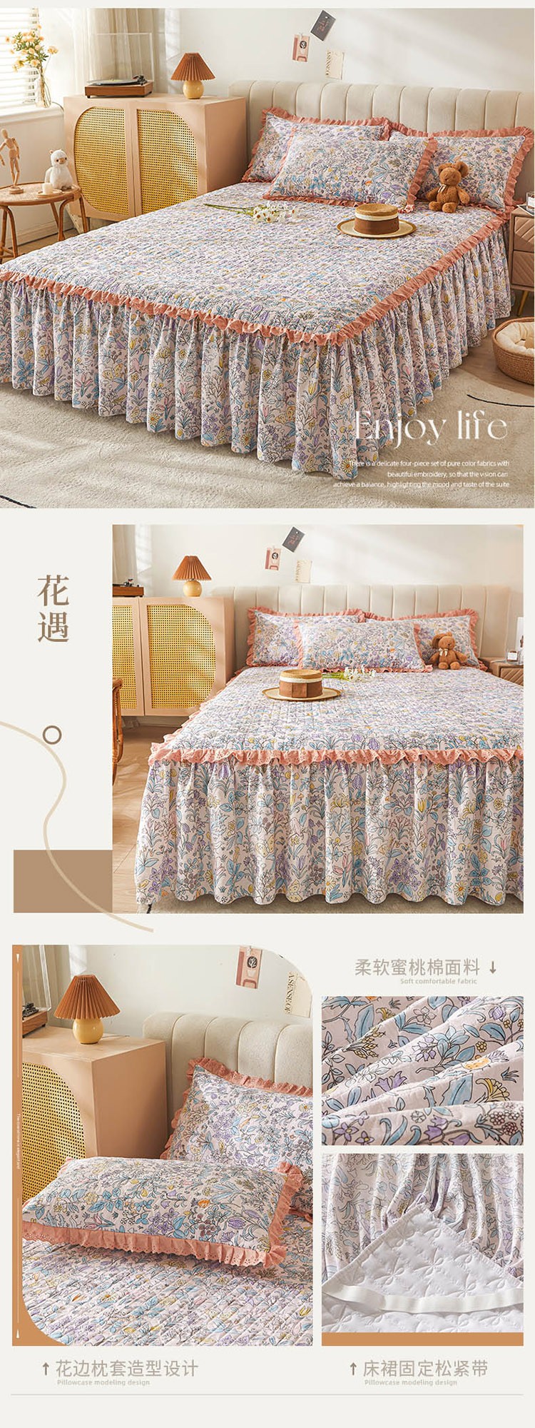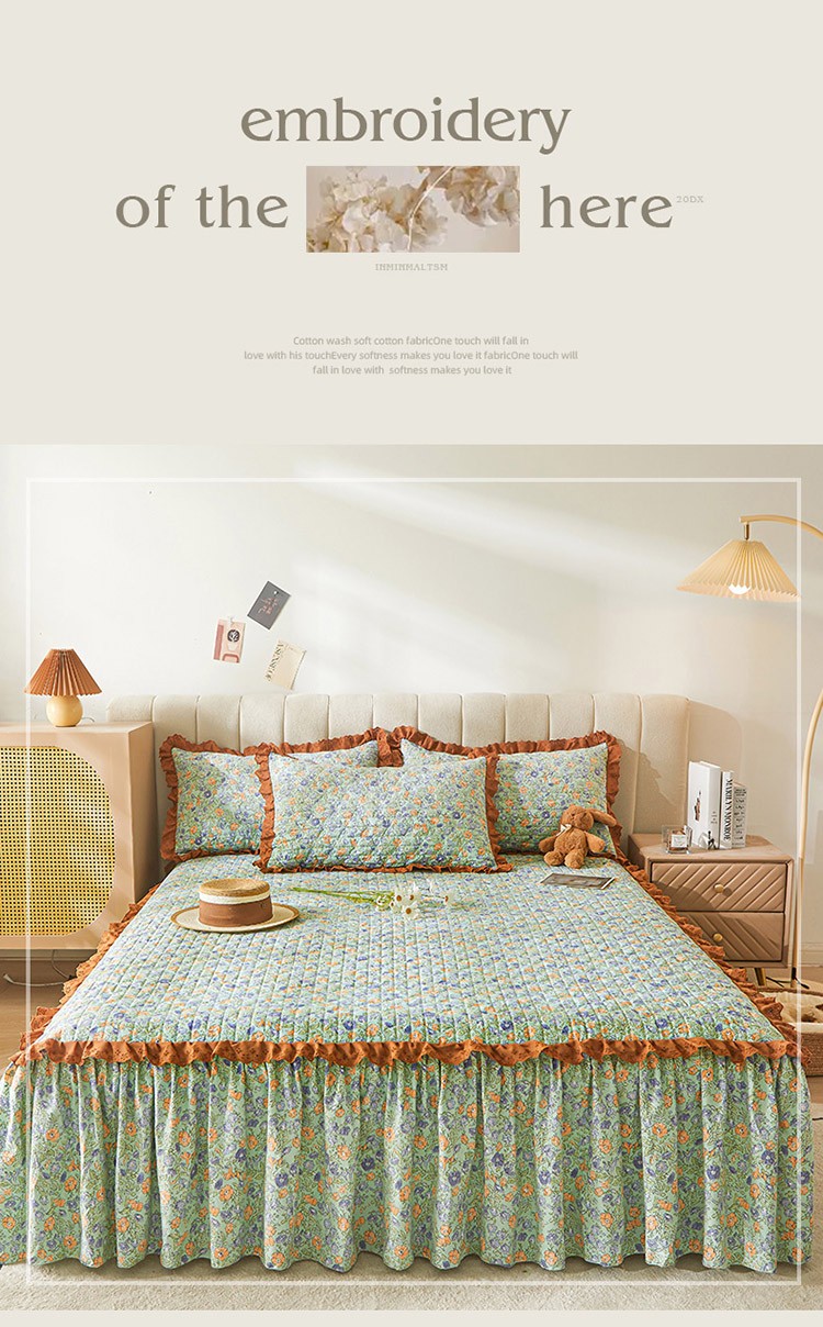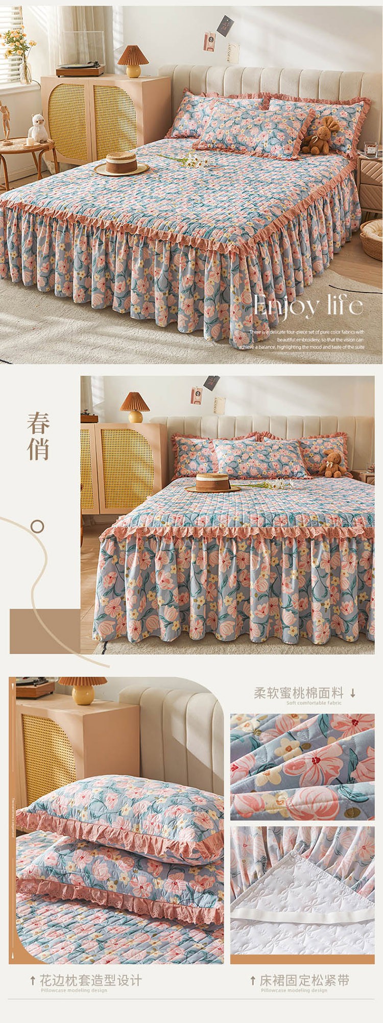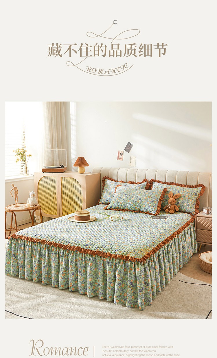 (总)恋尚 2023新款蜜桃棉印花夹棉床裙三件套