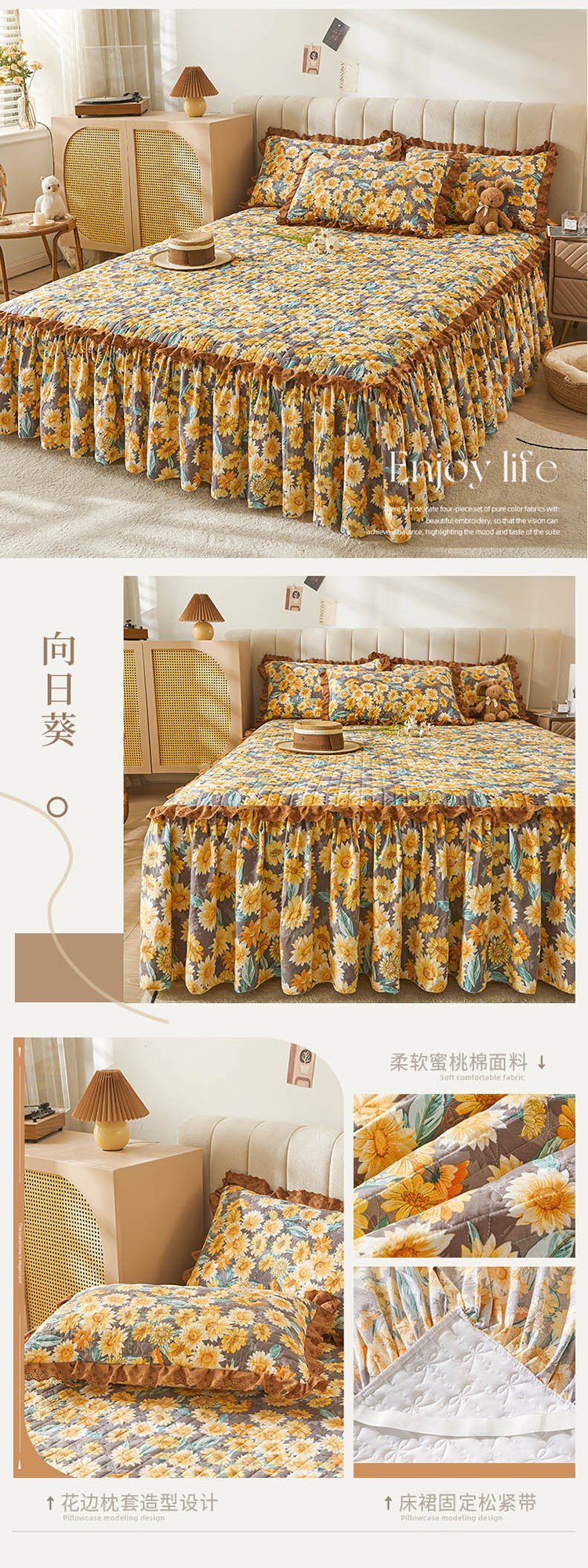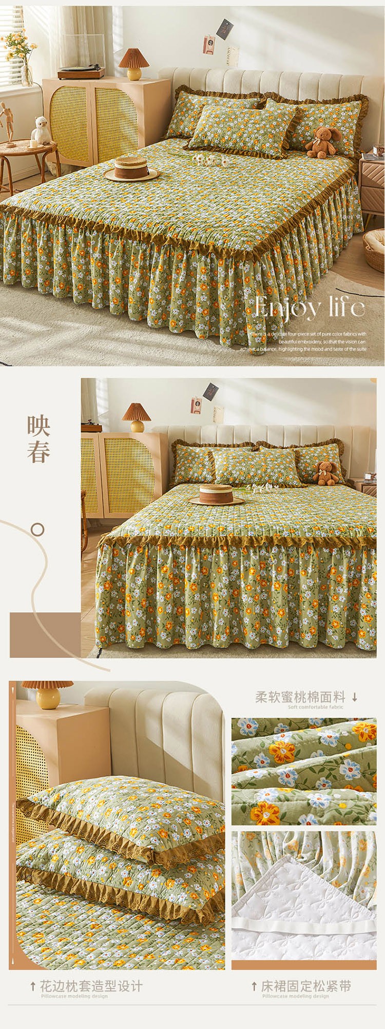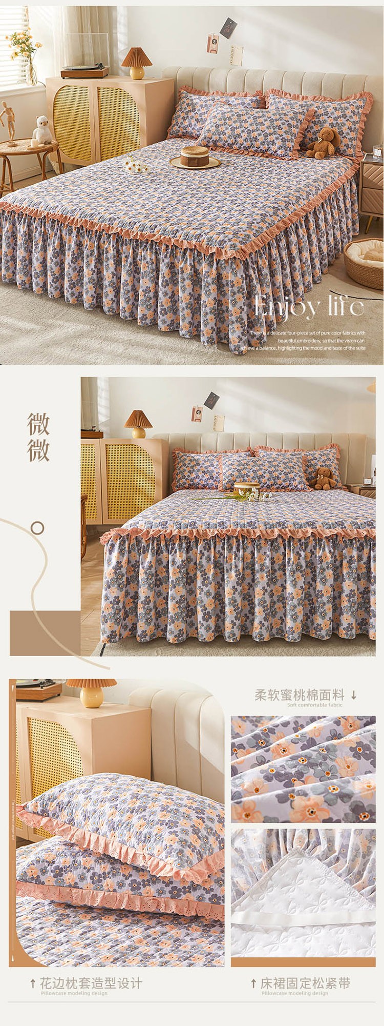 (总)恋尚 2023新款蜜桃棉印花夹棉床裙三件套