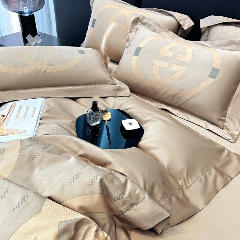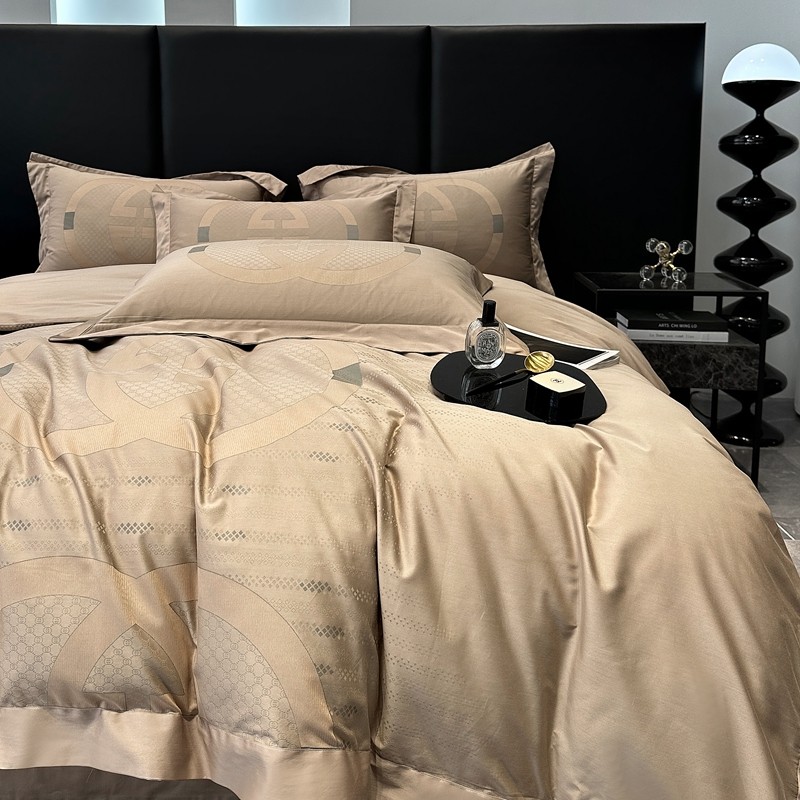 宅家居设计师款轻奢大牌范140支色织提花高定长绒棉四件套奢华系列 古驰