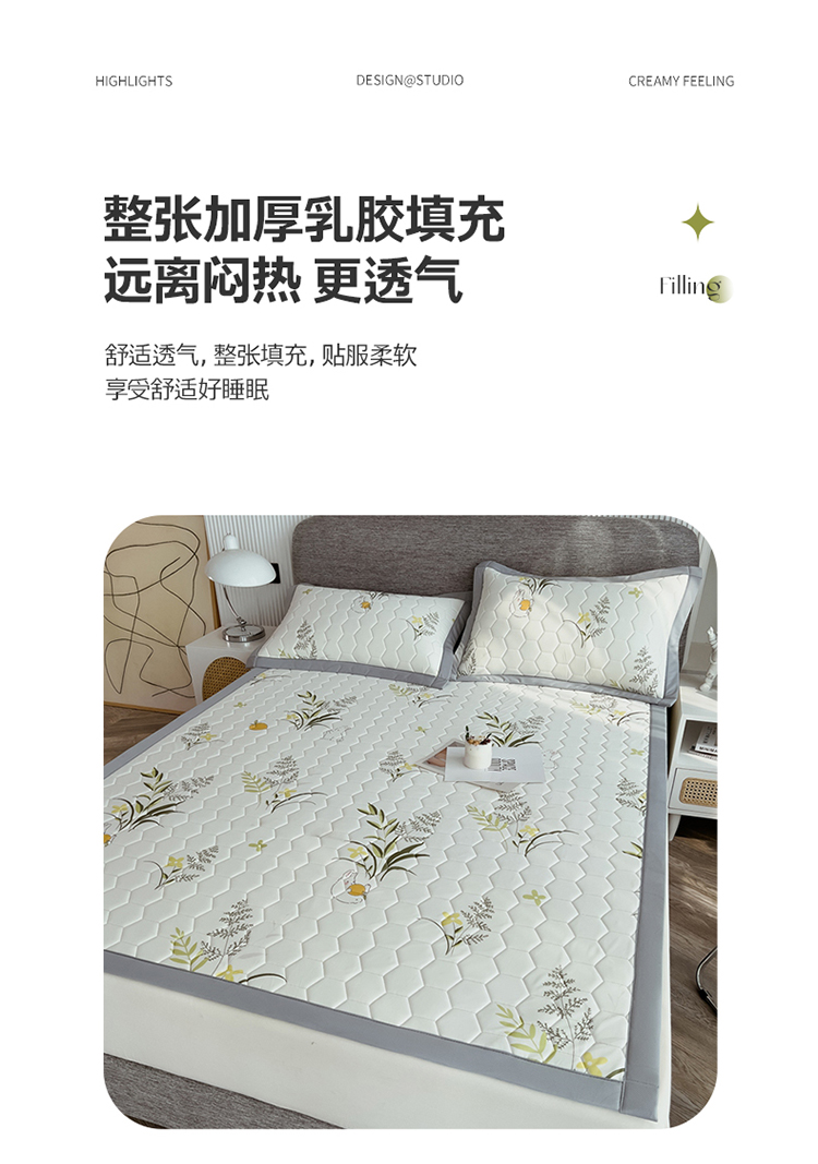 慕尚家纺 2025新款加厚印花乳胶席凉感丝乳胶凉席 麦穗兔