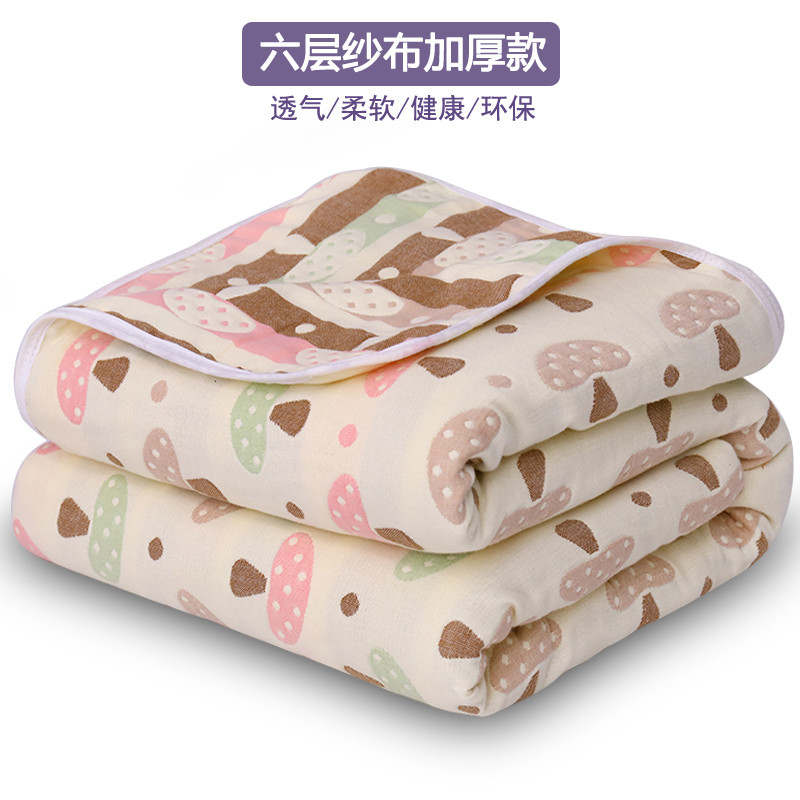 慕婷 全棉6层纱布毛巾被纯棉六层纱布毯 蘑菇
