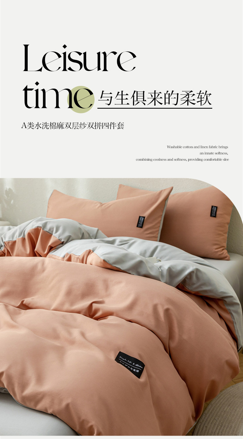 当前位置: 91家纺网 > 商品网购 > 床品套件 > 四件套 > 水洗棉四件套 > 米瑞娜 2024新款 水洗棉麻双拼纯色四件套 黛粉+浅灰