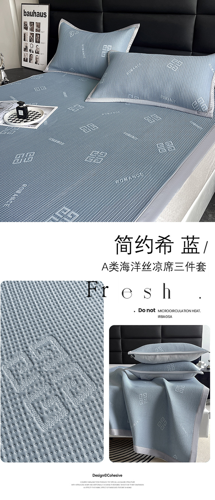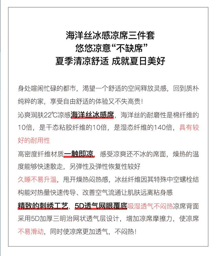 商品名称:(总)花漾家居 2023新款A类轻奢宽边海洋丝凉感丝针织凉席三件套