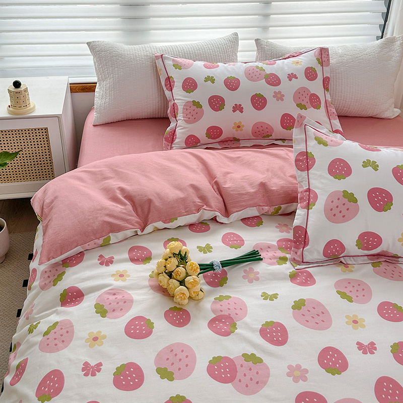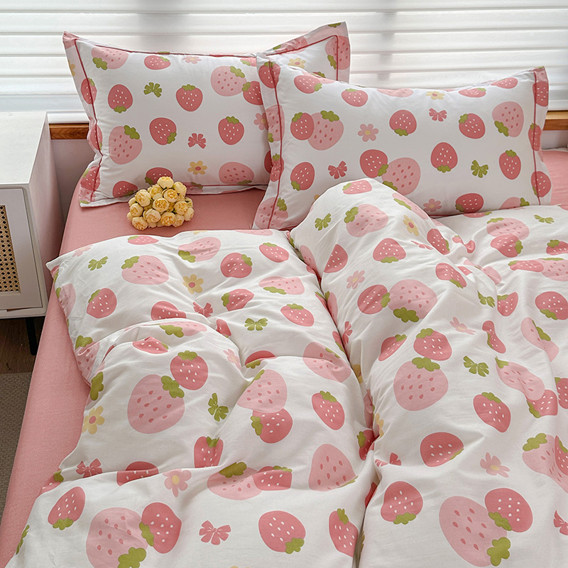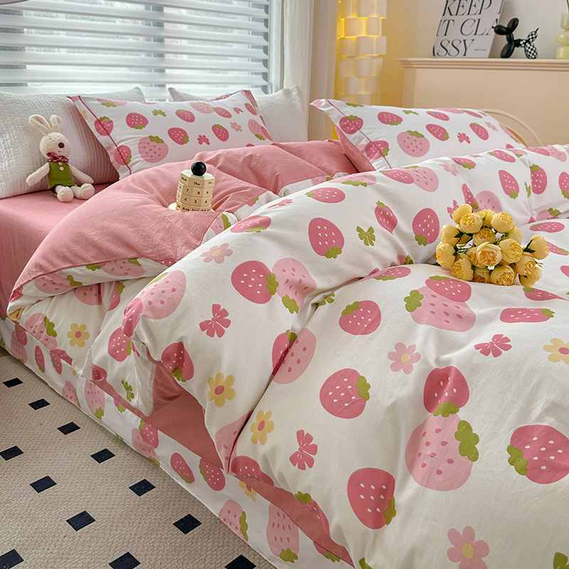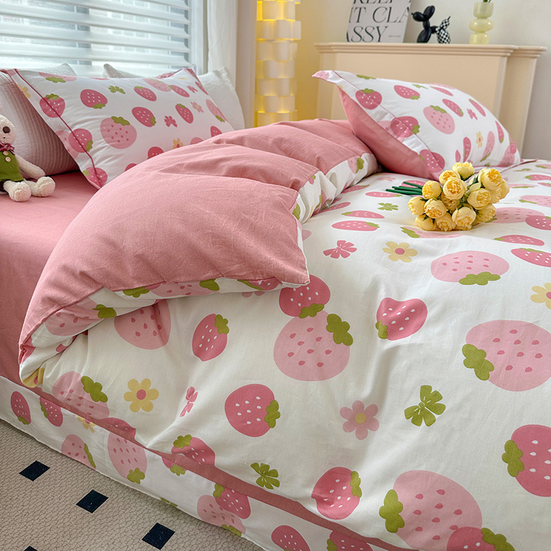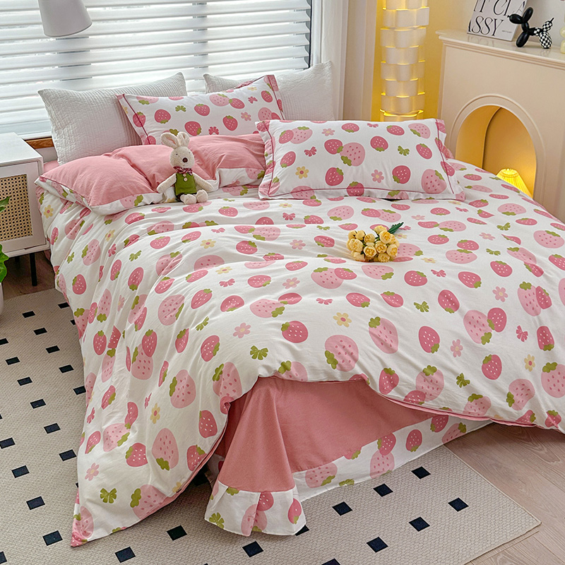 2024新款13372纯棉大版印+绣小清新款四件套 草莓之恋,草莓之恋