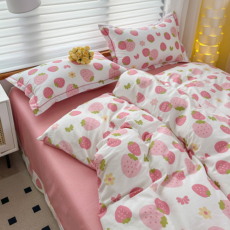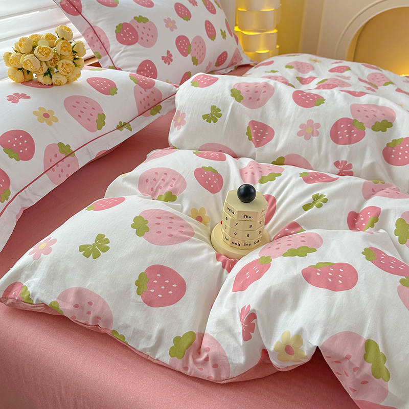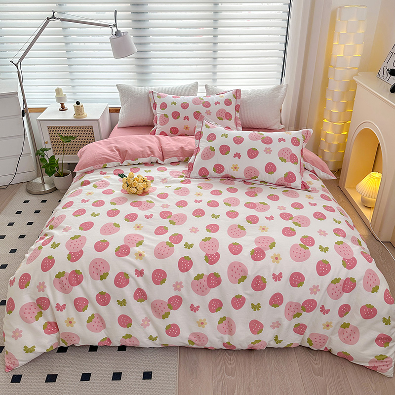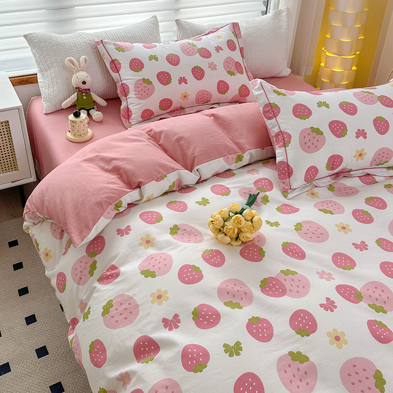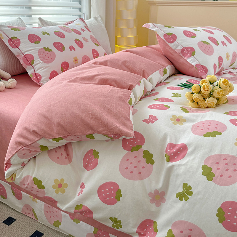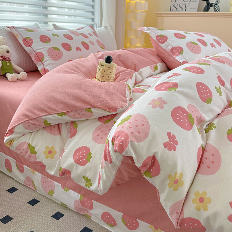 2024新款13372纯棉大版印+绣小清新款四件套 草莓之恋,草莓之恋