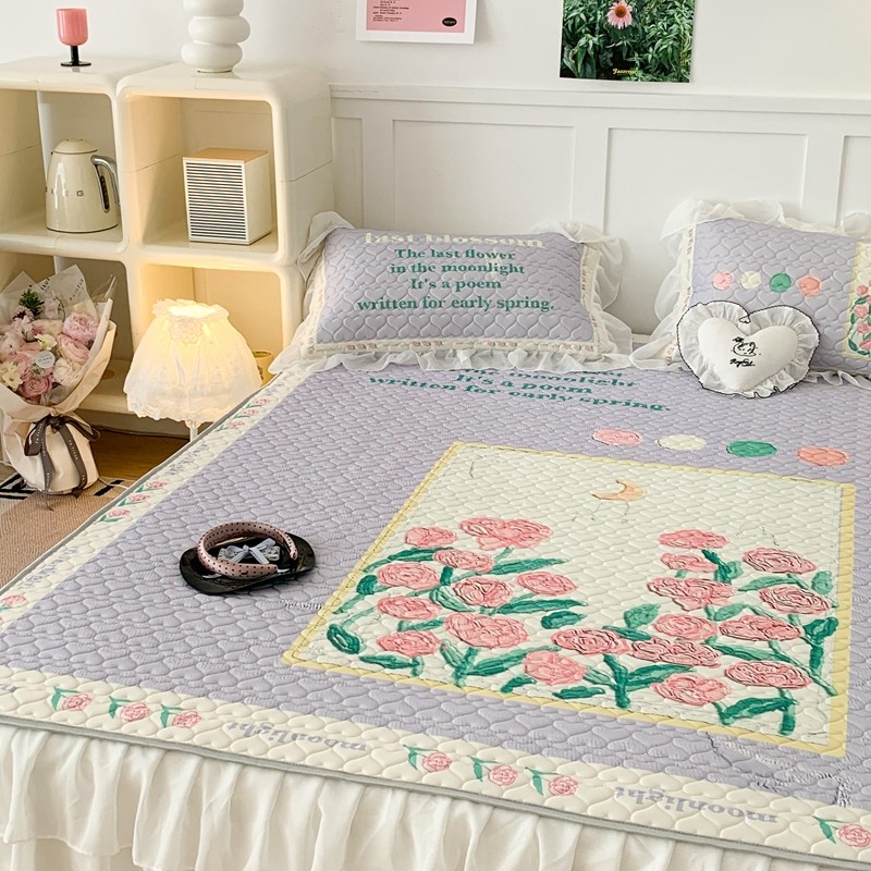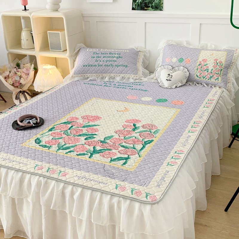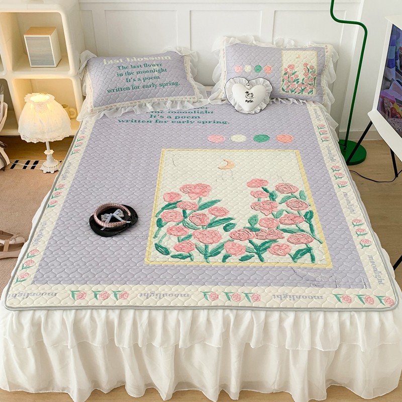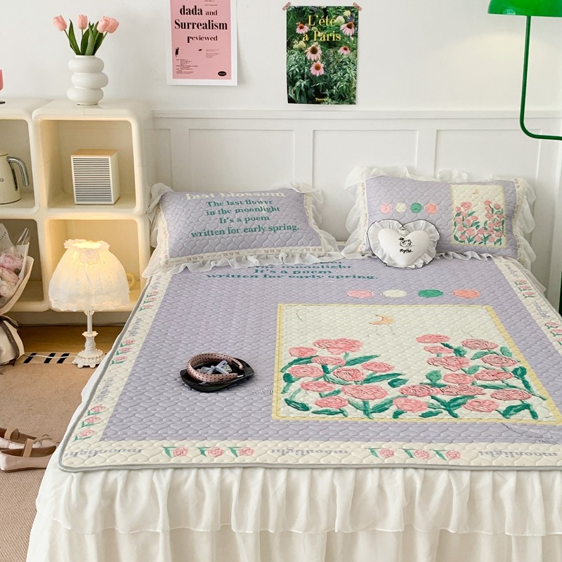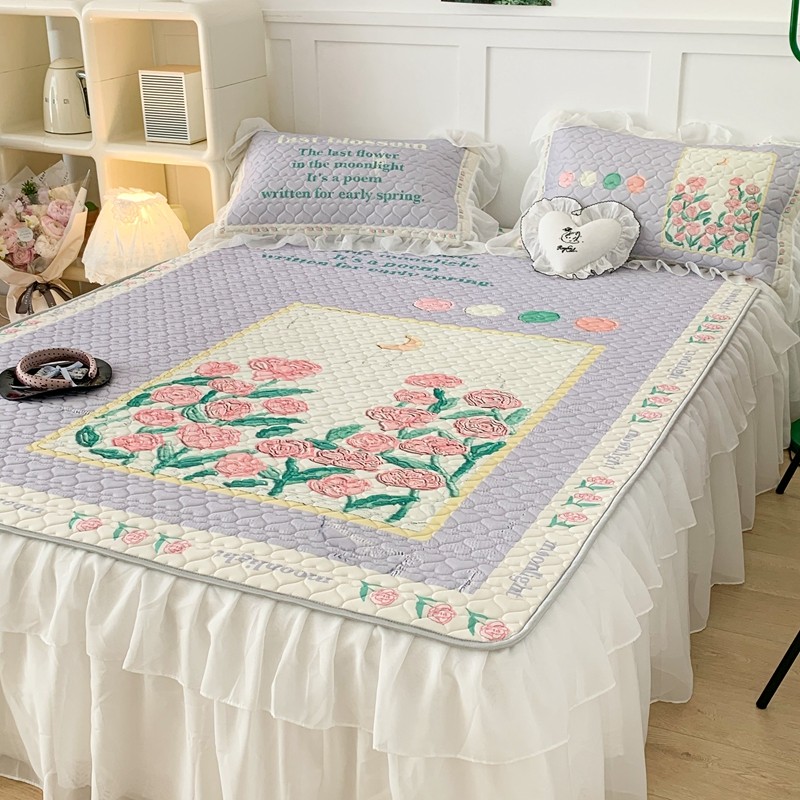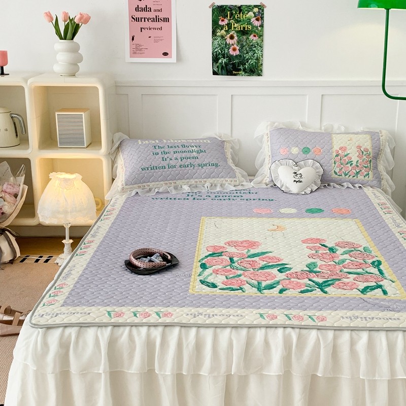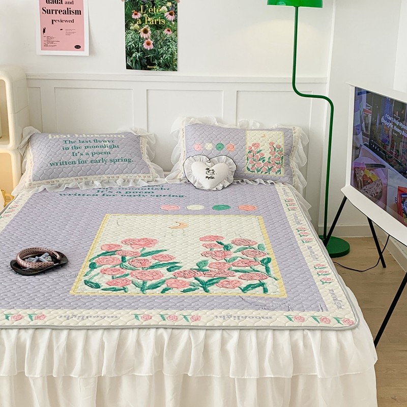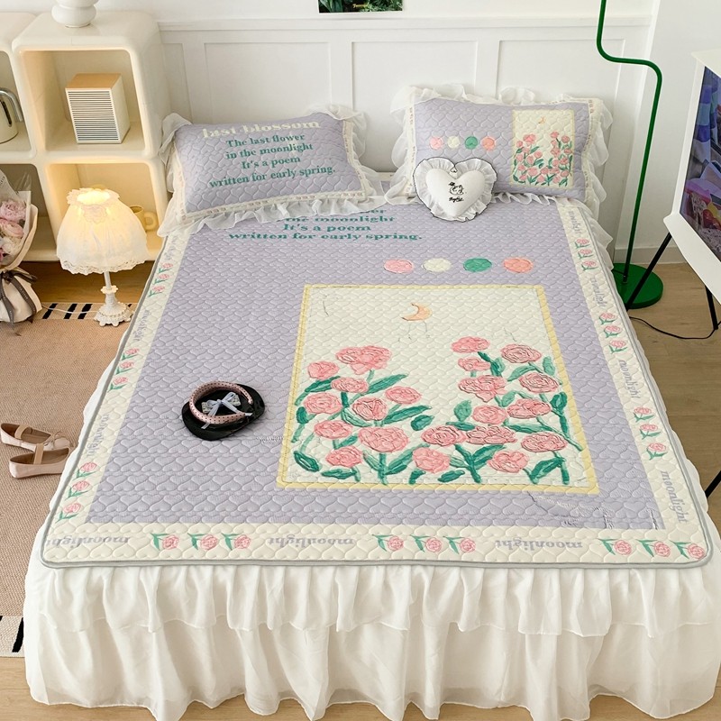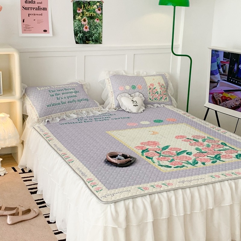 昔可 2023新款第二批双层床裙乳胶三件套 可爱小清新风 框框油画玫瑰