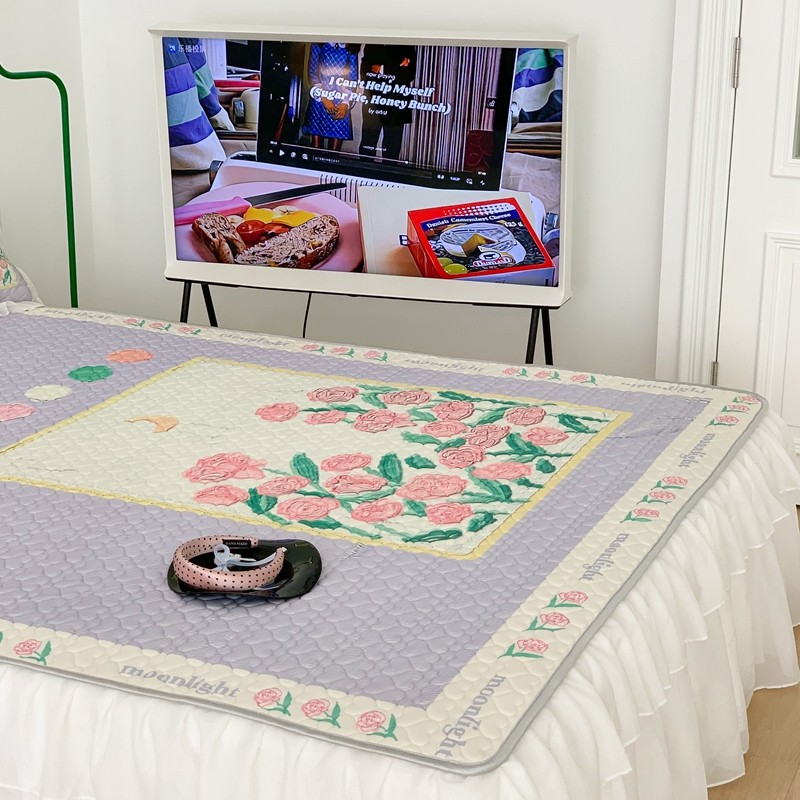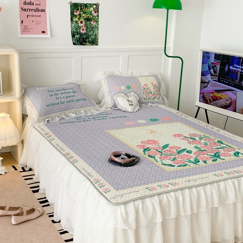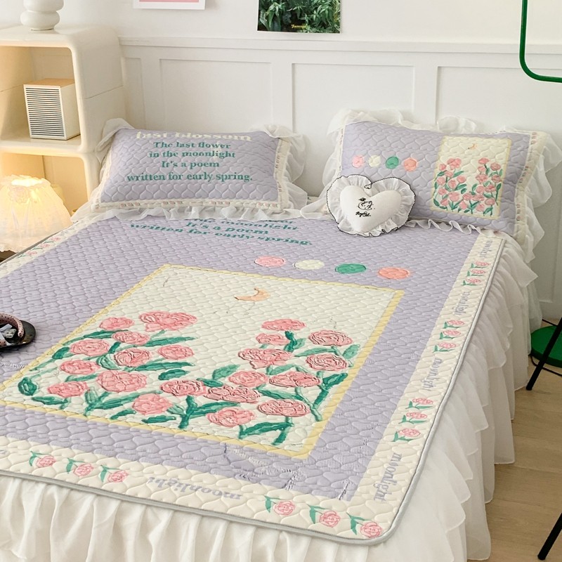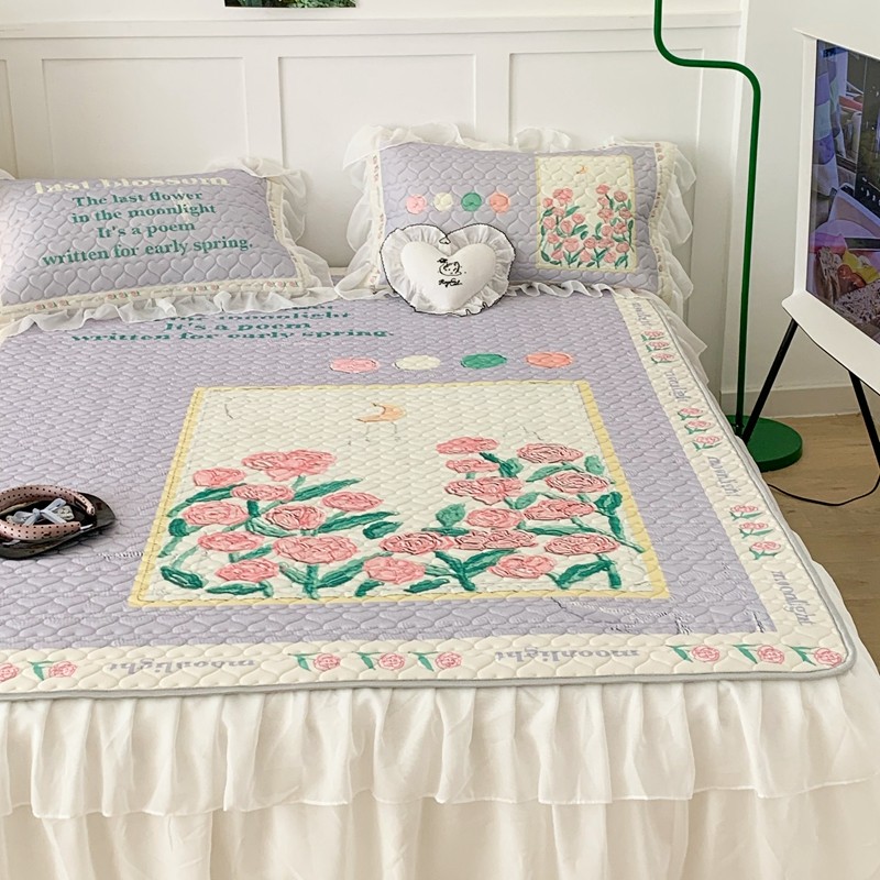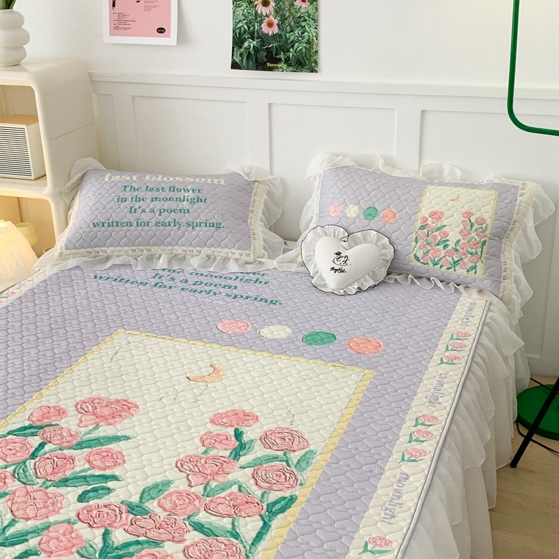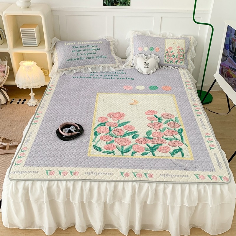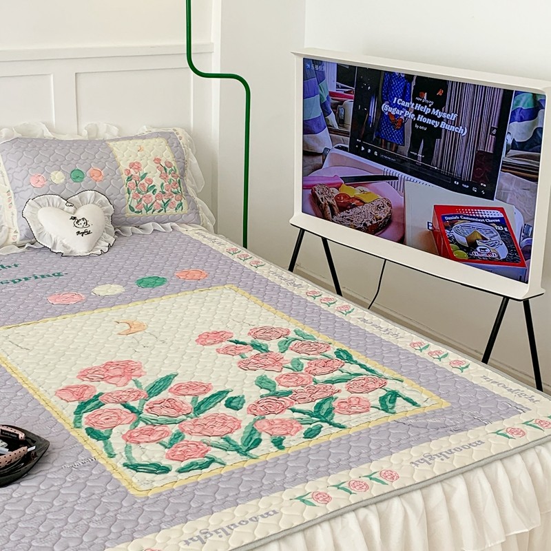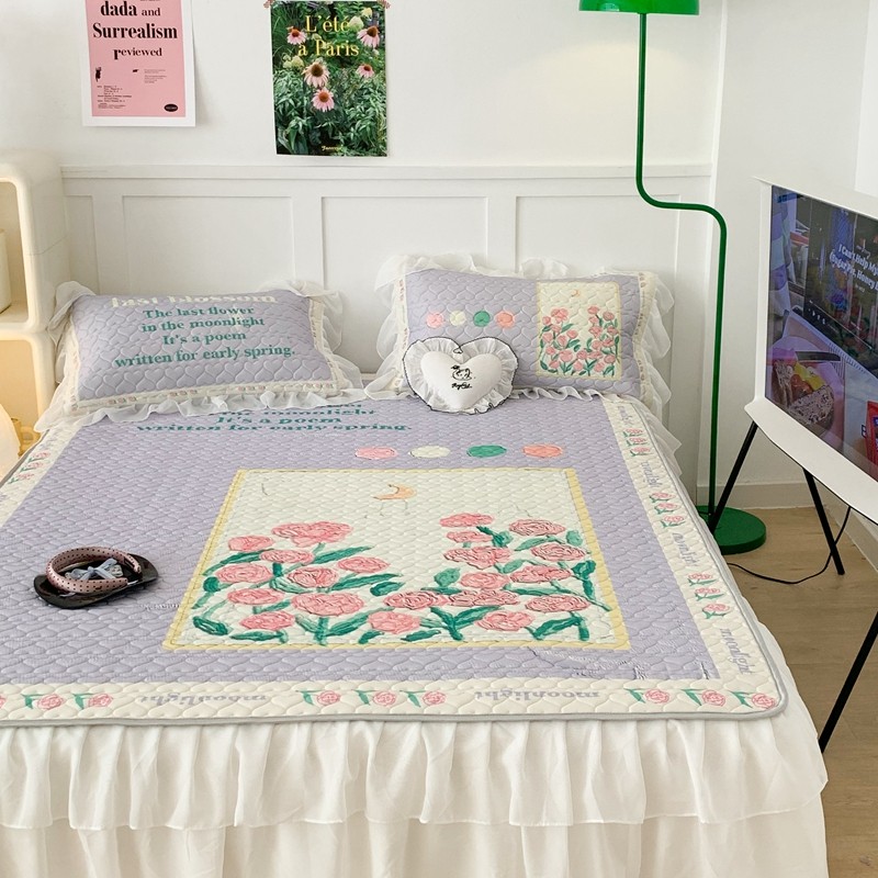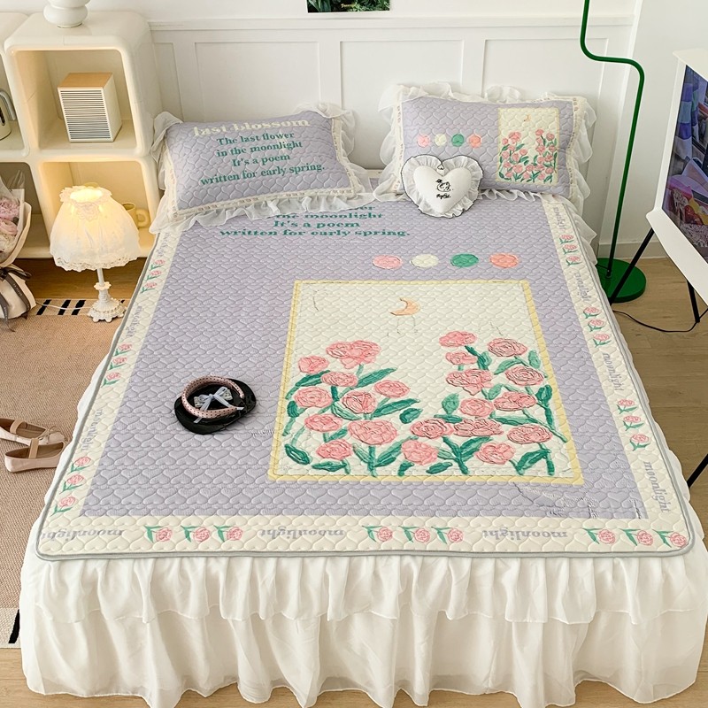 昔可 2023新款第二批双层床裙乳胶三件套 可爱小清新风 框框油画玫瑰