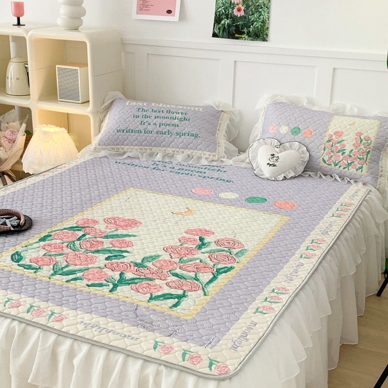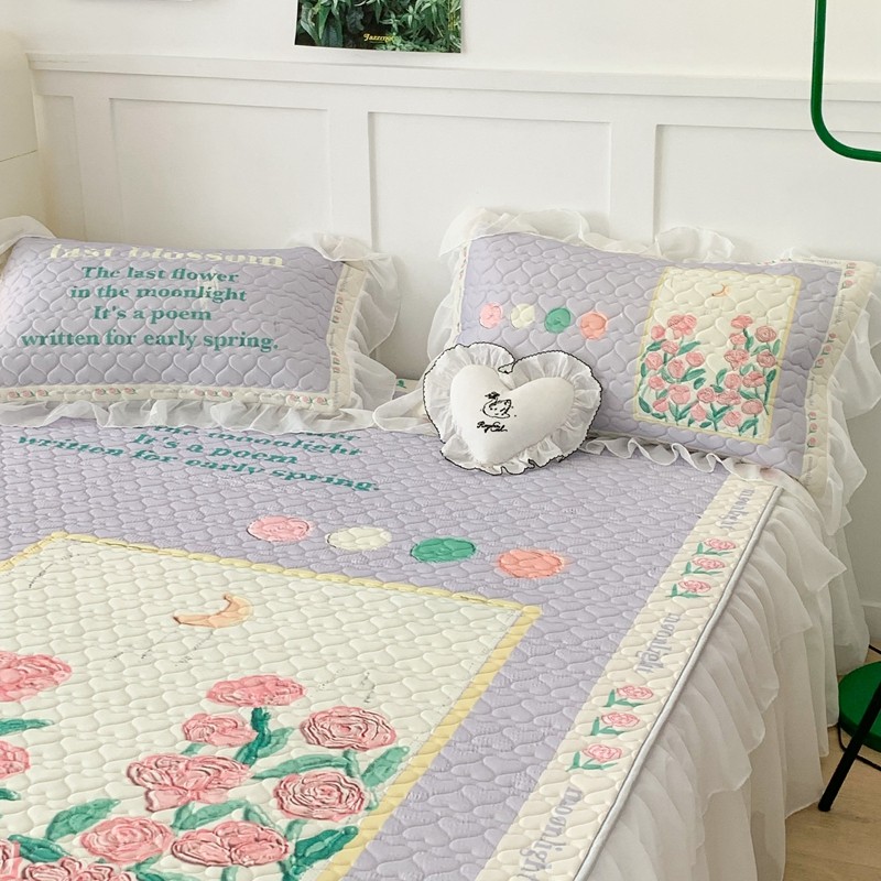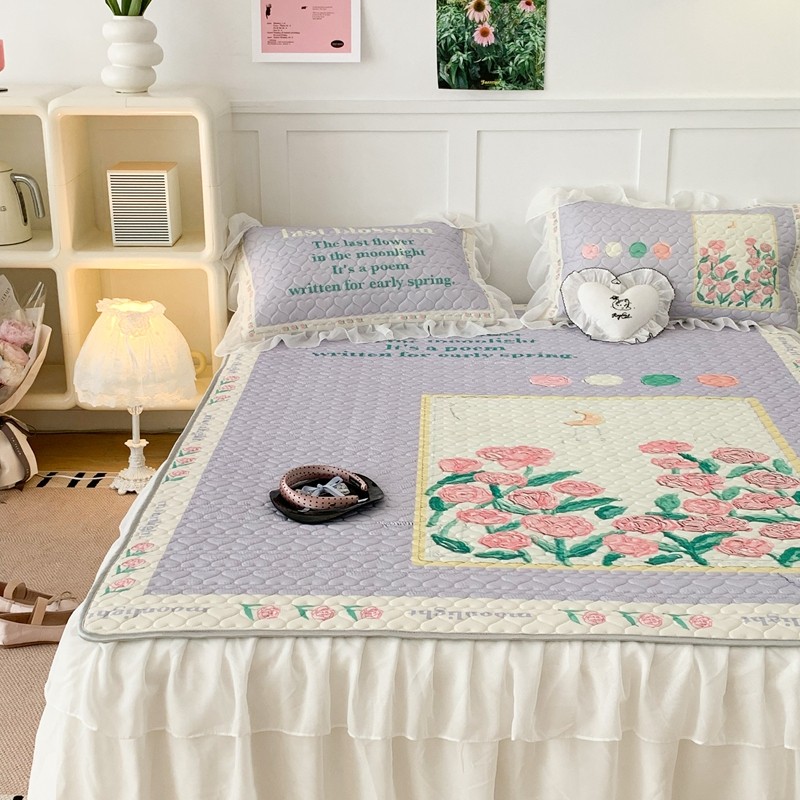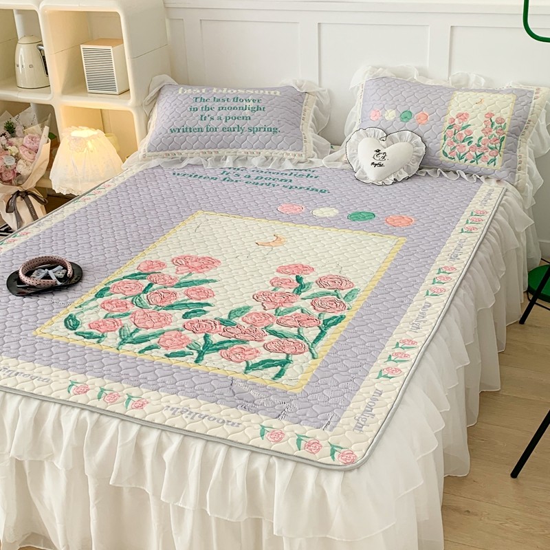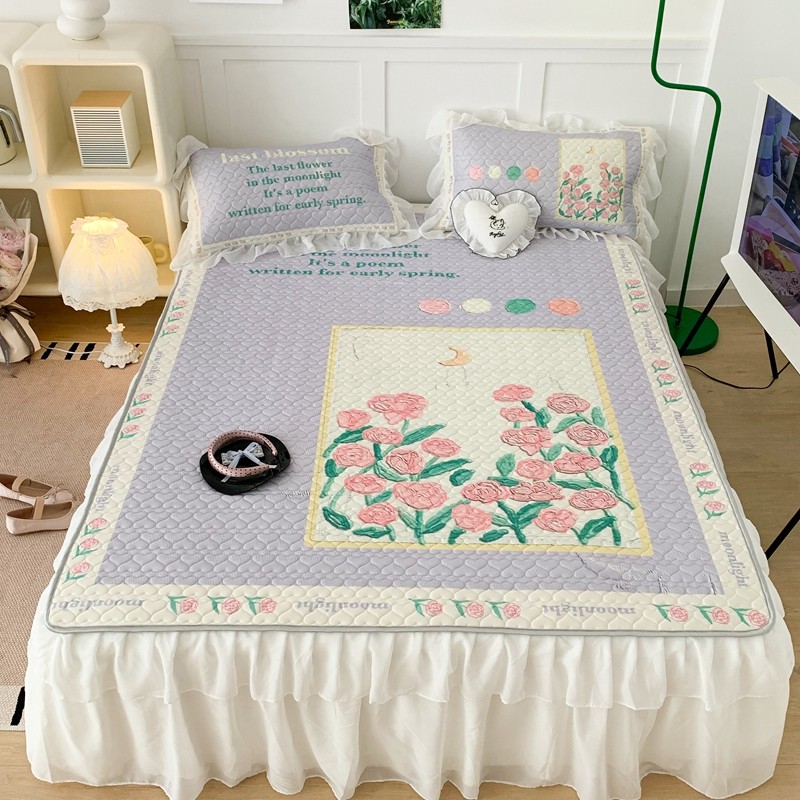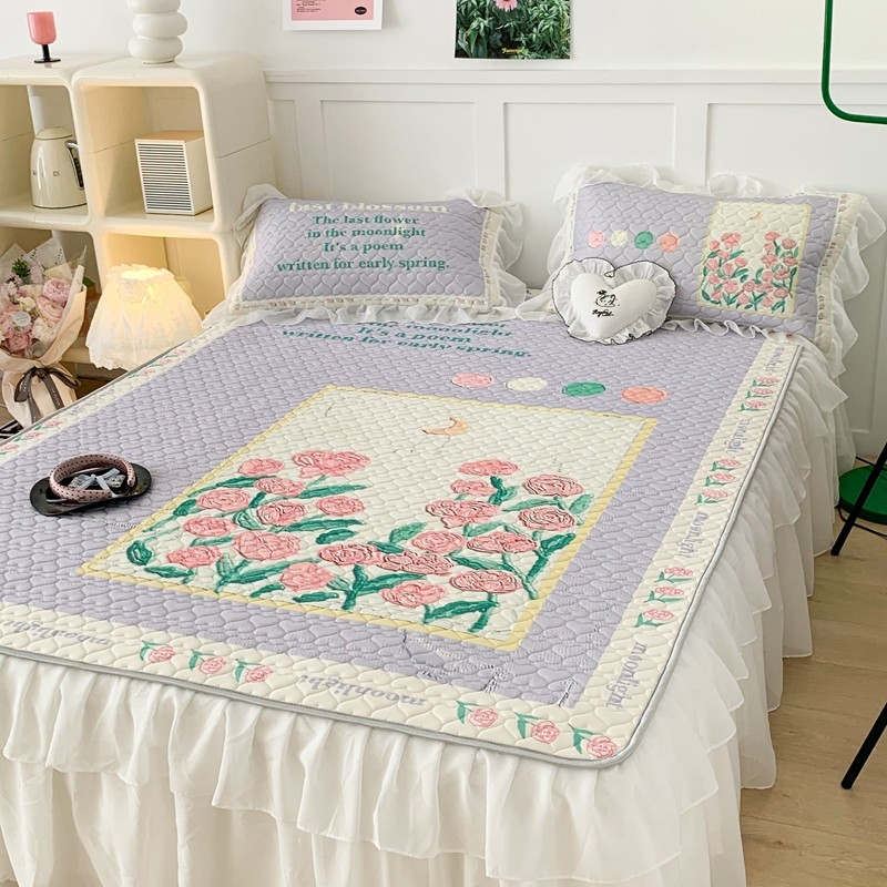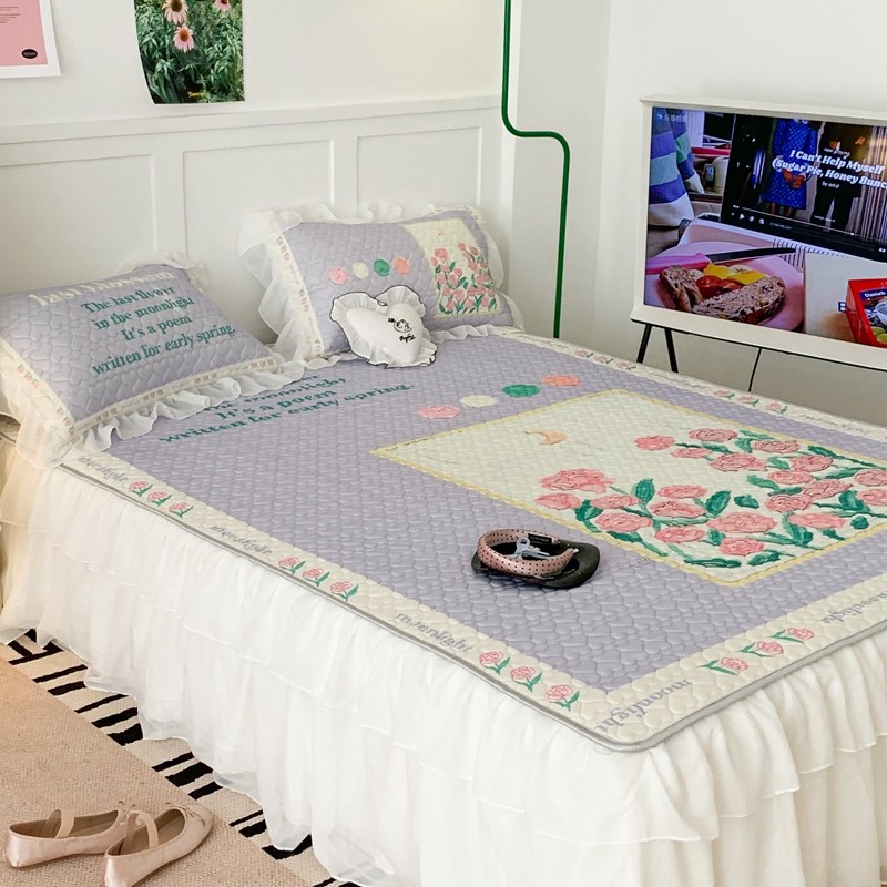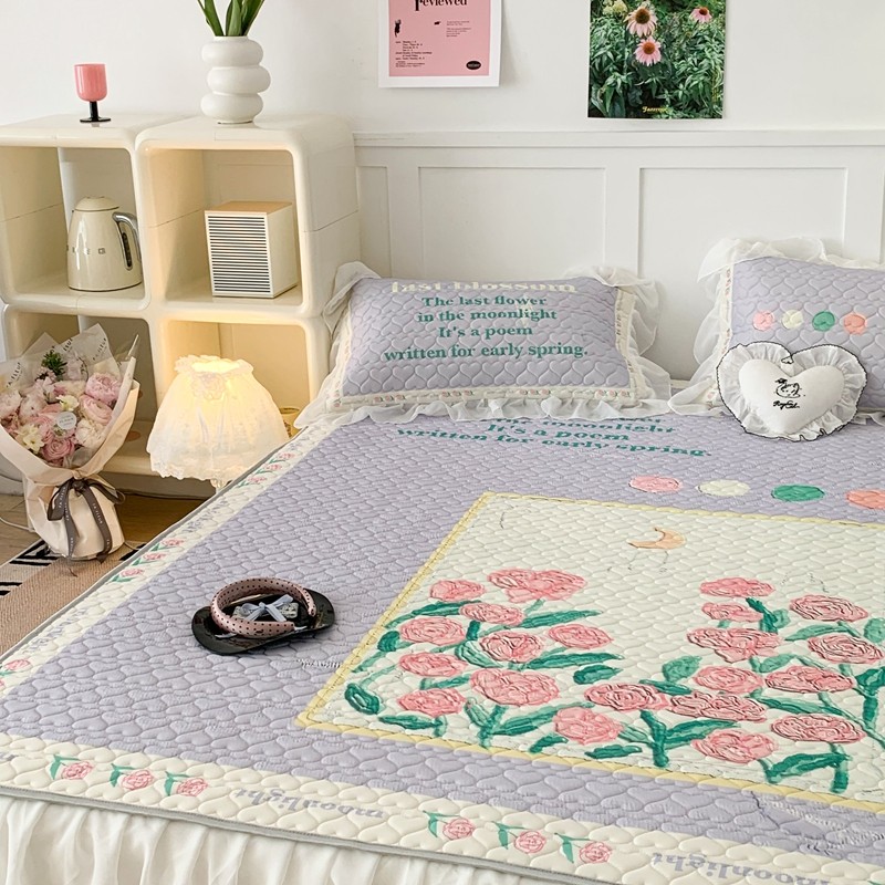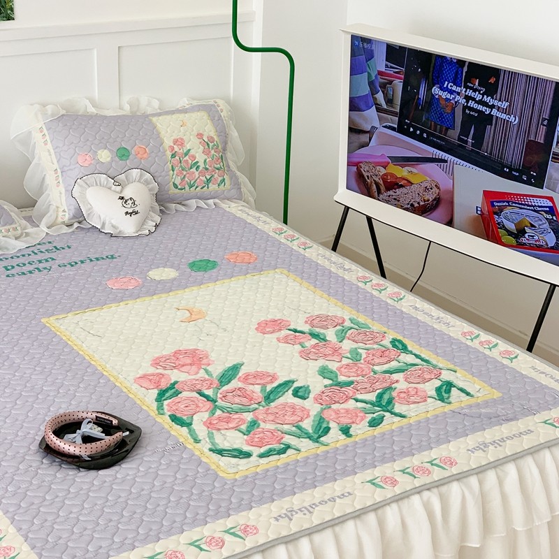 昔可 2023新款第二批双层床裙乳胶三件套 可爱小清新风 框框油画玫瑰