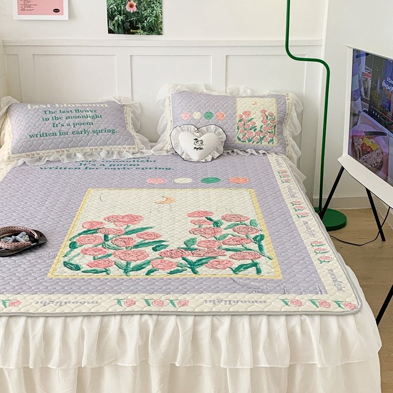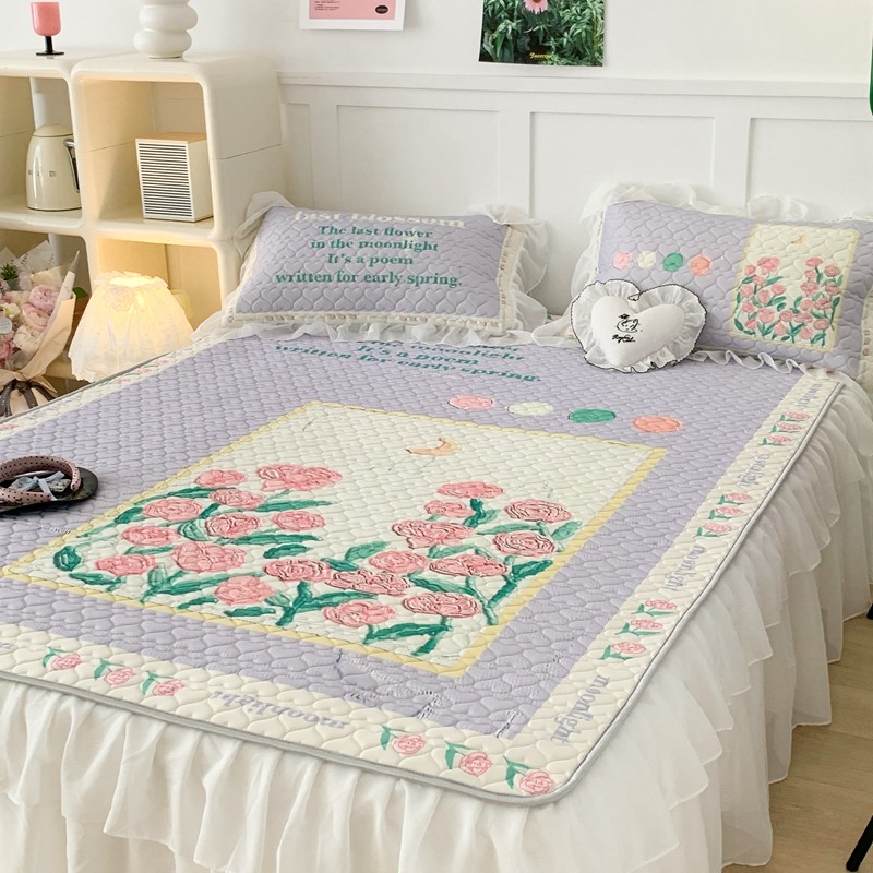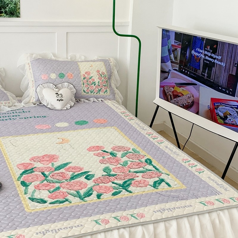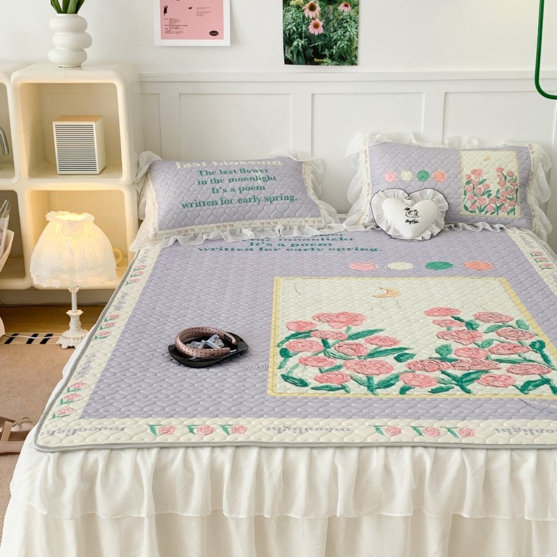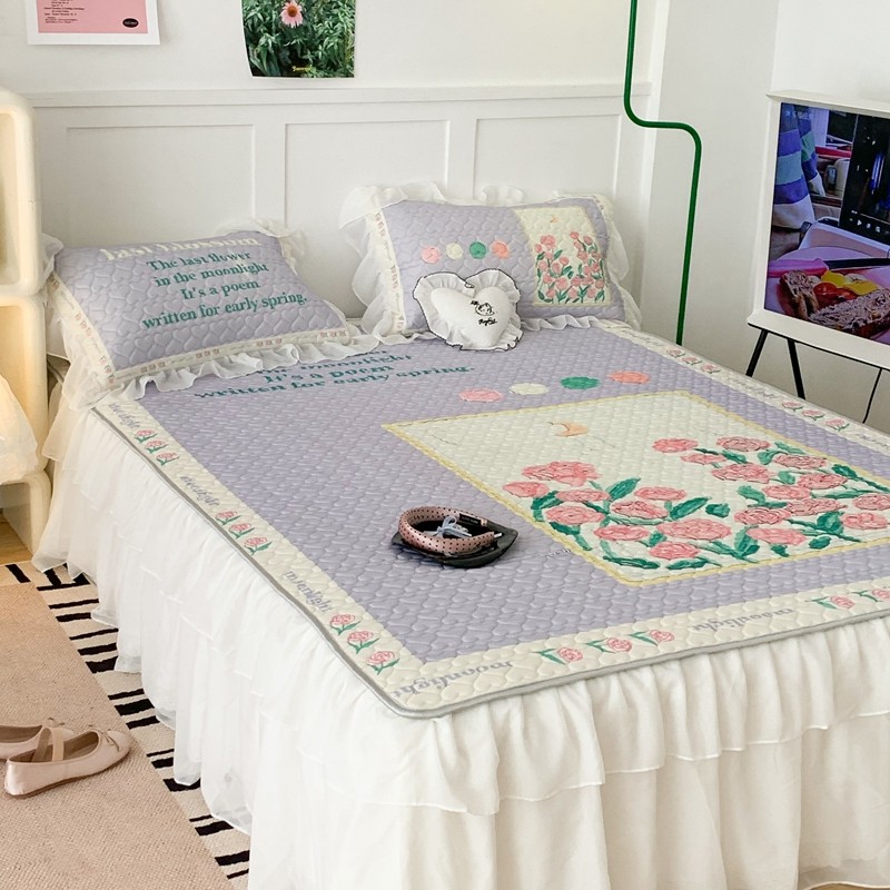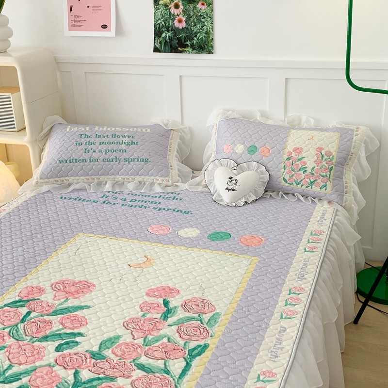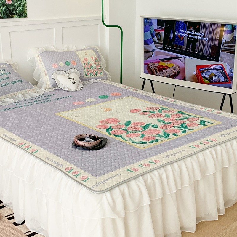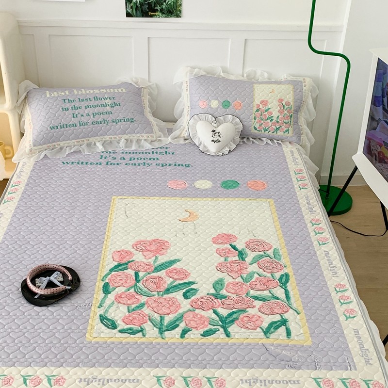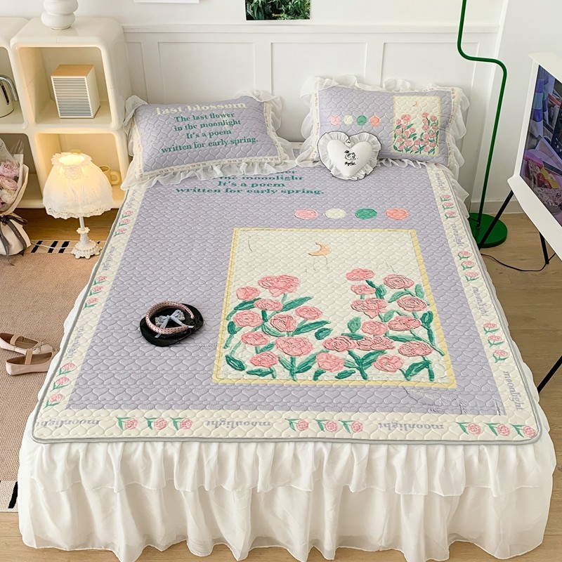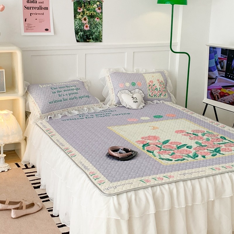 昔可 2023新款第二批双层床裙乳胶三件套 可爱小清新风 框框油画玫瑰