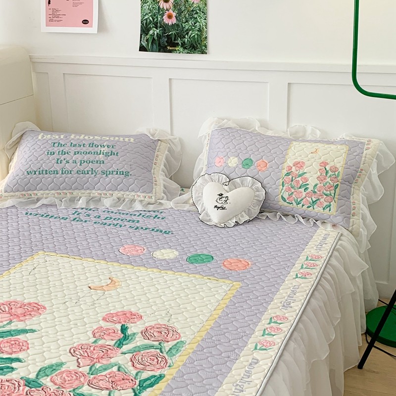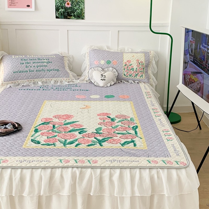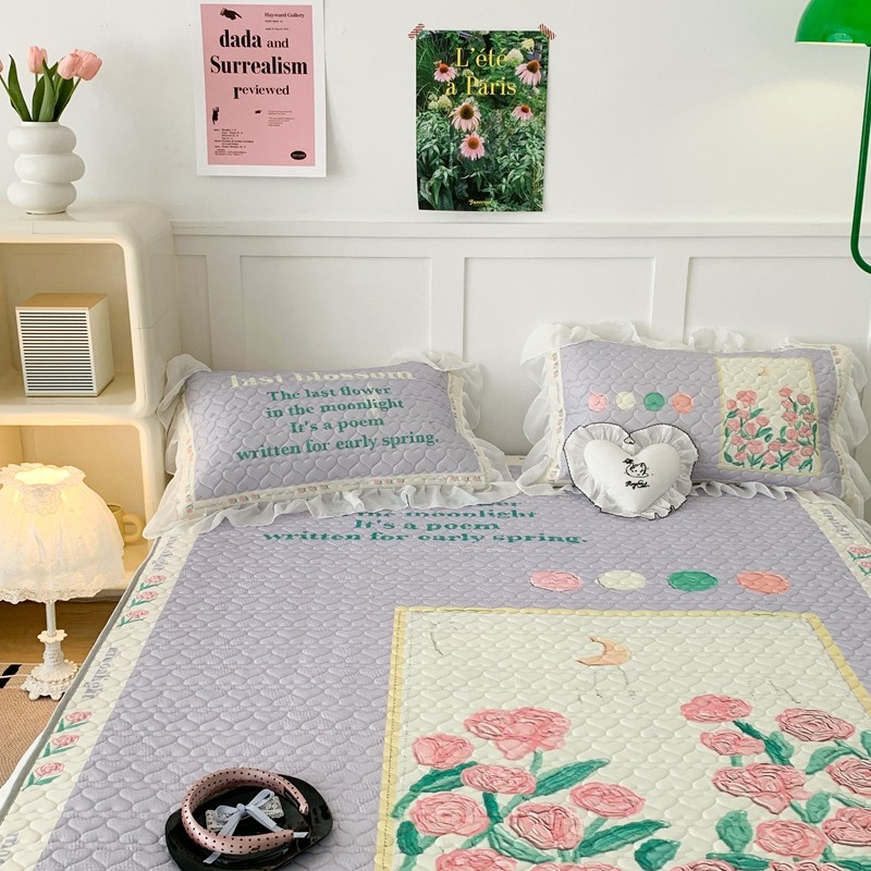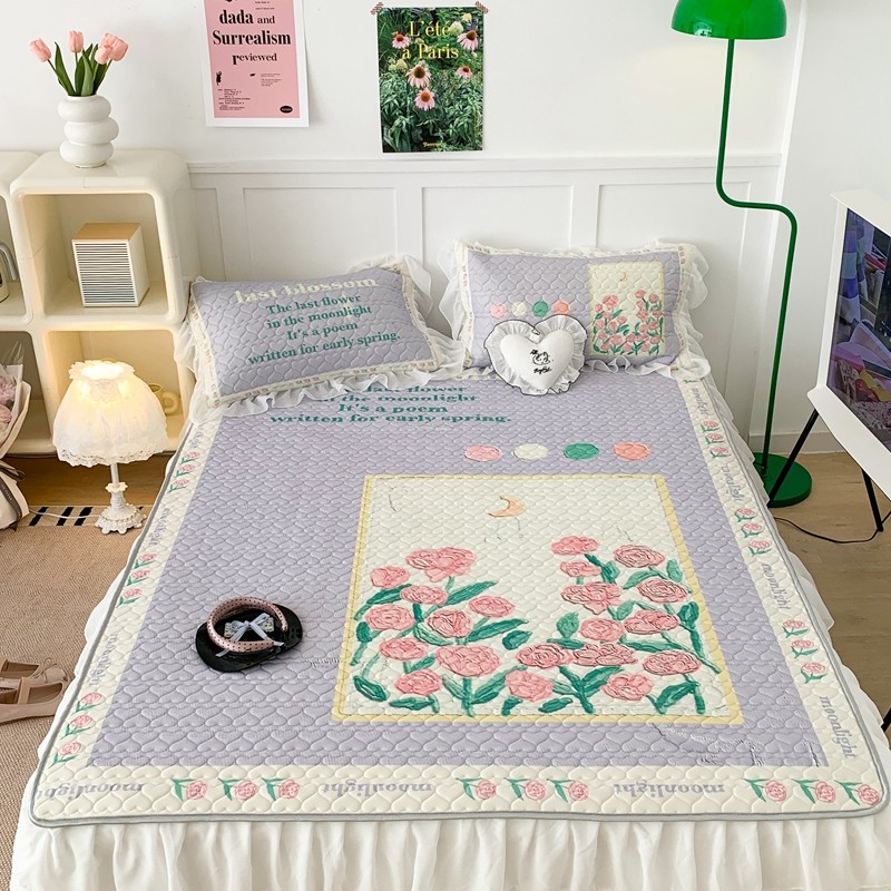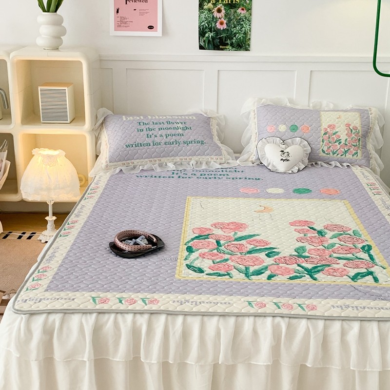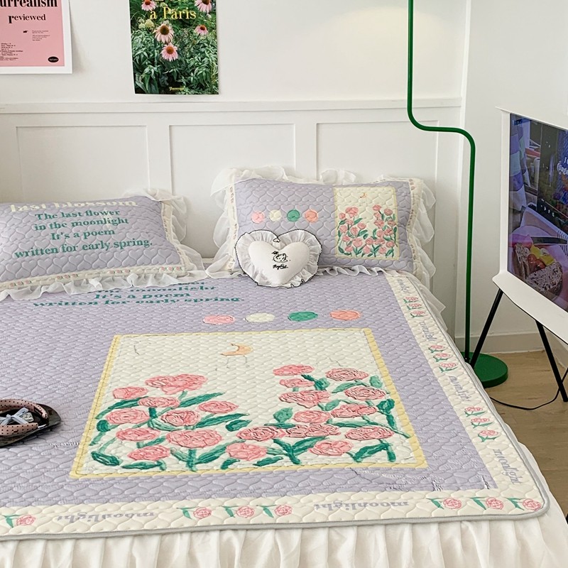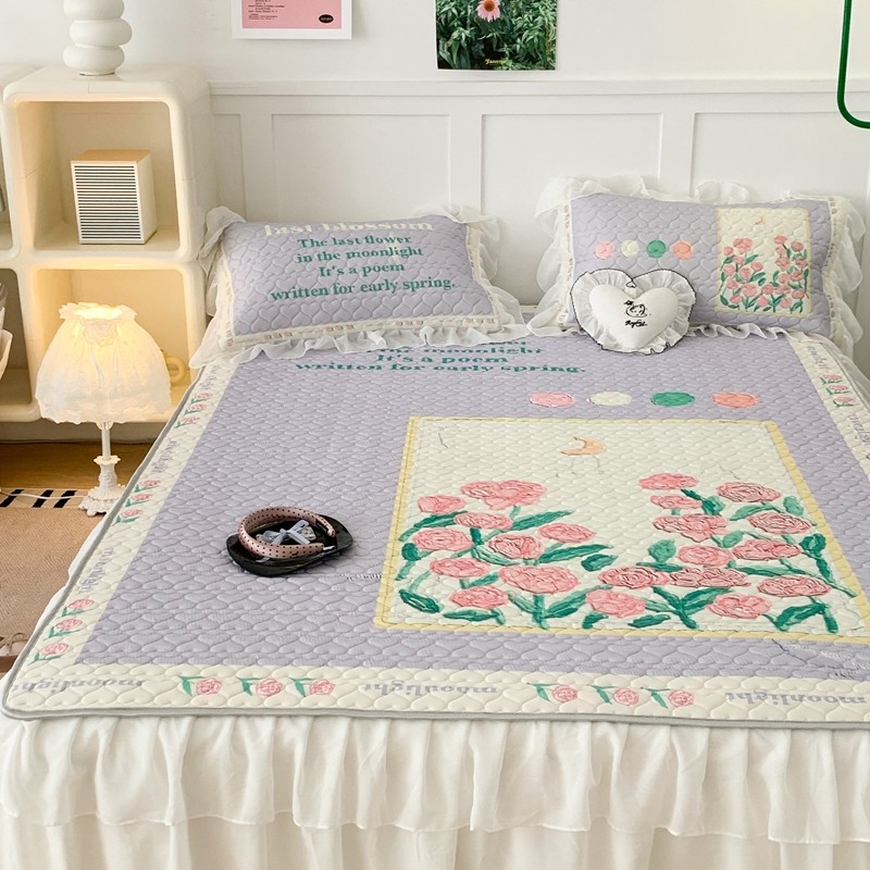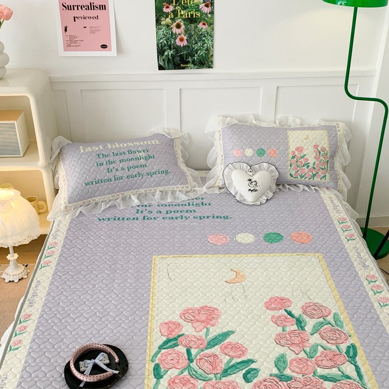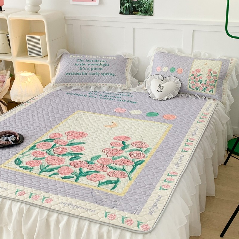 昔可 2023新款第二批双层床裙乳胶三件套 可爱小清新风 框框油画玫瑰