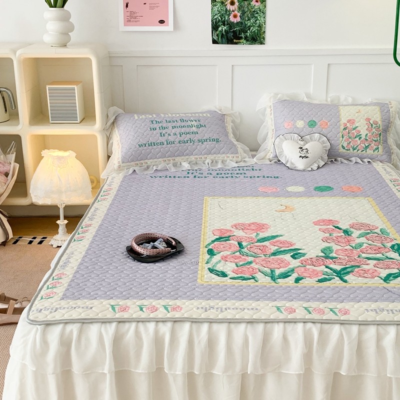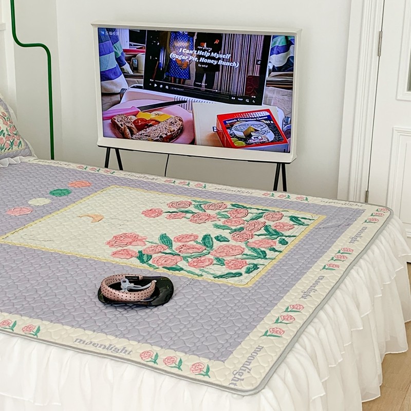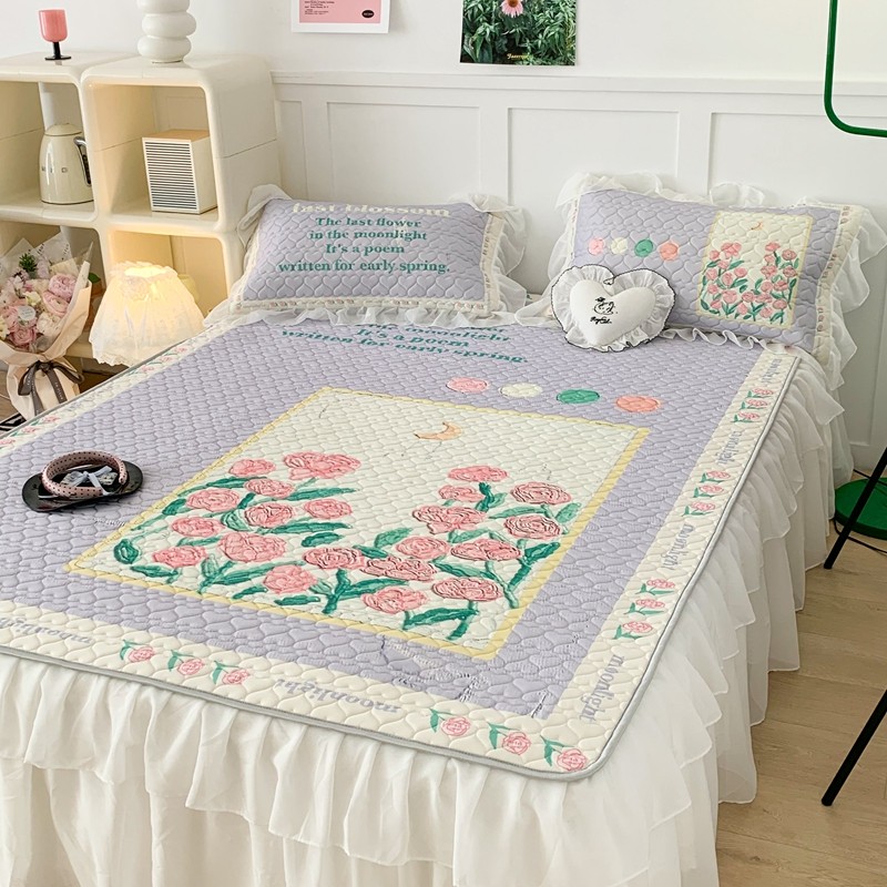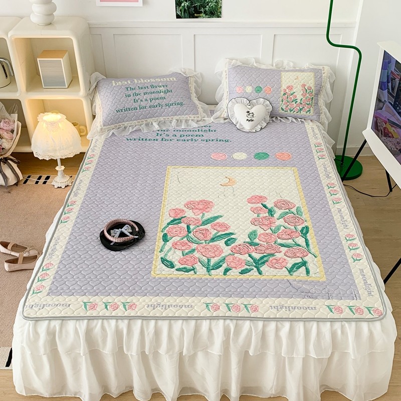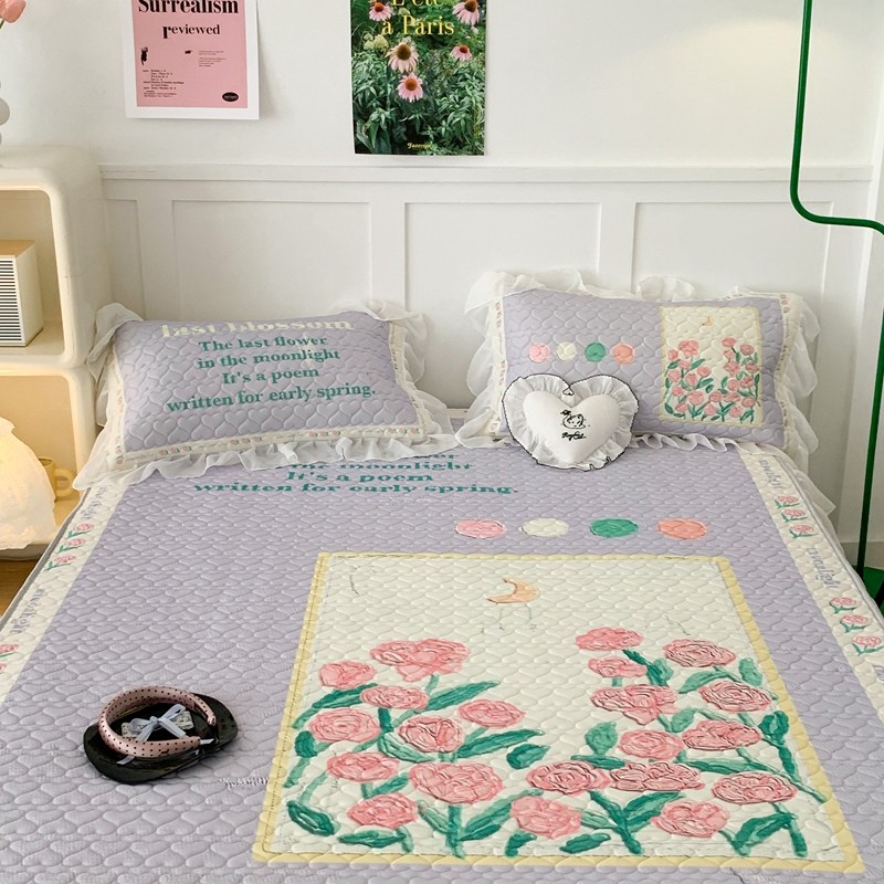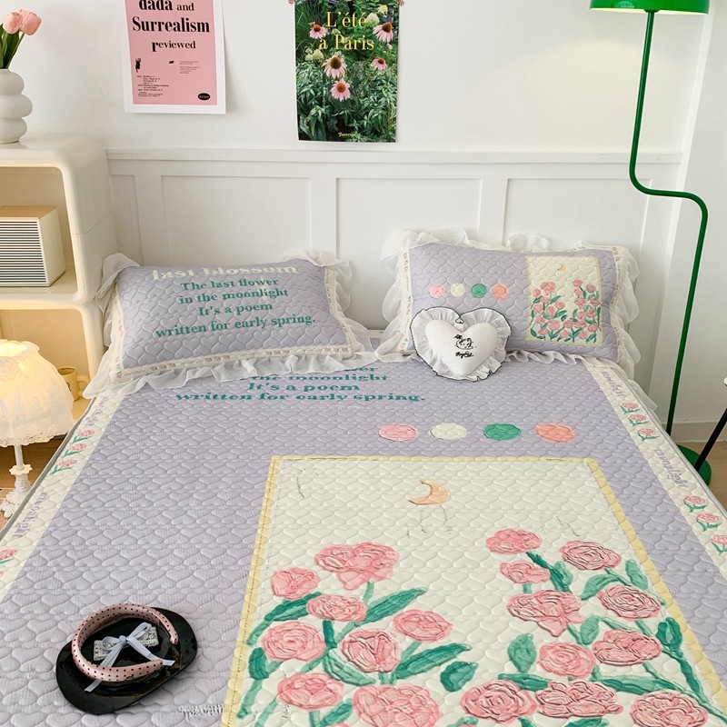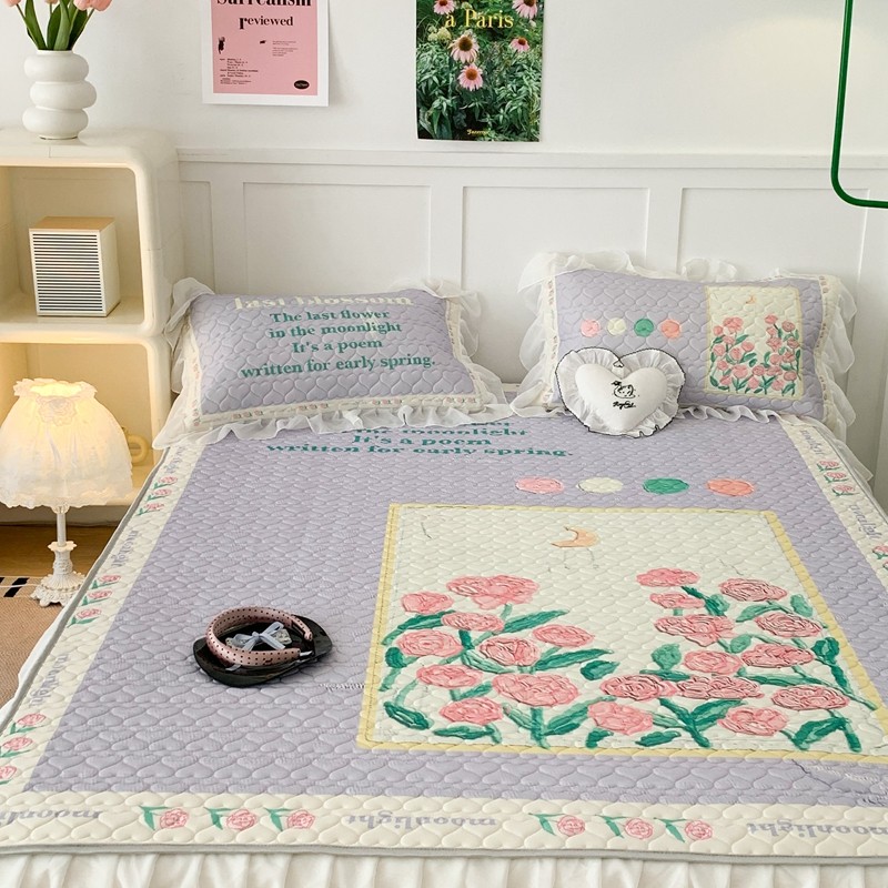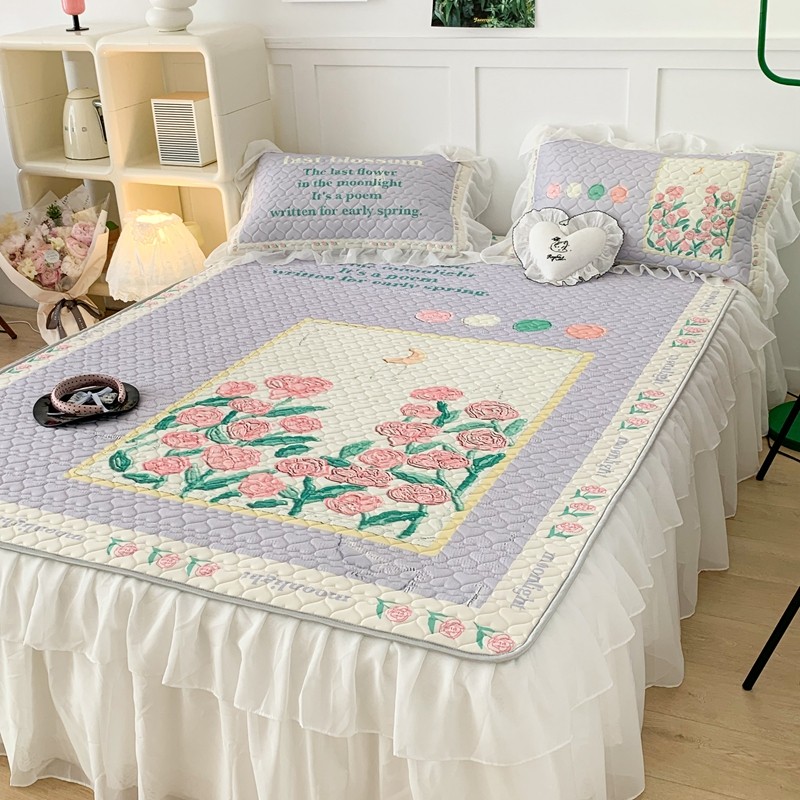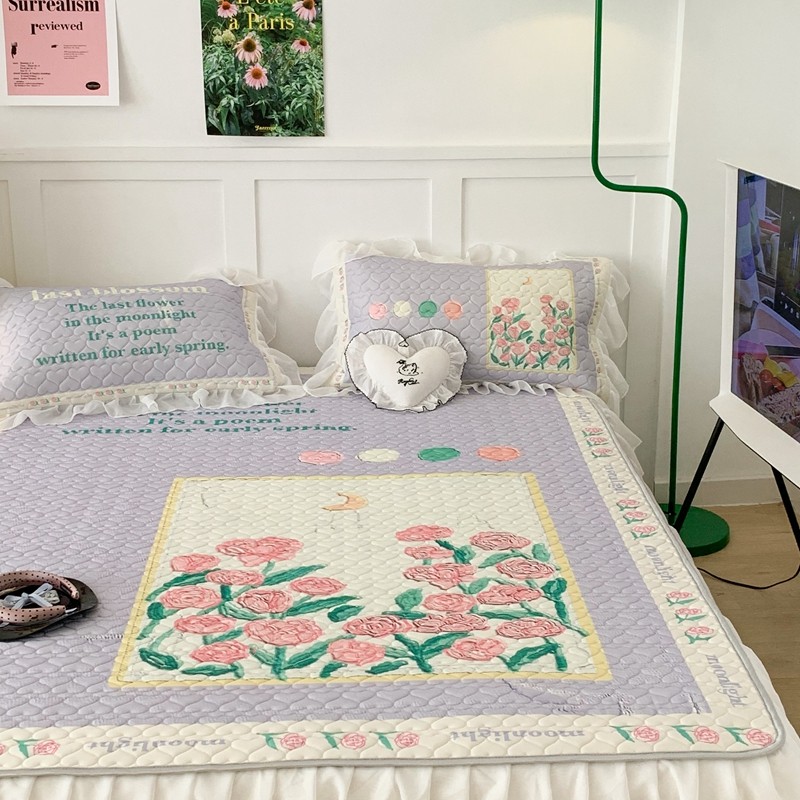昔可 2023新款第二批双层床裙乳胶三件套 可爱小清新风 框框油画玫瑰