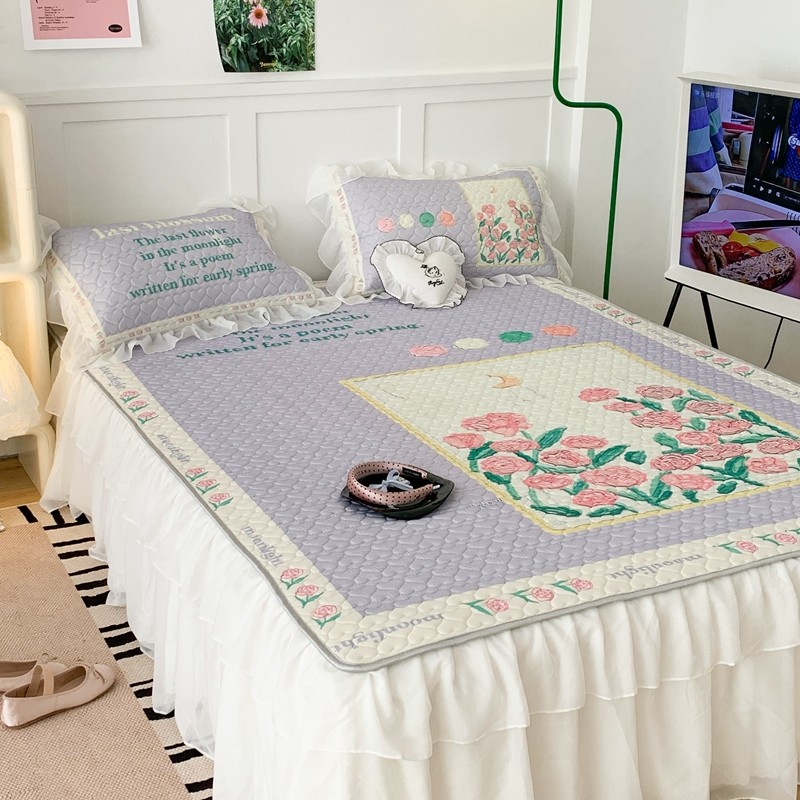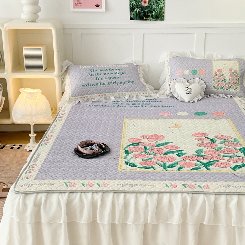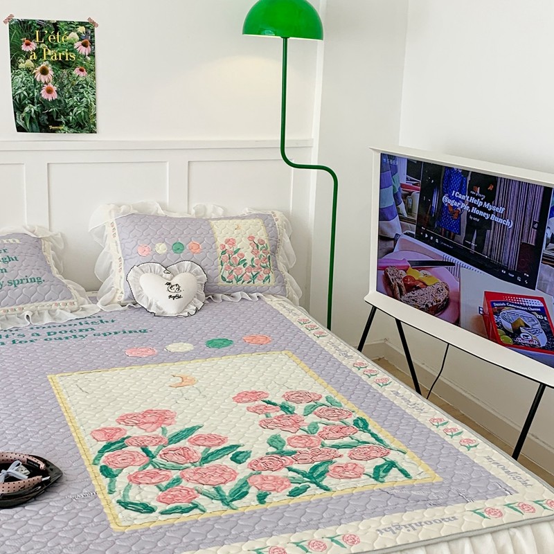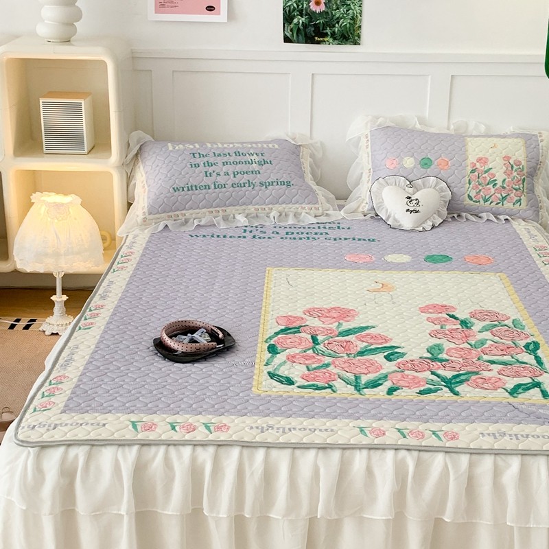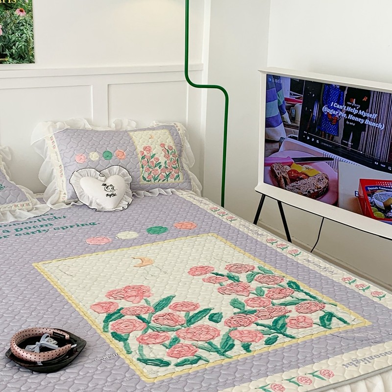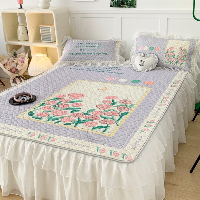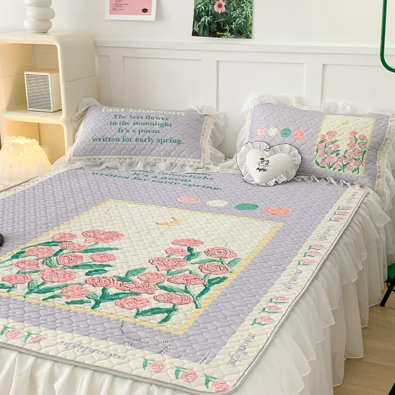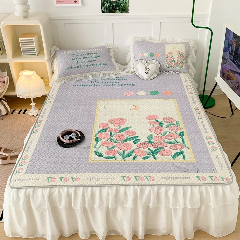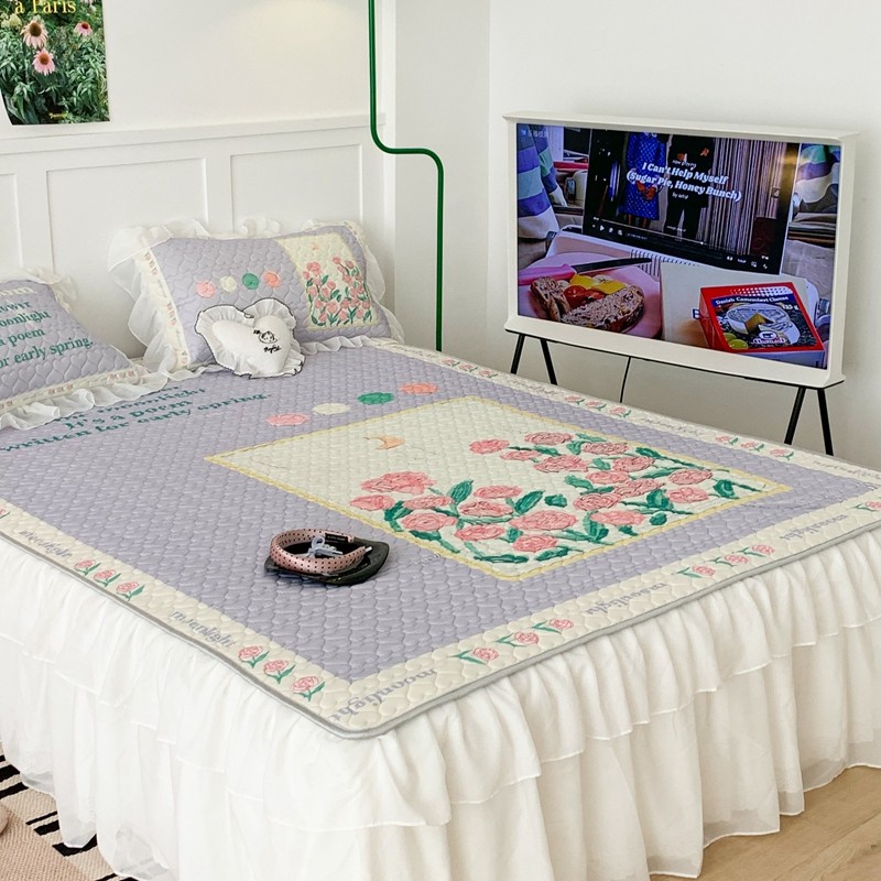 昔可 2023新款第二批双层床裙乳胶三件套 可爱小清新风 框框油画玫瑰