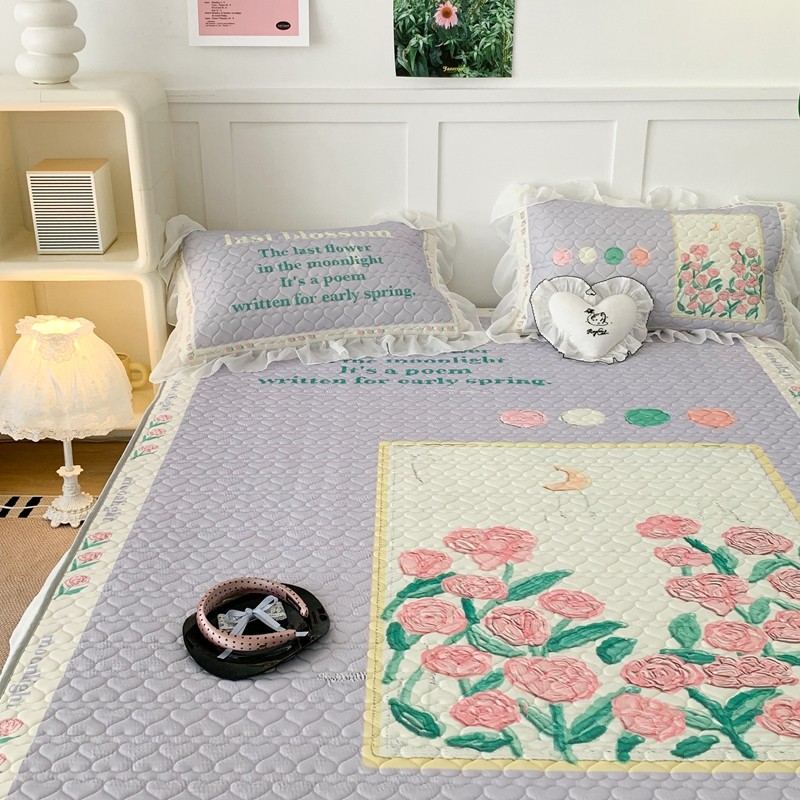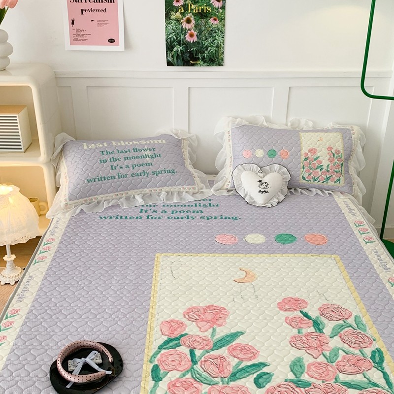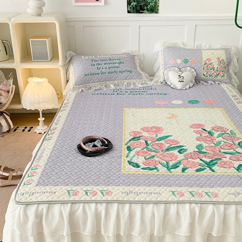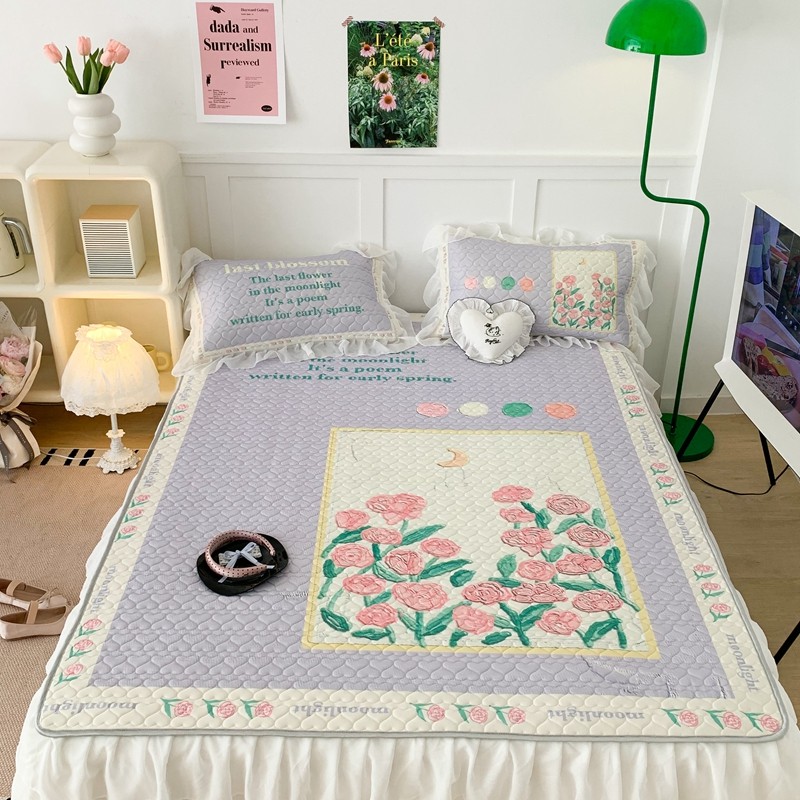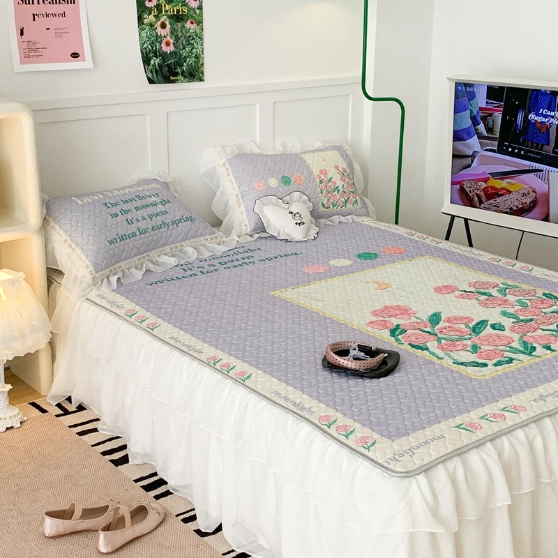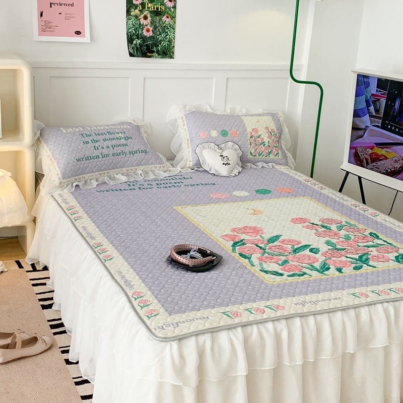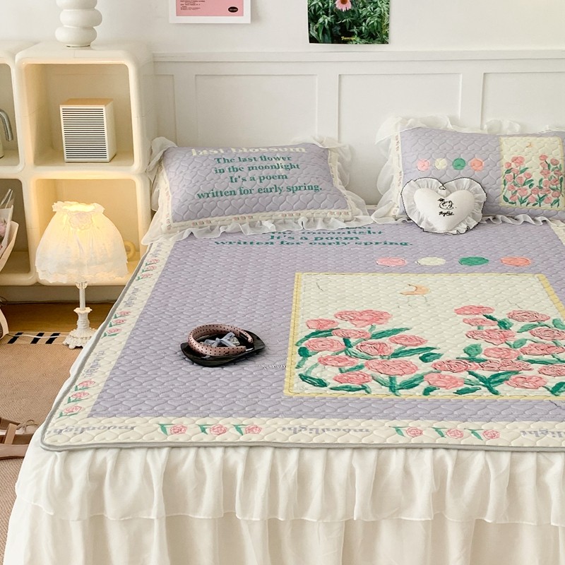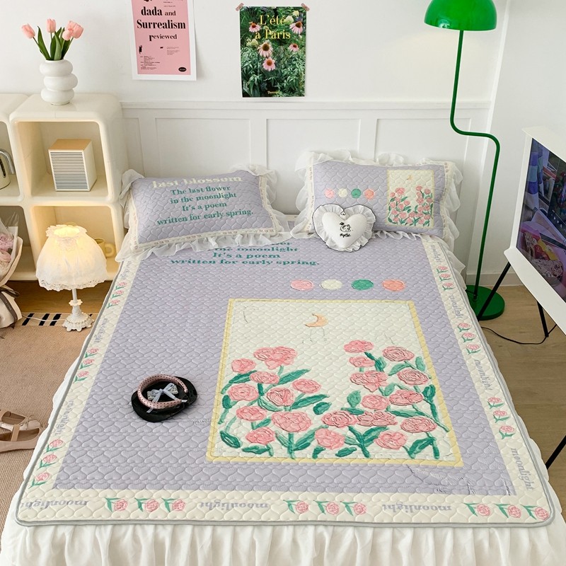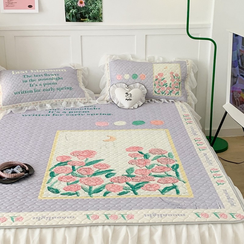 昔可 2023新款第二批双层床裙乳胶三件套 可爱小清新风 框框油画玫瑰