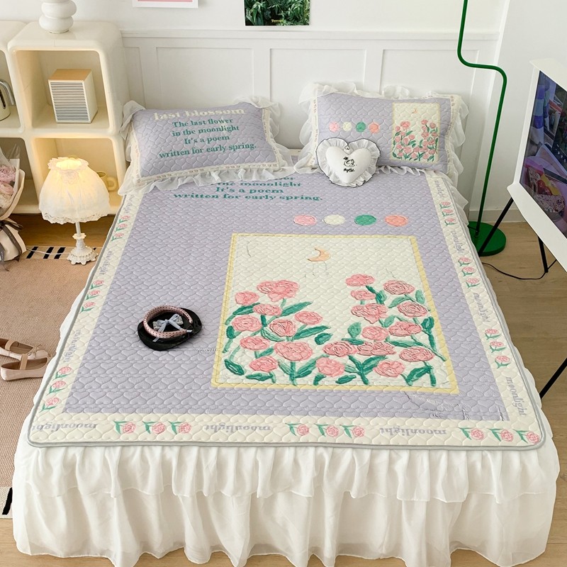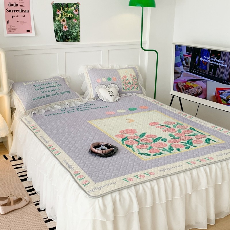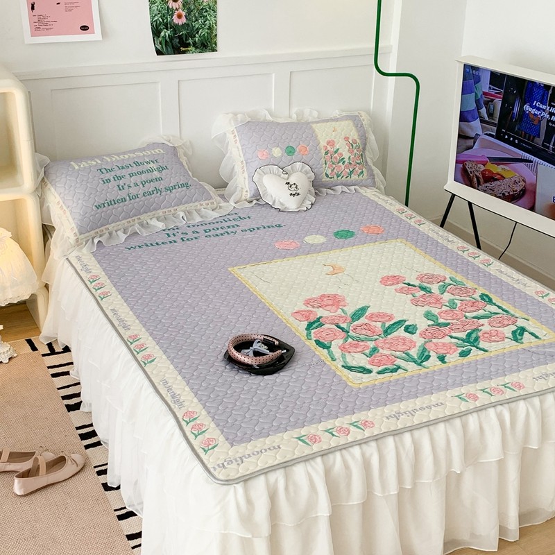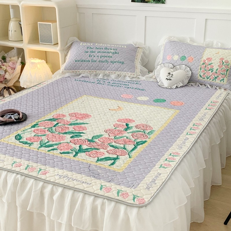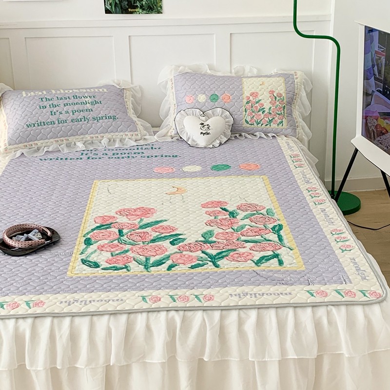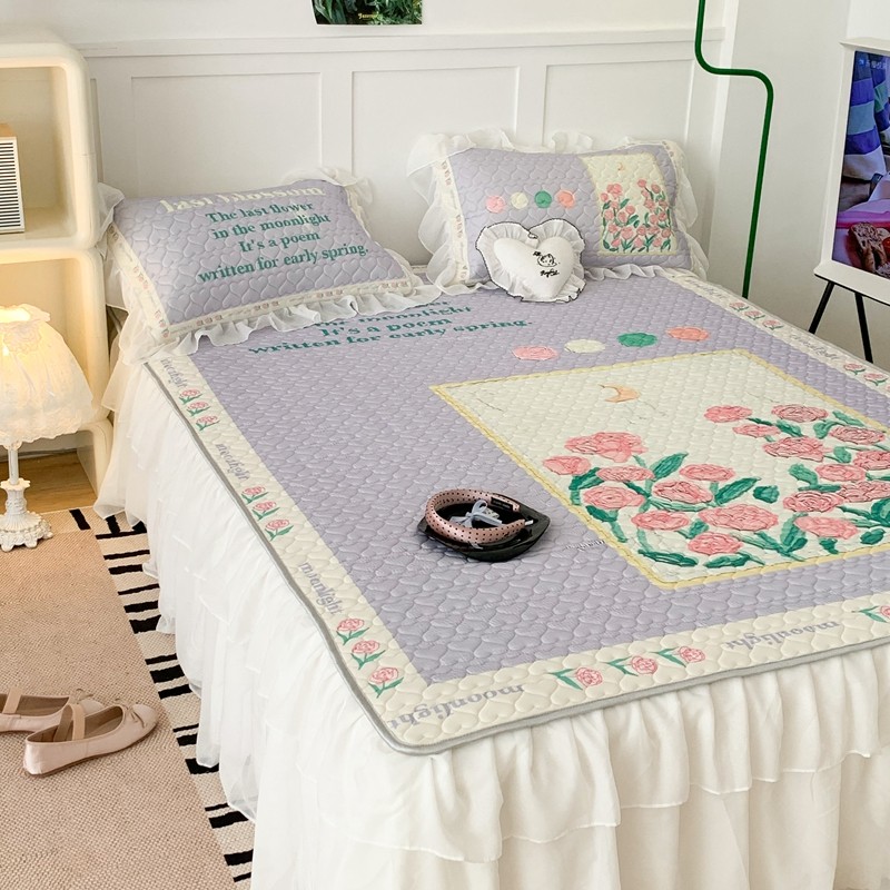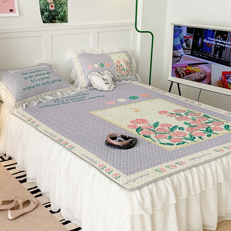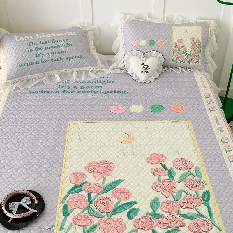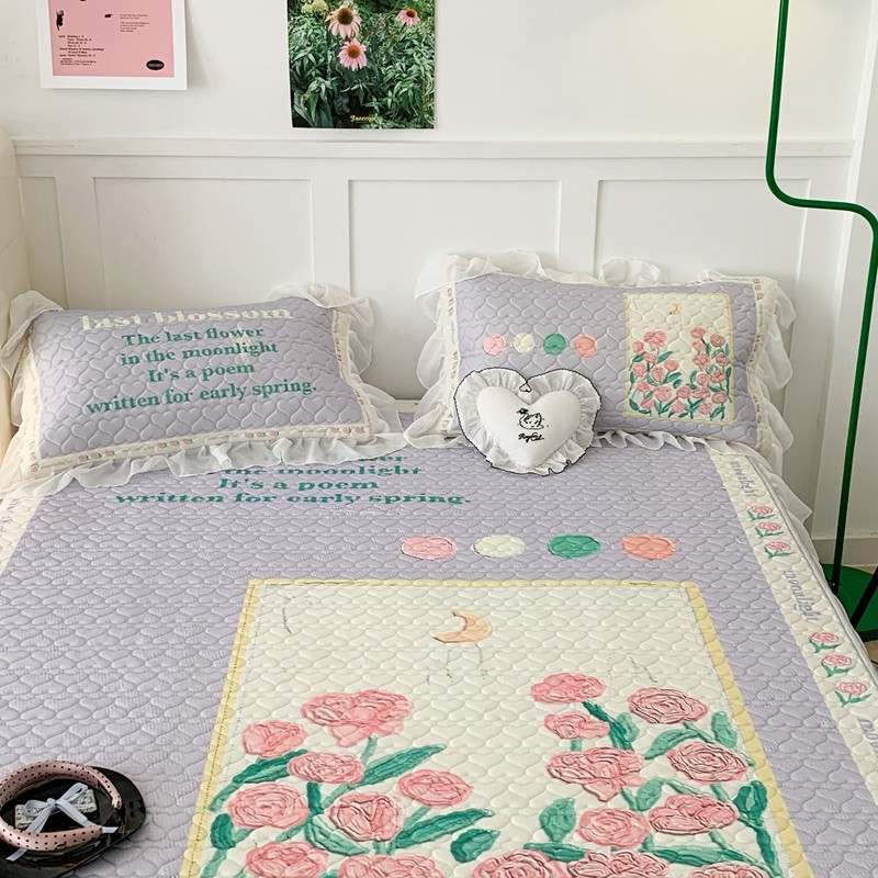 昔可 2023新款第二批双层床裙乳胶三件套 可爱小清新风 框框油画玫瑰