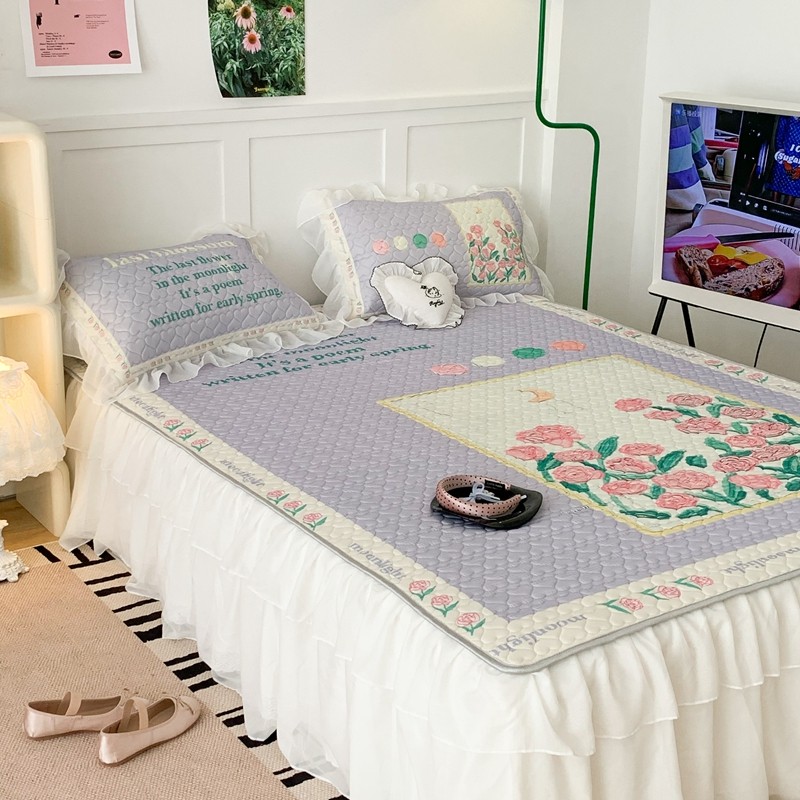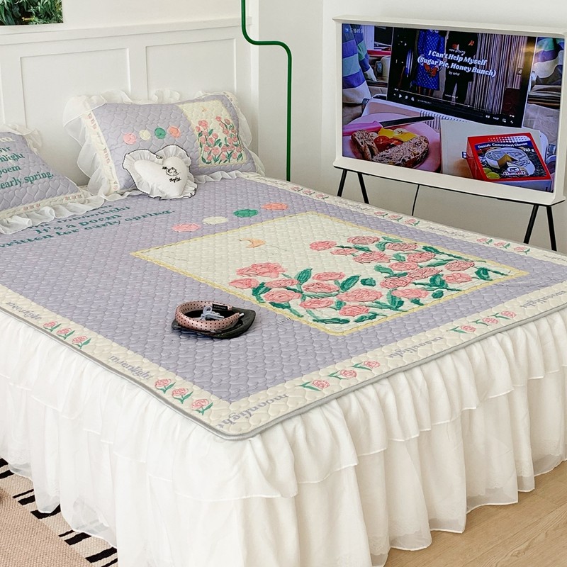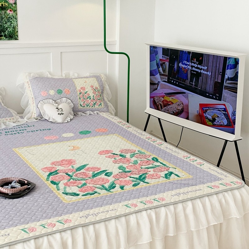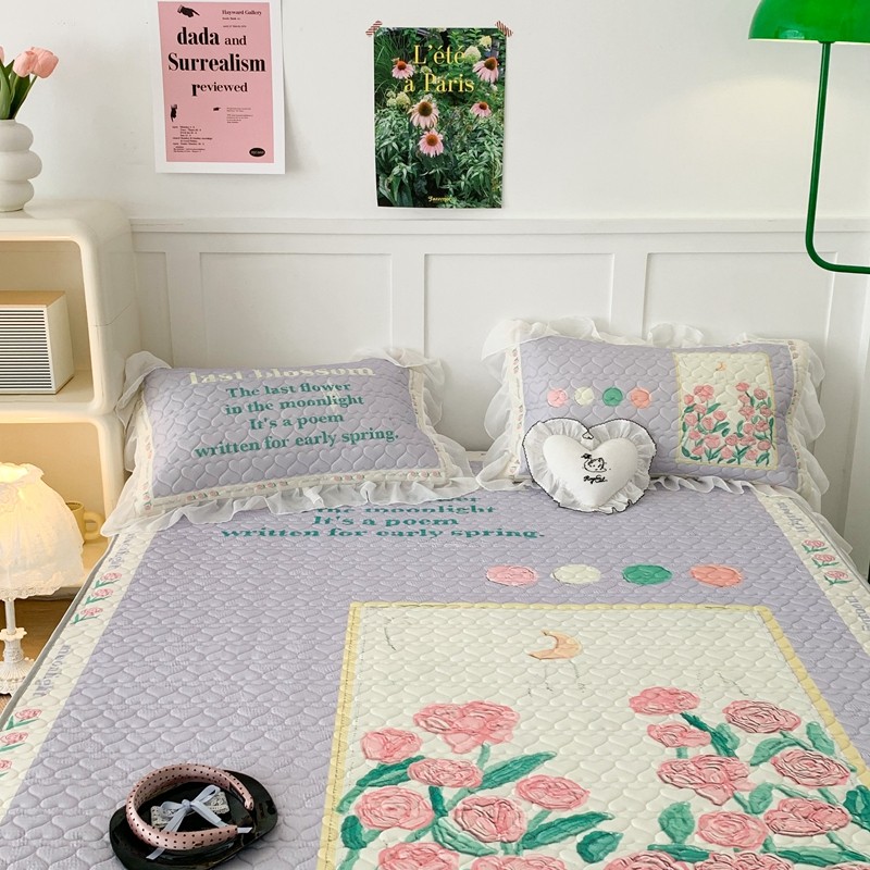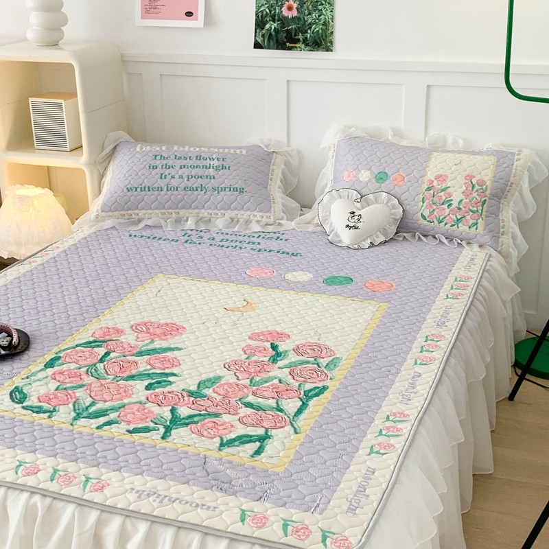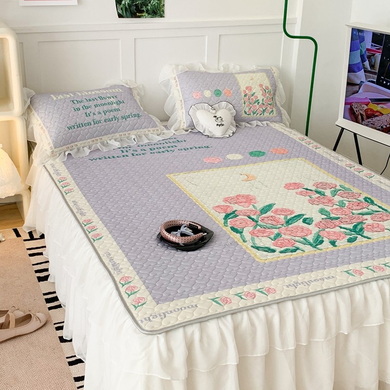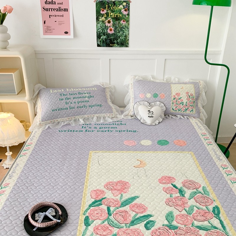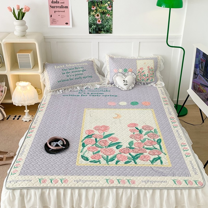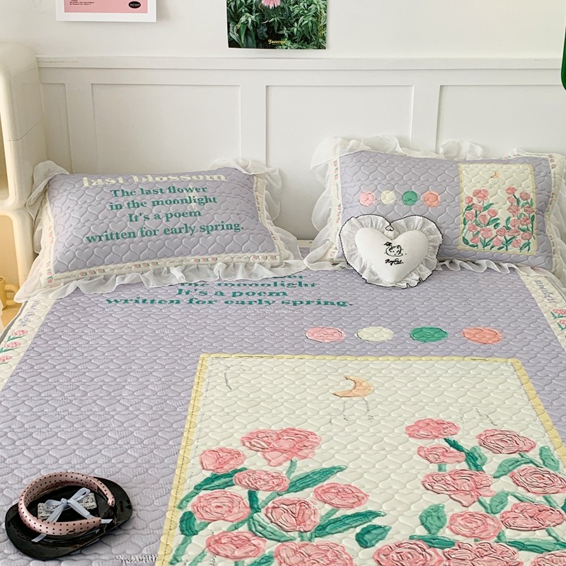 昔可 2023新款第二批双层床裙乳胶三件套 可爱小清新风 框框油画玫瑰