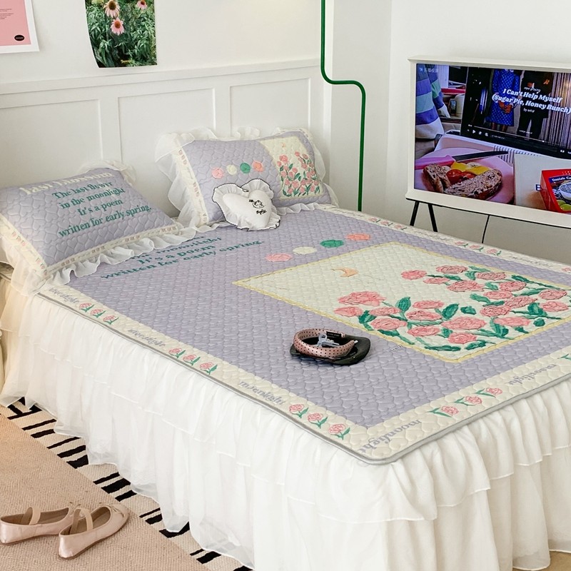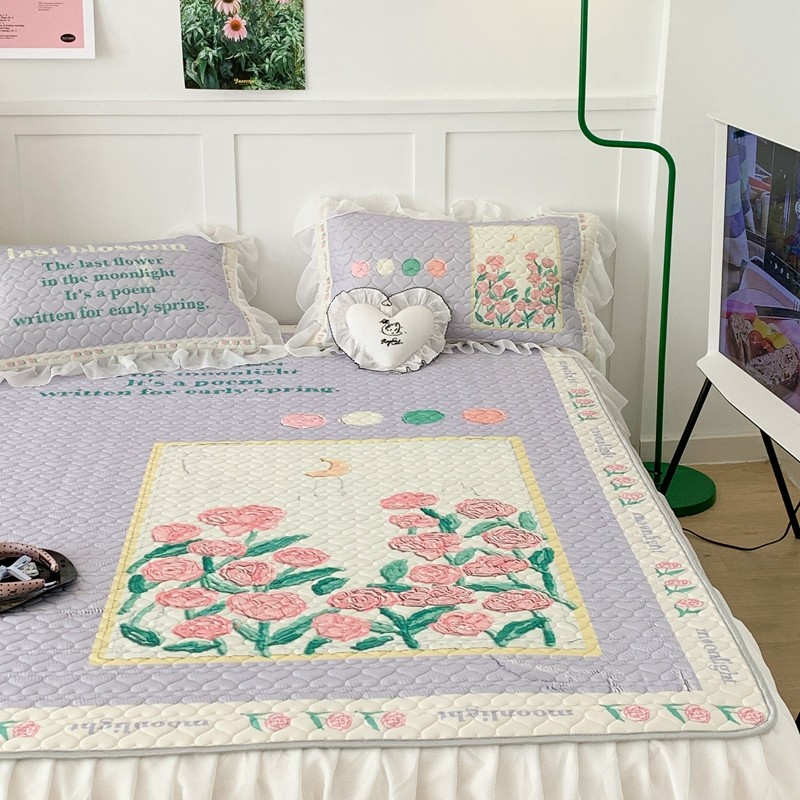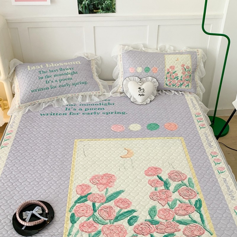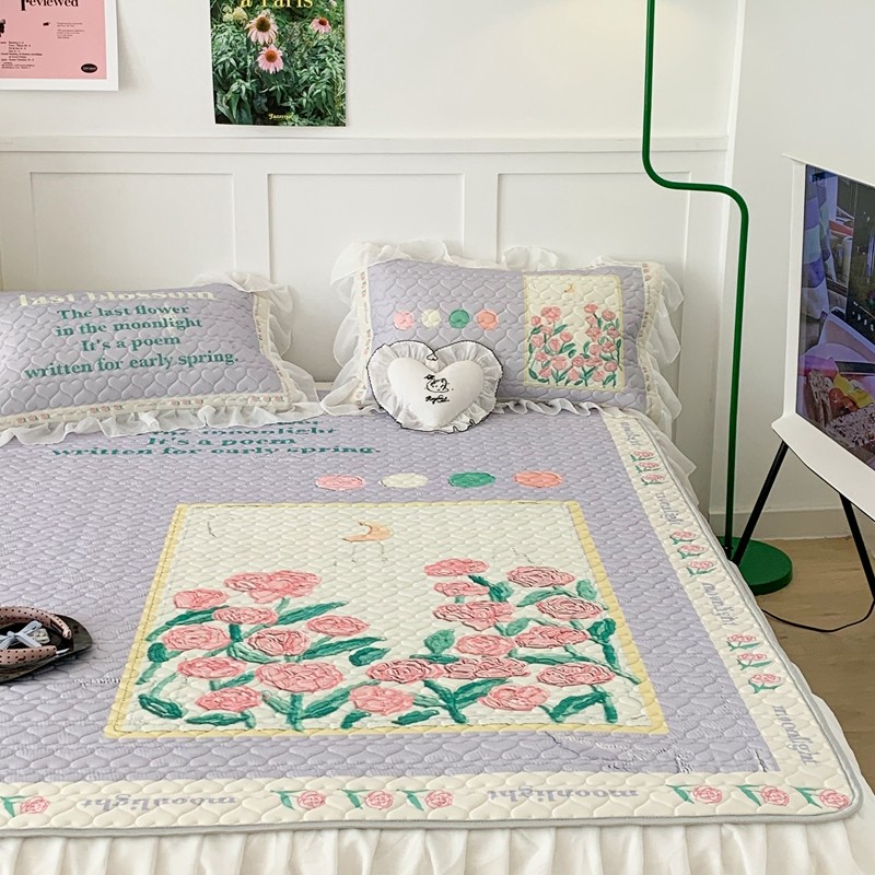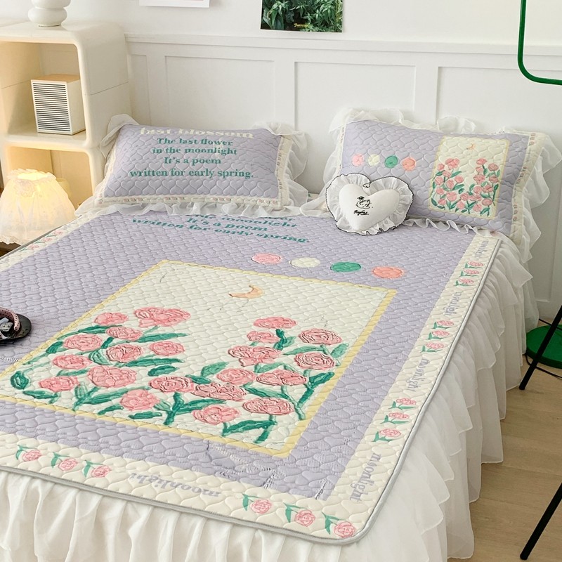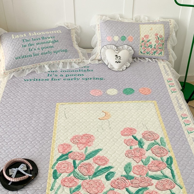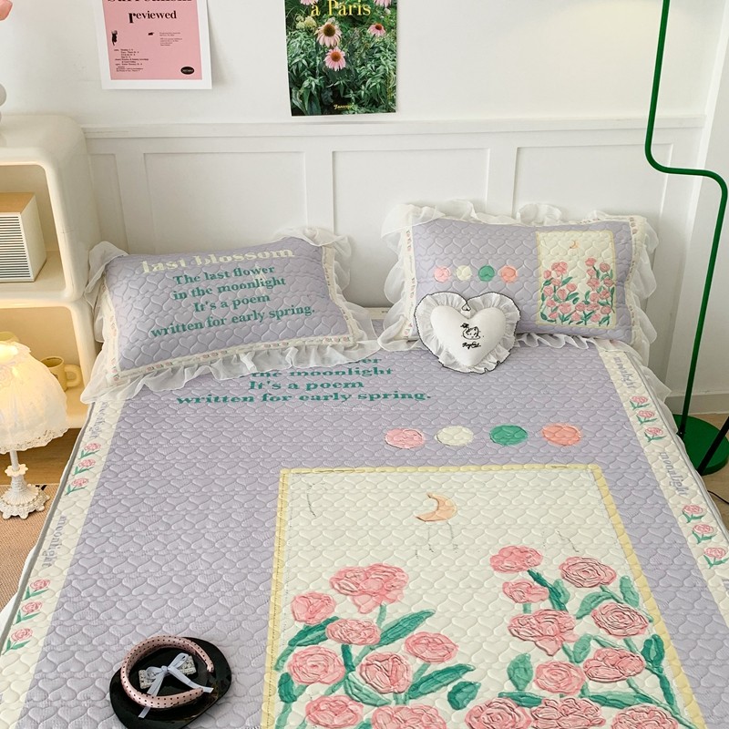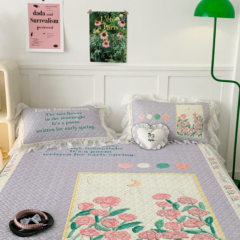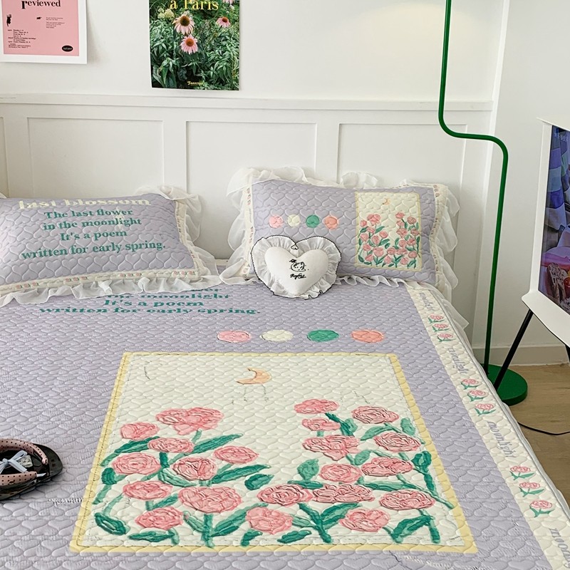 昔可 2023新款第二批双层床裙乳胶三件套 可爱小清新风 框框油画玫瑰