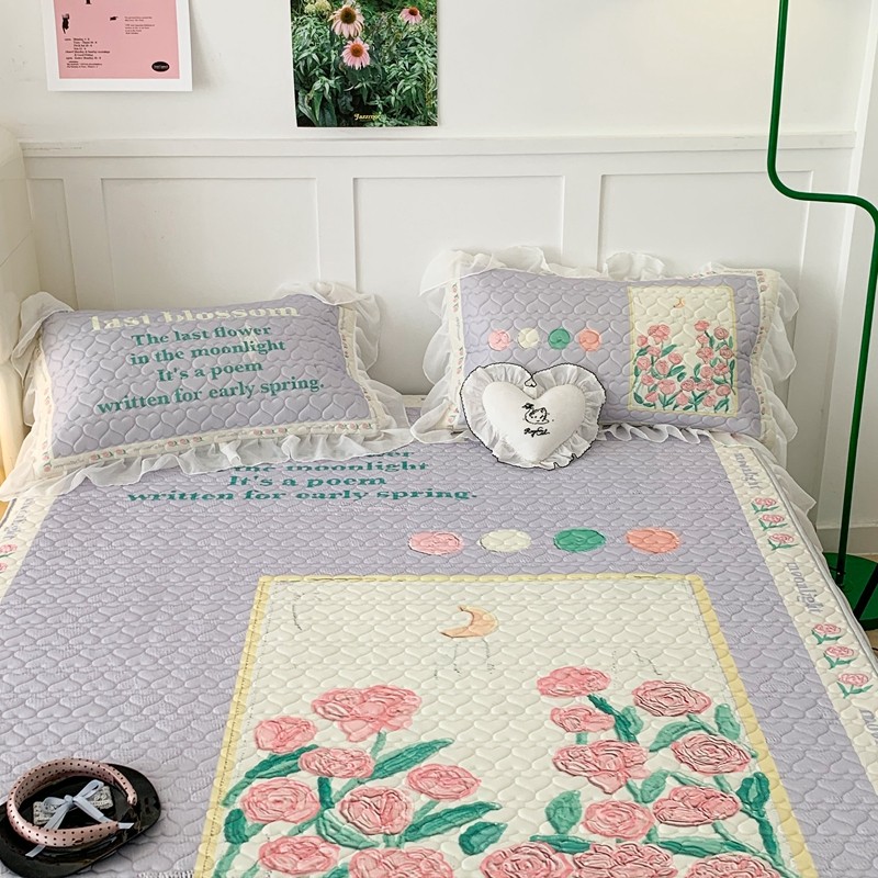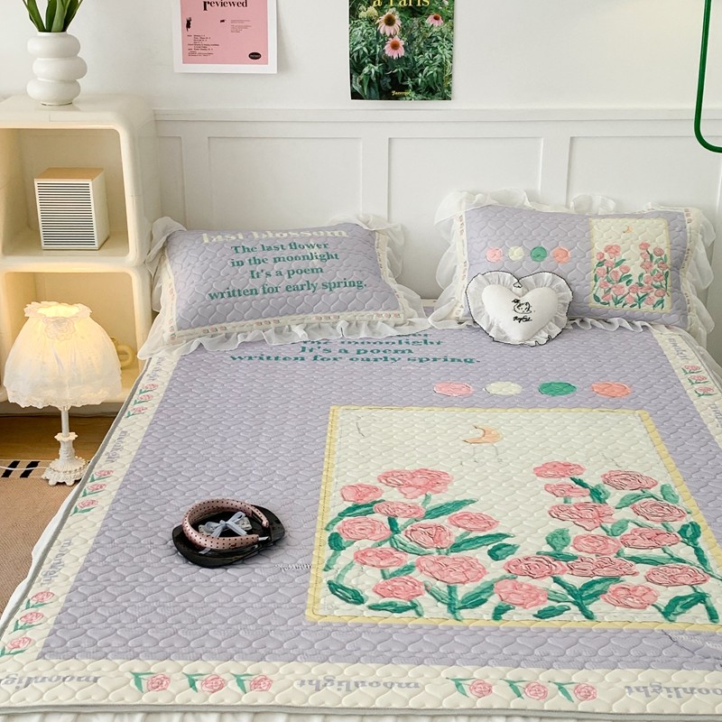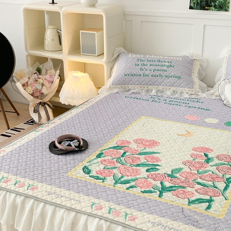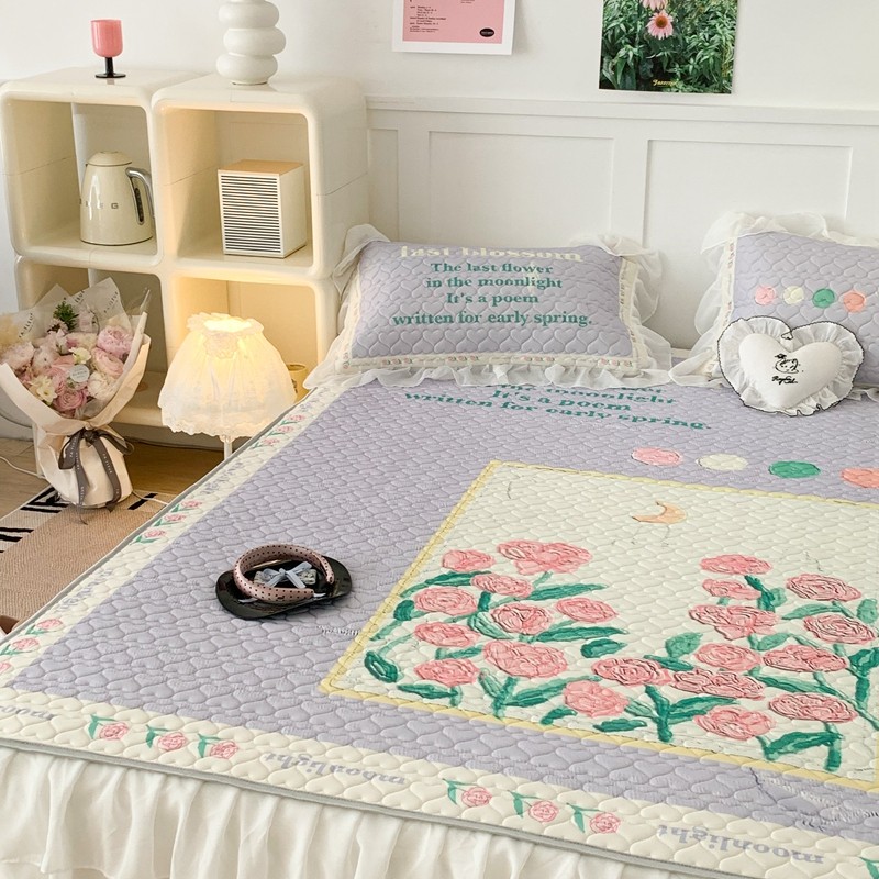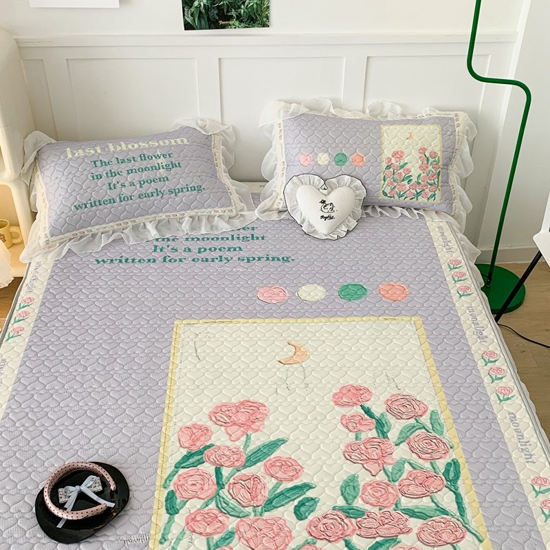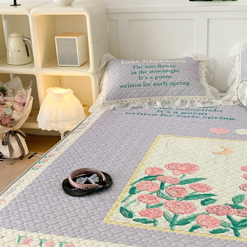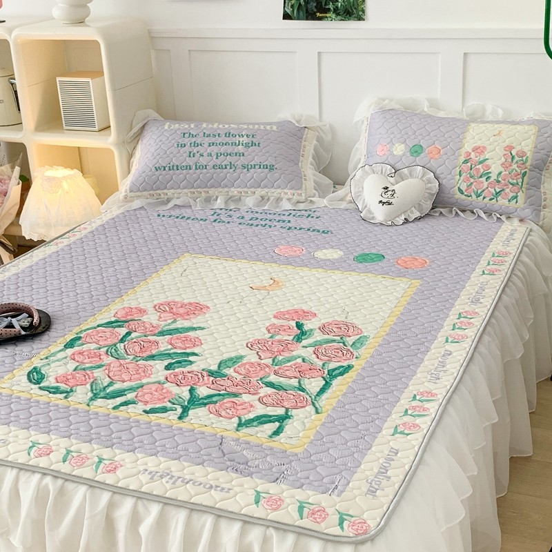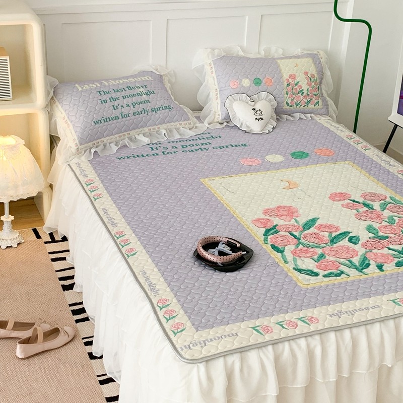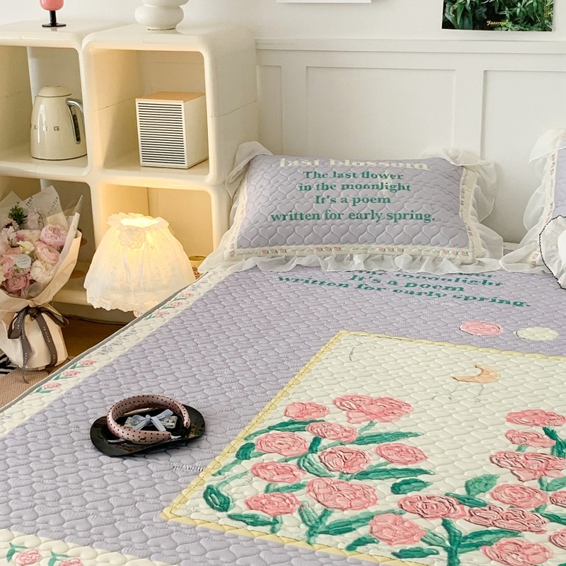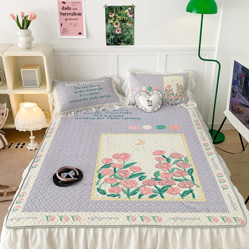 昔可 2023新款第二批双层床裙乳胶三件套 可爱小清新风 框框油画玫瑰