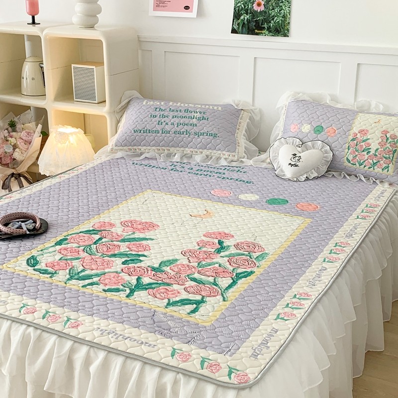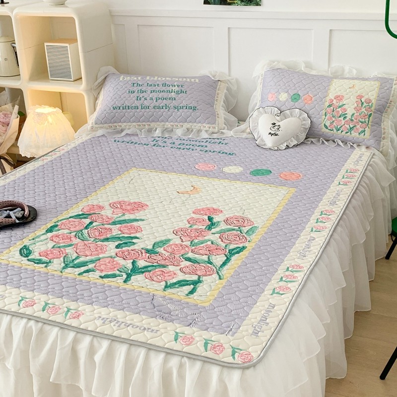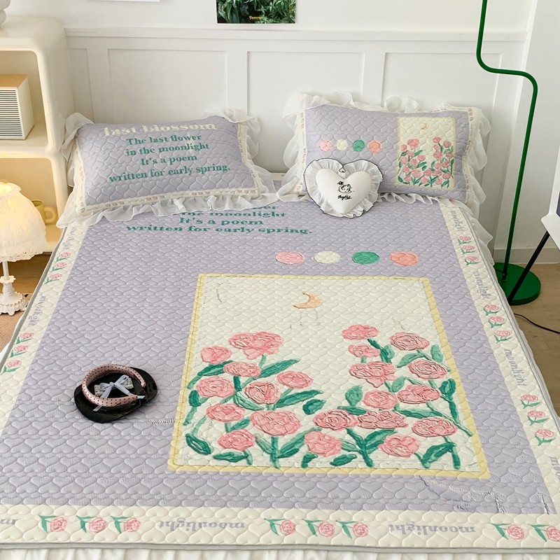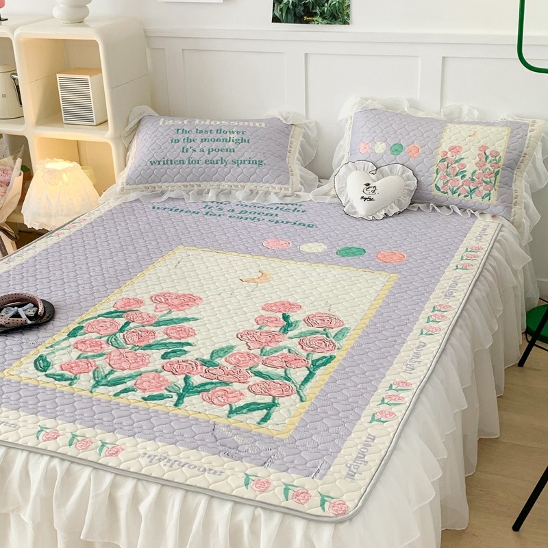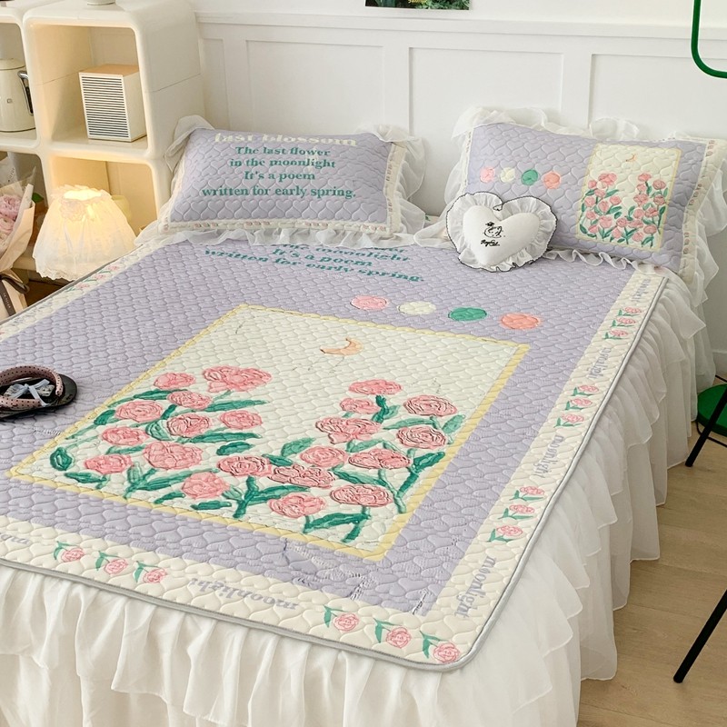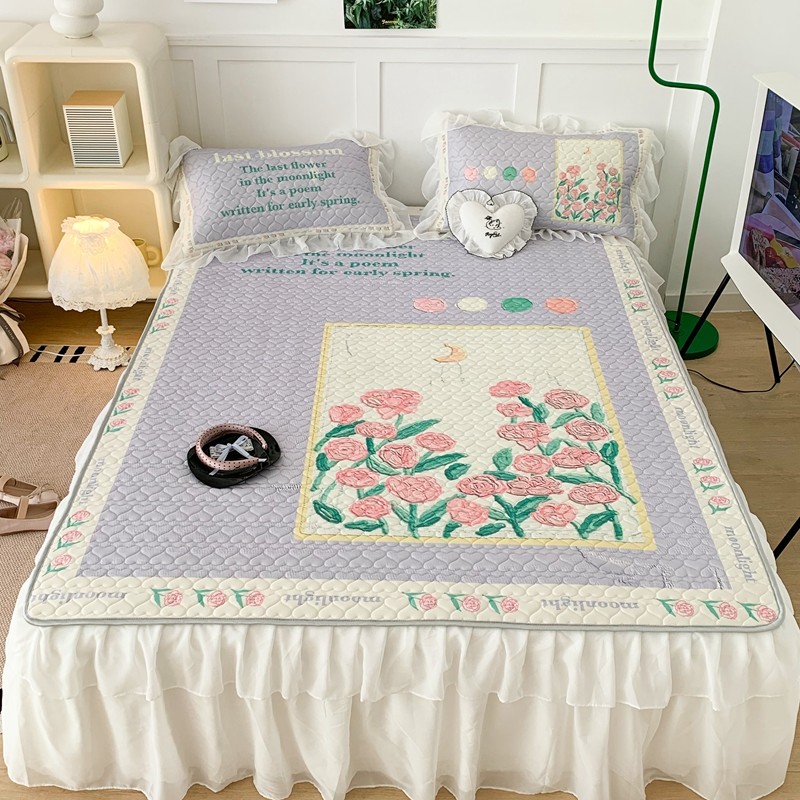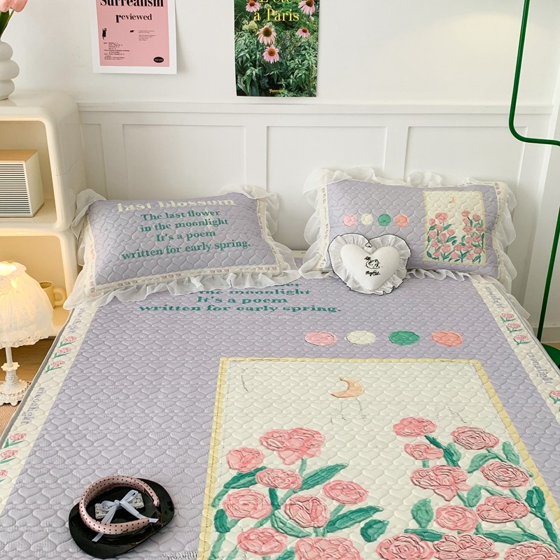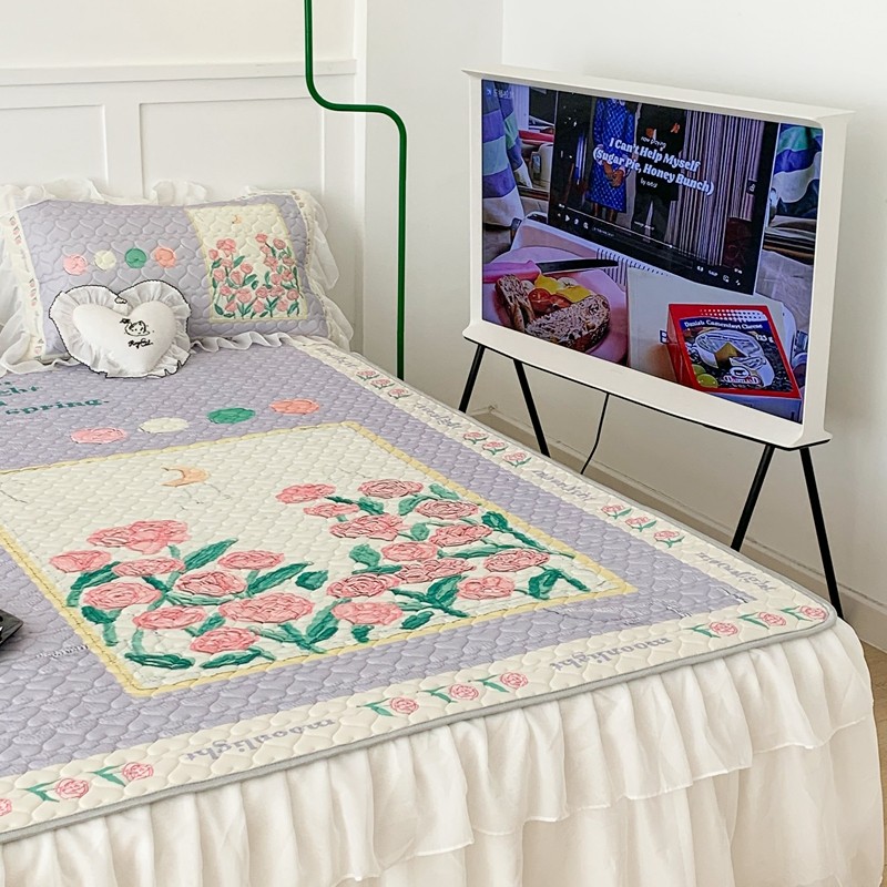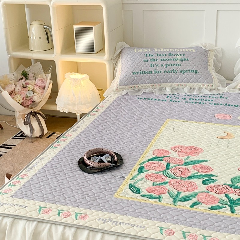 昔可 2023新款第二批双层床裙乳胶三件套 可爱小清新风 框框油画玫瑰