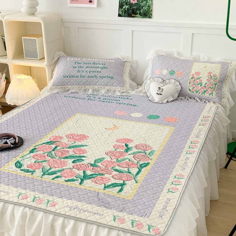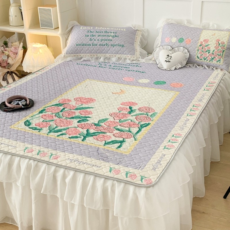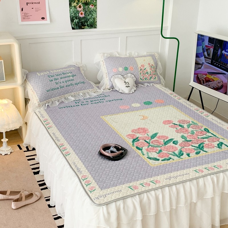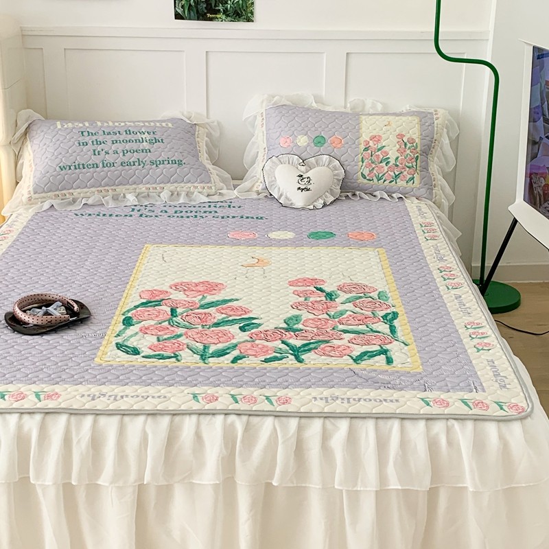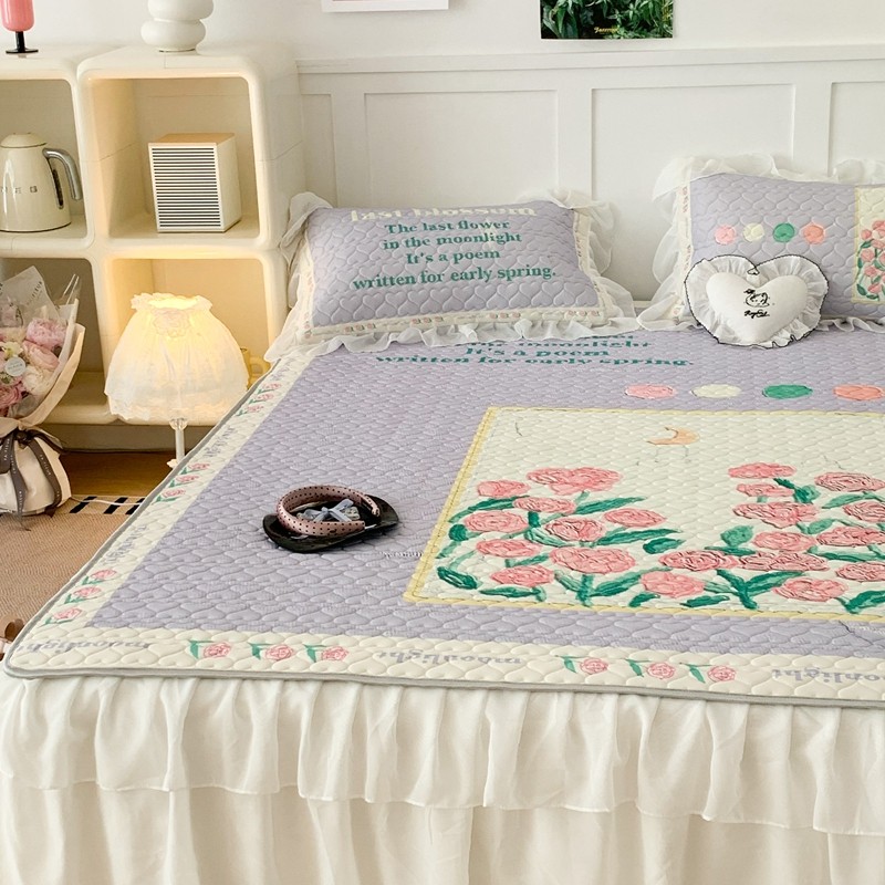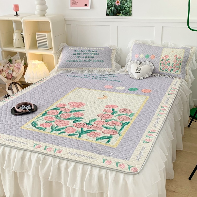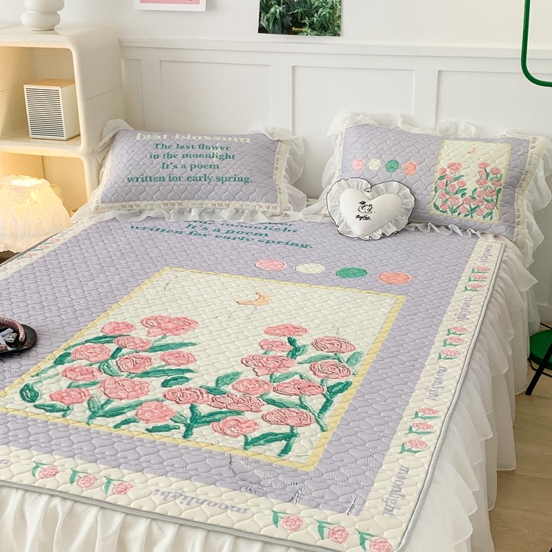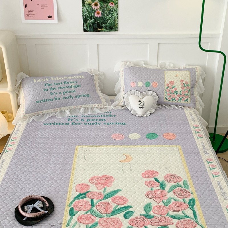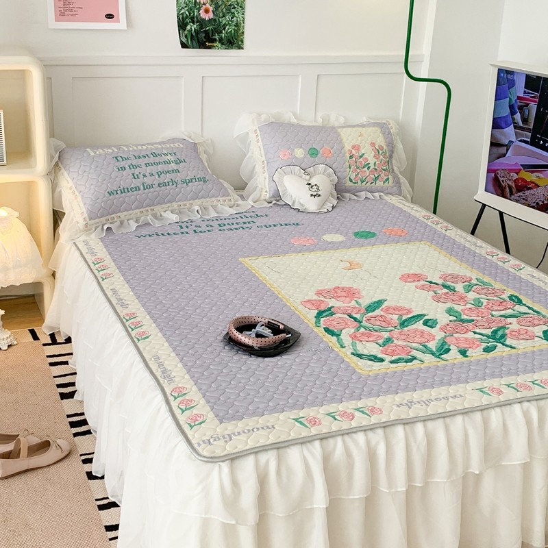 昔可 2023新款第二批双层床裙乳胶三件套 可爱小清新风 框框油画玫瑰