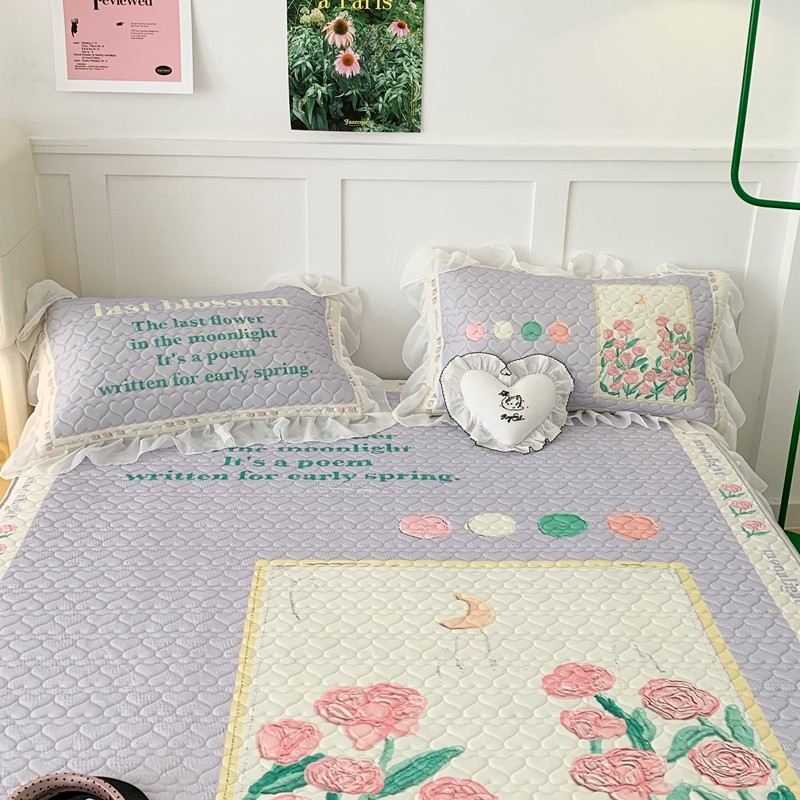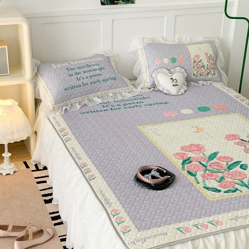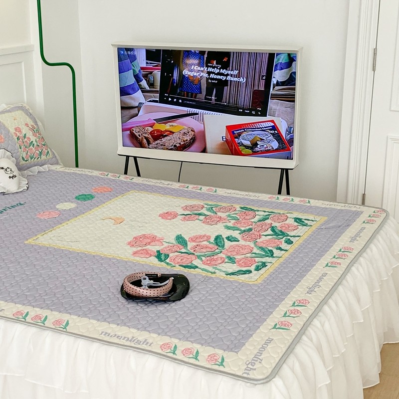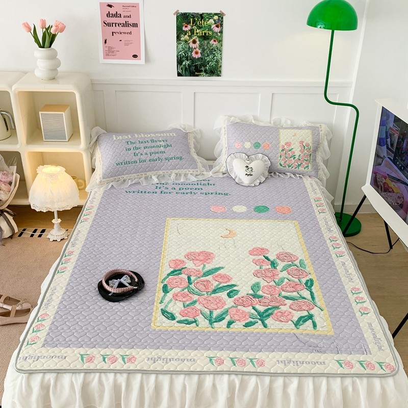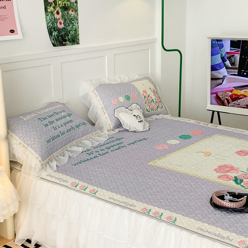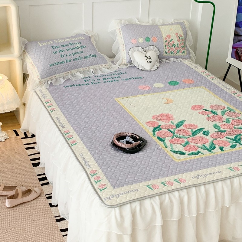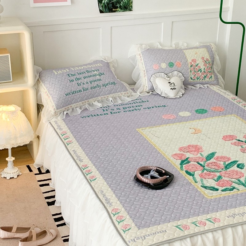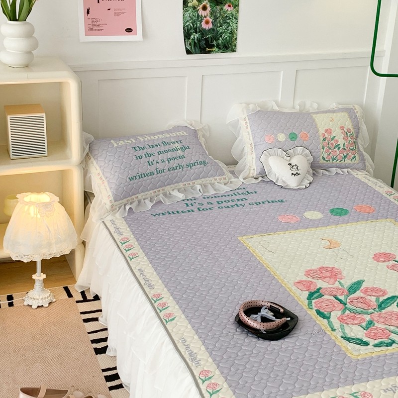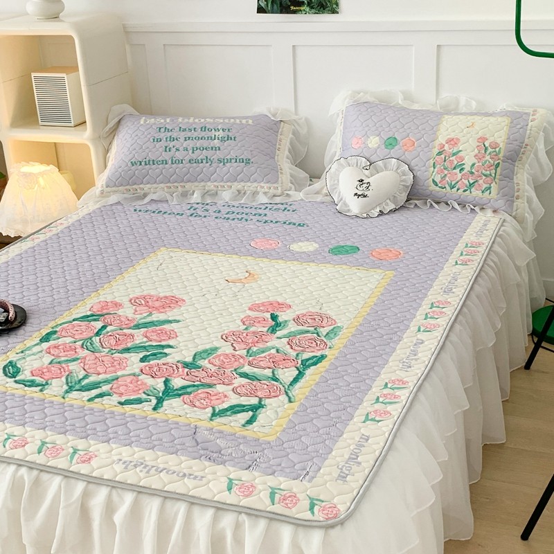 昔可 2023新款第二批双层床裙乳胶三件套 可爱小清新风 框框油画玫瑰