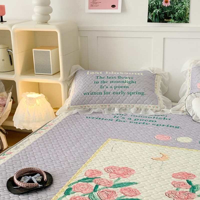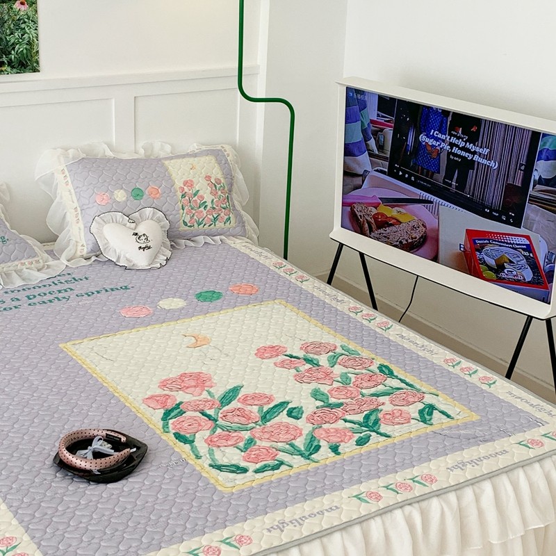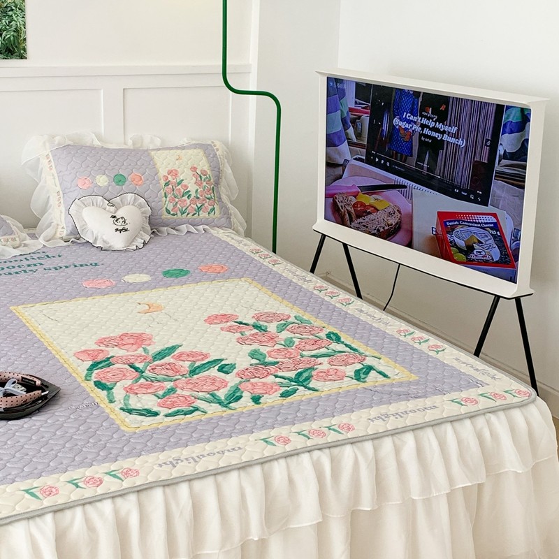 商品名称:昔可 2023新款第二批双层床裙乳胶三件套 可爱小清新风 框框油画玫瑰